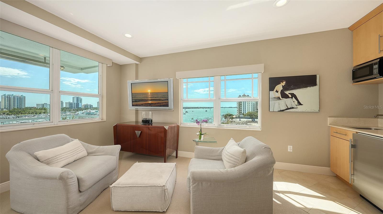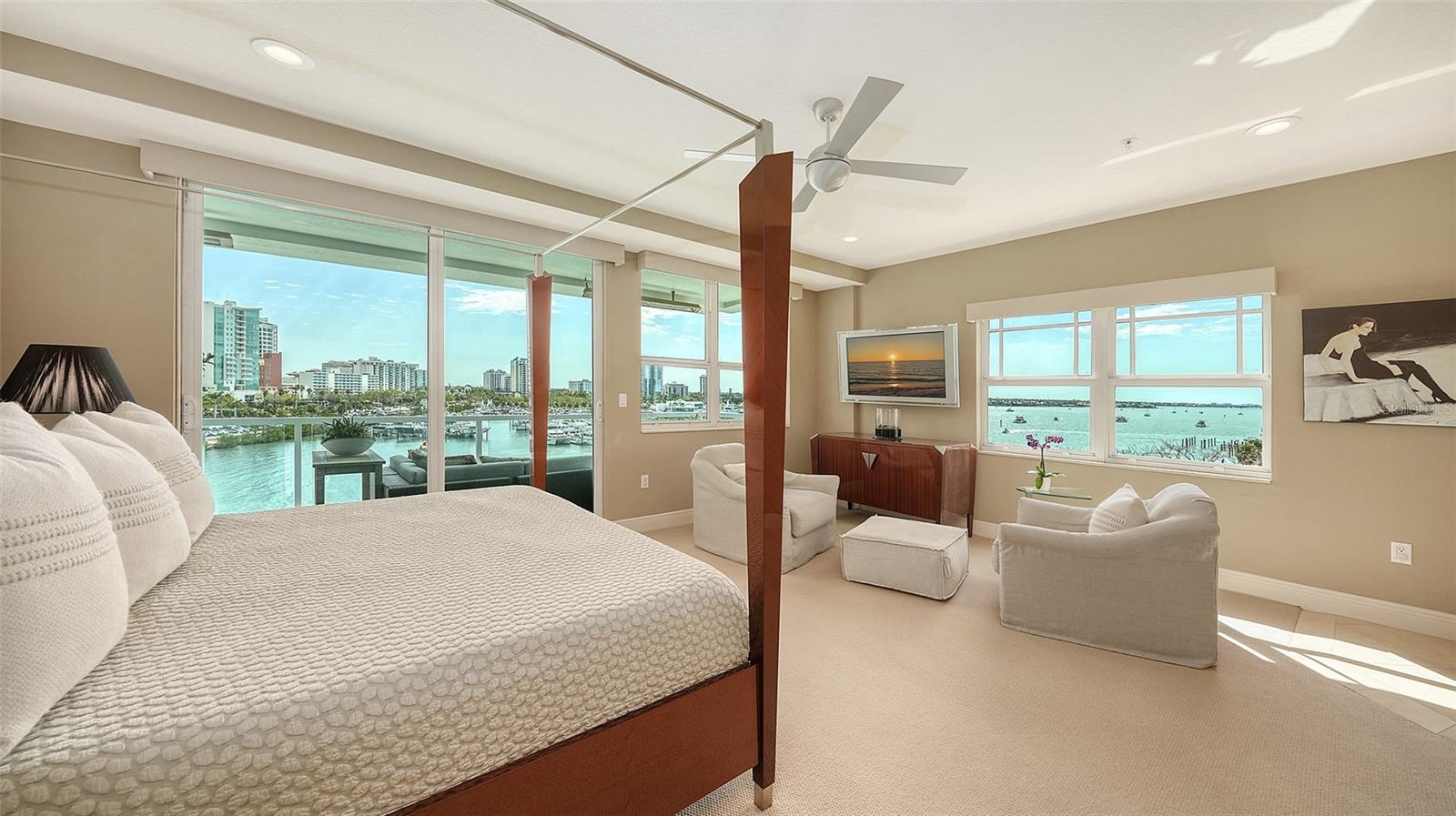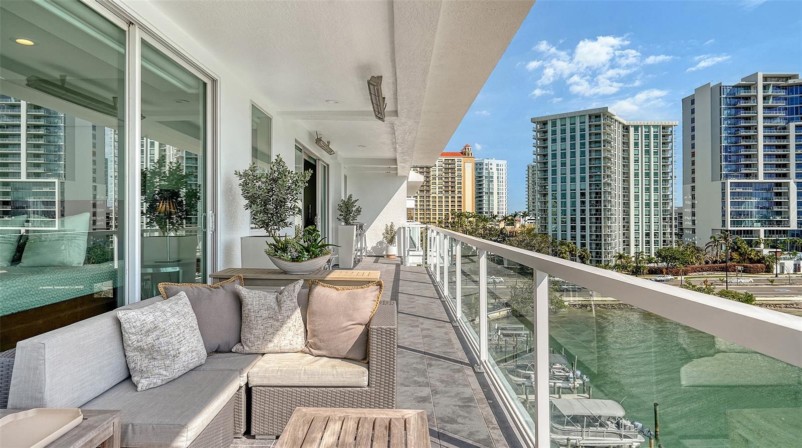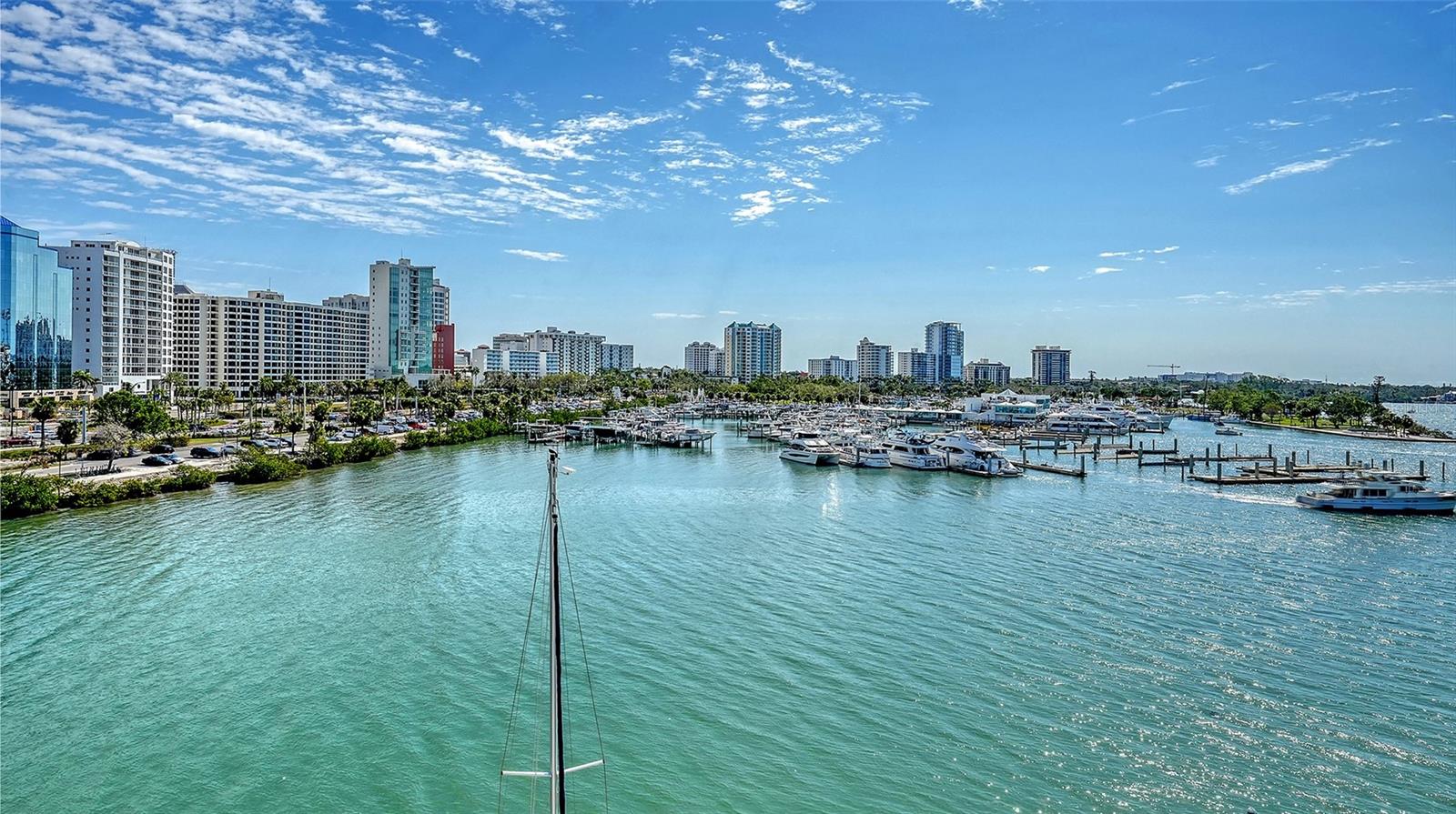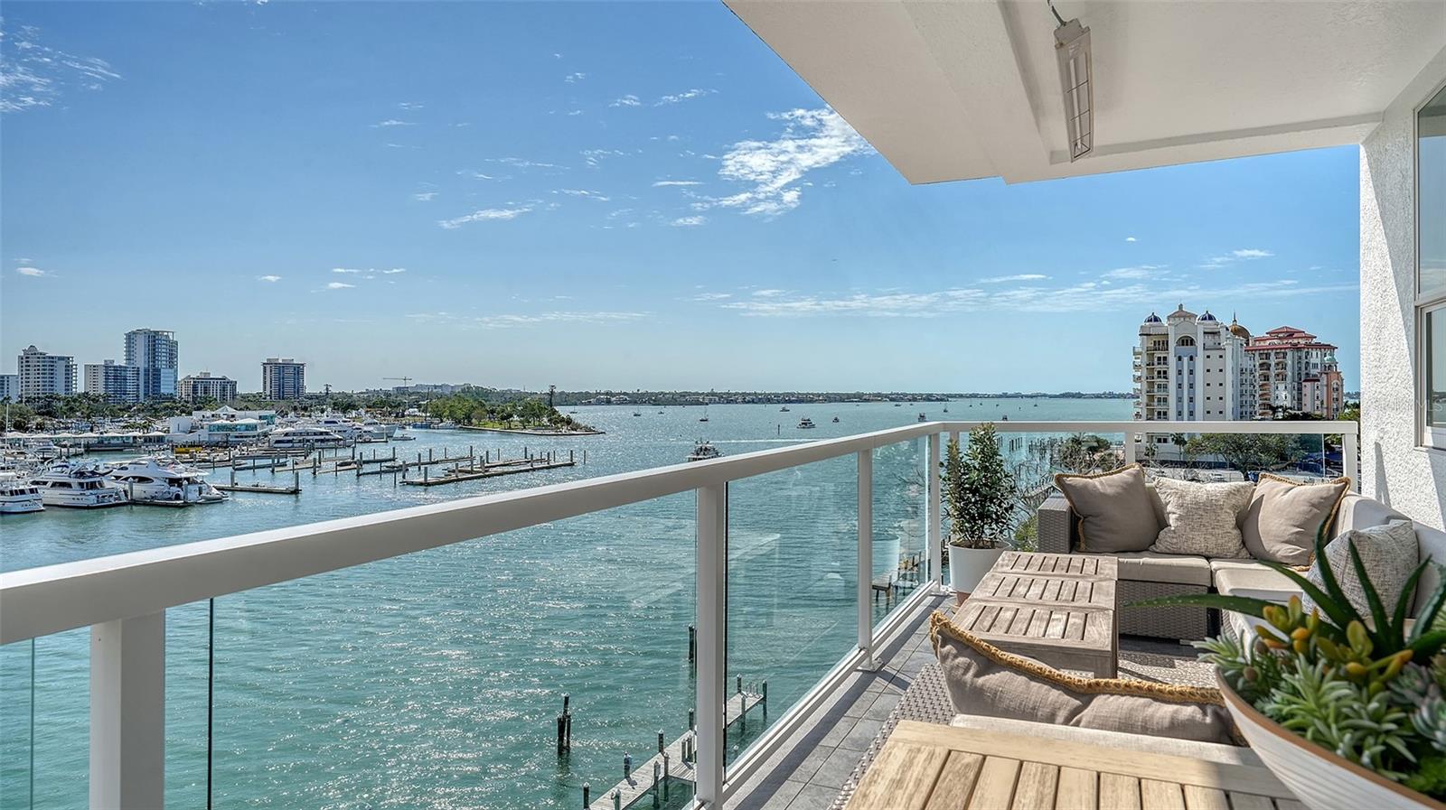 Imagine waking up to breathtaking panoramic views of Sarasota Bay, the vibrant city skyline, and Marina Jack, awarded Marina of the Year nationwide. This stunning 3 bedroom 4 bath, plus den, developer’s PENTHOUSE RESIDENCE, occupying half of the top floor in an exclusive 14-unit boutique building, offers the epitome of luxury waterfront living. Key Features: • UNPARRALLED VIEWS: Enjoy forever views of downtown Sarasota from the expansive 52-foot HEATED BALCONY, perfect for relaxation and entertaining. • PRIVATE AND DEEDED BOAT DOCK WITH SLIP: A rare deeded 40-foot boat slip provides direct access to Sarasota Bay and the Gulf of Mexico. • LUXURIOUS INTERIORS: Meticulously designed with top-of-the-line appliances in the kitchen, wet bar and breakfast bar including Sub Zero & Wolf brands, imported finishes like stone countertops & solid wood contemporary cabinetry, motorized window treatments, and high-end Italian furnishings* and artwork*. Travertine flooring in main living spaces and with 100% wool designer carpet in the bedrooms. • SPACIOUS LAYOUT: Three spacious bedrooms with ensuites, a chef’s kitchen, and an open-concept living area ideal for privacy and entertaining. • PRIME LOCATION: Situated in Golden Gate Point, a 22-acre private peninsula, just four blocks from downtown Sarasota and a short bike ride to Lido Beach and St. Armands Circle. • RECENT UPDATES: The building was redeveloped in 2007 and enhanced with $1.5M in updates in 2017; and finally, a new seawall, docks, renovated pool/patio in 2022, and a new roof in 2024. • CONVENIENCE and PEACE OF MIND: Gated entry, private elevator lobby, and two covered parking spaces ensure convenience and privacy. • Security cameras in parking, dockside and lobby Experience the Best of Sarasota: • Downtown Access: Enjoy the finest restaurants, shopping, theaters, and arts, all within walking distance. • Recreational Opportunities: Bike, walk, or run over the Ringling Causeway Bridge to Lido Beach and St. Armands Circle. • Move in immediately to this stunning penthouse, bring your boat, and enjoy your private boat slip, adjacent to one of the top marinas in the USA with direct access to the Gulf of America! Schedule your private showing today and discover why this penthouse is the ultimate luxury waterfront retreat!