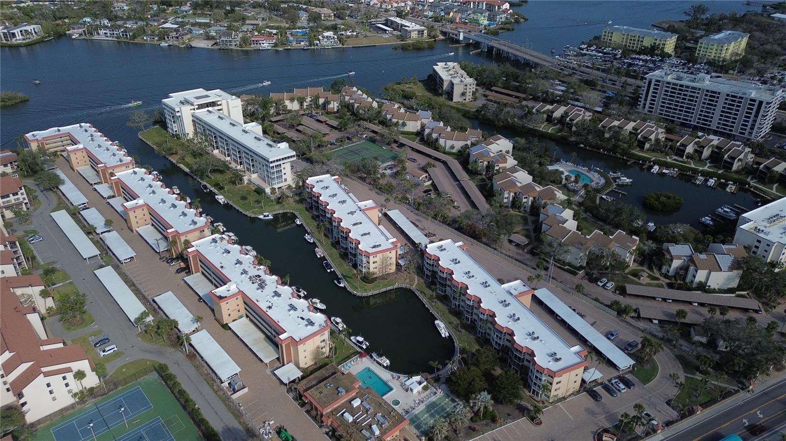 This appealing corner residence located on the second level in the Albacore Building inside SIESTA HARBOR offers the convenience of a walk-up or elevator access. This home boasts a large covered balcony showcasing stunning canal views and beautiful landscaping. Community docks are available on a first come first serve basis; accommodating boats up to 30 ft. Deep water canal with direct access to the Intracoastal. Boating is not complicated when you can dock behind your residence! Natural light pours into the combined dining and living area from the numerous extra windows being a corner unit. The active clubhouse and vibrant over 55 community add to the appeal of Siesta Harbor. Residents enjoy a heated pool, outdoor spa, indoor sauna, fitness room, shuffleboard court, renovated clubhouse featuring a full kitchen, and outdoor barbeque area. Residents also have a dock/fishing pier on site. Residents also enjoy private beach access directly across the street! This home features tile and luxury plank flooring throughout and comes turn-key, fully furnished. Just bring your bathing suit and start enjoying the island lifestyle. Additionally, you have the option to rent it out on a monthly basis when not in use. HOA fees cover the building exterior, cable, escrow reserves fund, fidelity bond, flood insurance, ground maintenance, recreational facilities, trash removal and water/sewer.