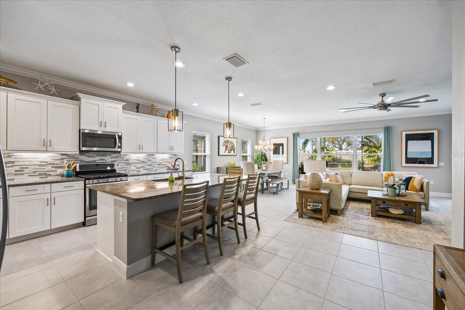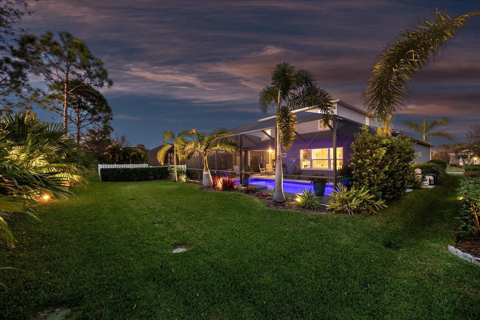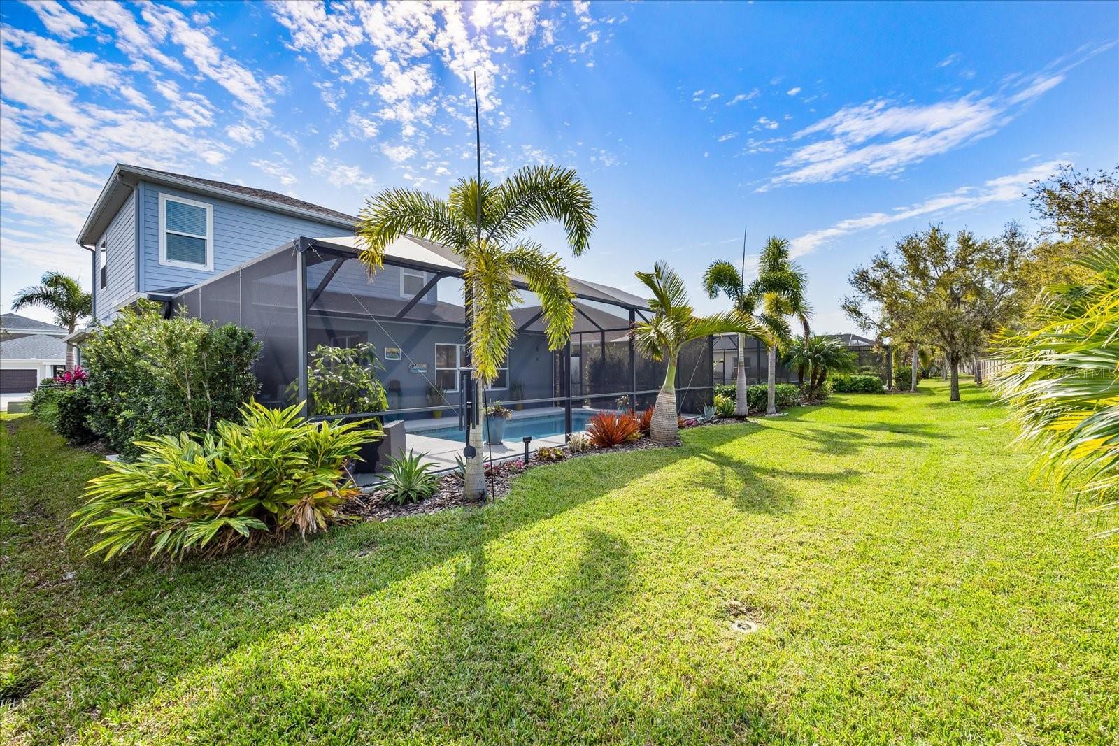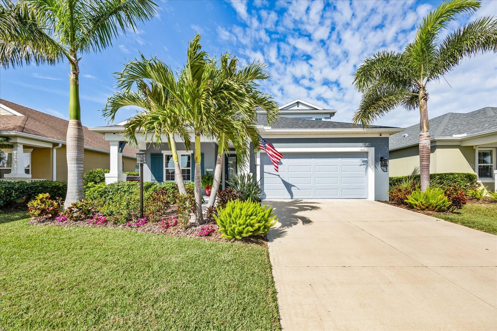This stunning 2017 Tribute Model by Neal Communities offers an opportunity to own a home that is beautifully designed and immaculately kept. The open floor plan welcomes you as soon as you walk through the door, offering a versatile layout perfect for entertaining or simply relaxing by the electric fireplace with family and loved ones. The well-appointed kitchen is a chef’s dream, featuring a spacious island, ample countertop space, abundant cabinetry, and a built-in butler’s pantry/bar. The primary suite is located on the ground floor. Efficiency is a key highlight of this home, equipped with a tankless water heater, natural gas, central vacuum, UV light HVAC system, gas pool heater (2021), pool pump (2023), and a freshly painted pool deck (2025), insulated concrete block, hurricane shutters, not in a flood zone, high and dry during the hurricane(s) in 2024, extra deep garage (large enough for a full size pick up. truck), landscape lighting. The high ceilings and elegant crown molding add to the upscale feel, complemented by neutral tones and abundant natural light that create a warm and inviting atmosphere. Step outside to a private pool area, where the perfectly sized saltwater pool and efficient heating system make for a refreshing morning swim or a relaxing evening dip. The gated community offers added security and a sense of exclusivity. This home truly embodies luxury, efficiency, and comfort—schedule a showing today to see it for yourself!