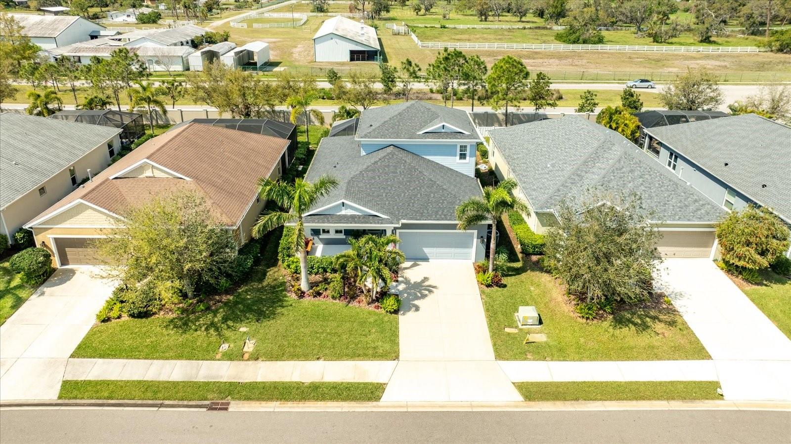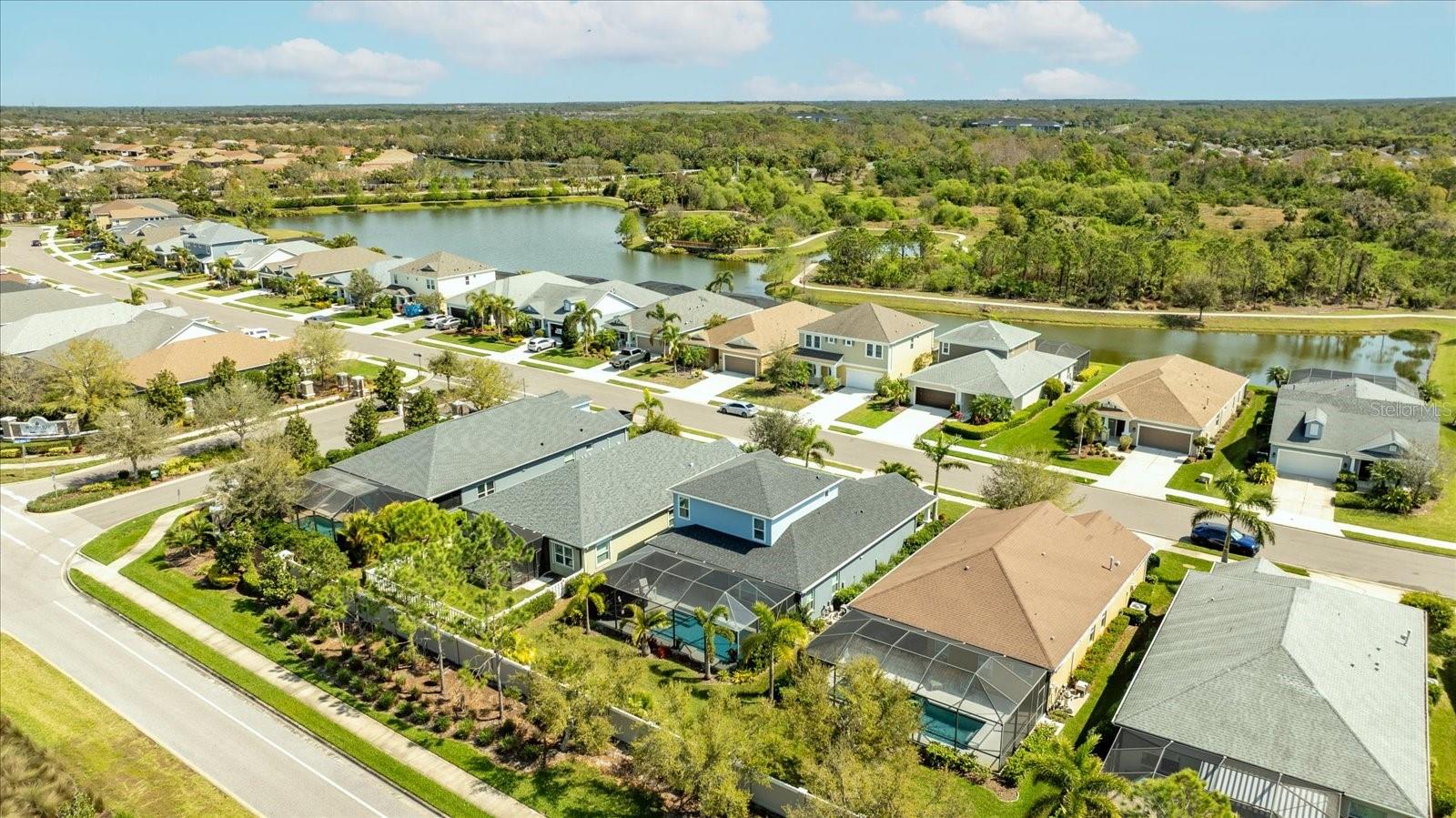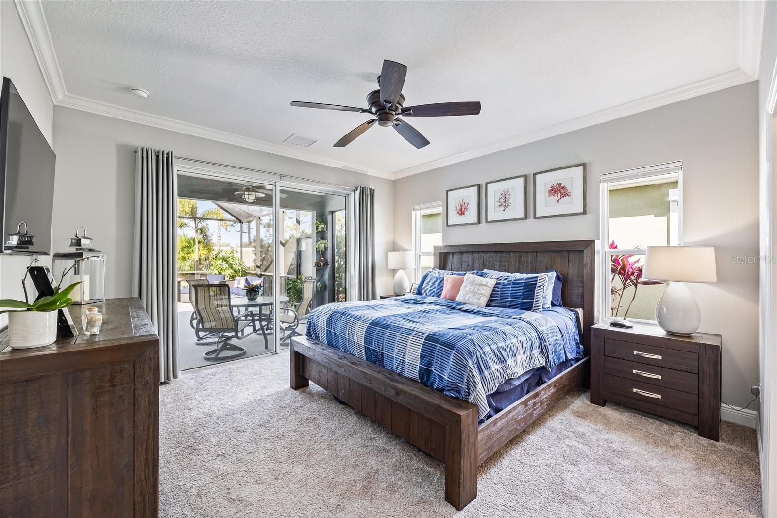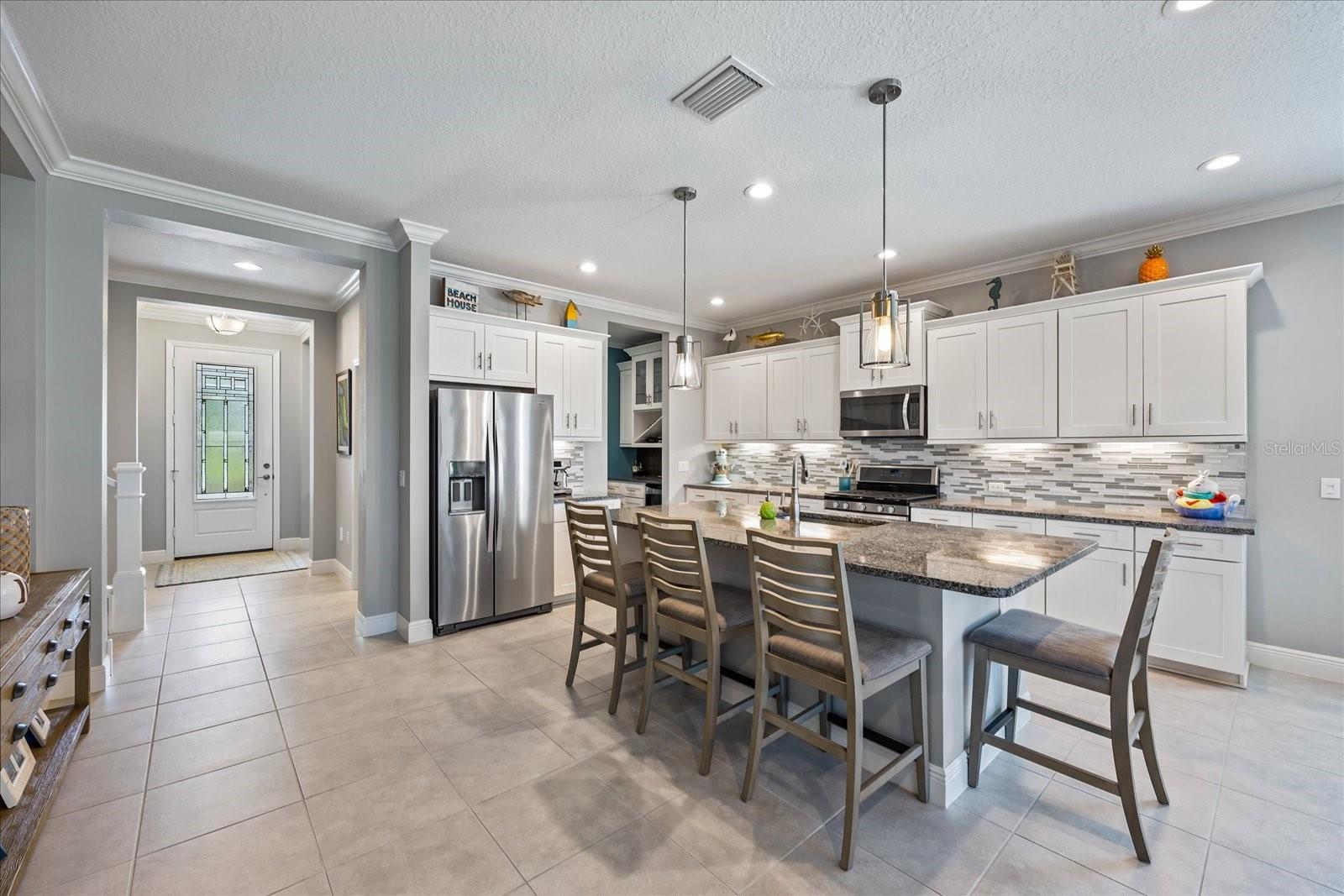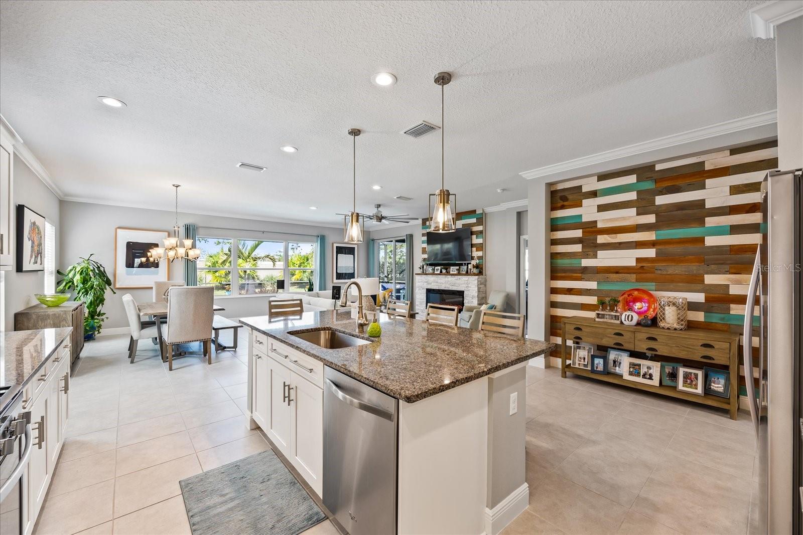 This stunning 2017 Tribute Model by Neal Communities offers an opportunity to own a home that is beautifully designed and immaculately kept. The open floor plan welcomes you as soon as you walk through the door, offering a versatile layout perfect for entertaining or simply relaxing by the electric fireplace with family and loved ones. The well-appointed kitchen is a chef’s dream, featuring a spacious island, ample countertop space, abundant cabinetry, and a built-in butler’s pantry/bar. The primary suite is located on the ground floor. Efficiency is a key highlight of this home, equipped with a tankless water heater, natural gas, central vacuum, UV light HVAC system, gas pool heater (2021), pool pump (2023), and a freshly painted pool deck (2025), insulated concrete block, hurricane shutters, not in a flood zone, high and dry during the hurricane(s) in 2024, extra deep garage (large enough for a full size pick up. truck), landscape lighting. The high ceilings and elegant crown molding add to the upscale feel, complemented by neutral tones and abundant natural light that create a warm and inviting atmosphere. Step outside to a private pool area, where the perfectly sized saltwater pool and efficient heating system make for a refreshing morning swim or a relaxing evening dip. The gated community offers added security and a sense of exclusivity. This home truly embodies luxury, efficiency, and comfort—schedule a showing today to see it for yourself!