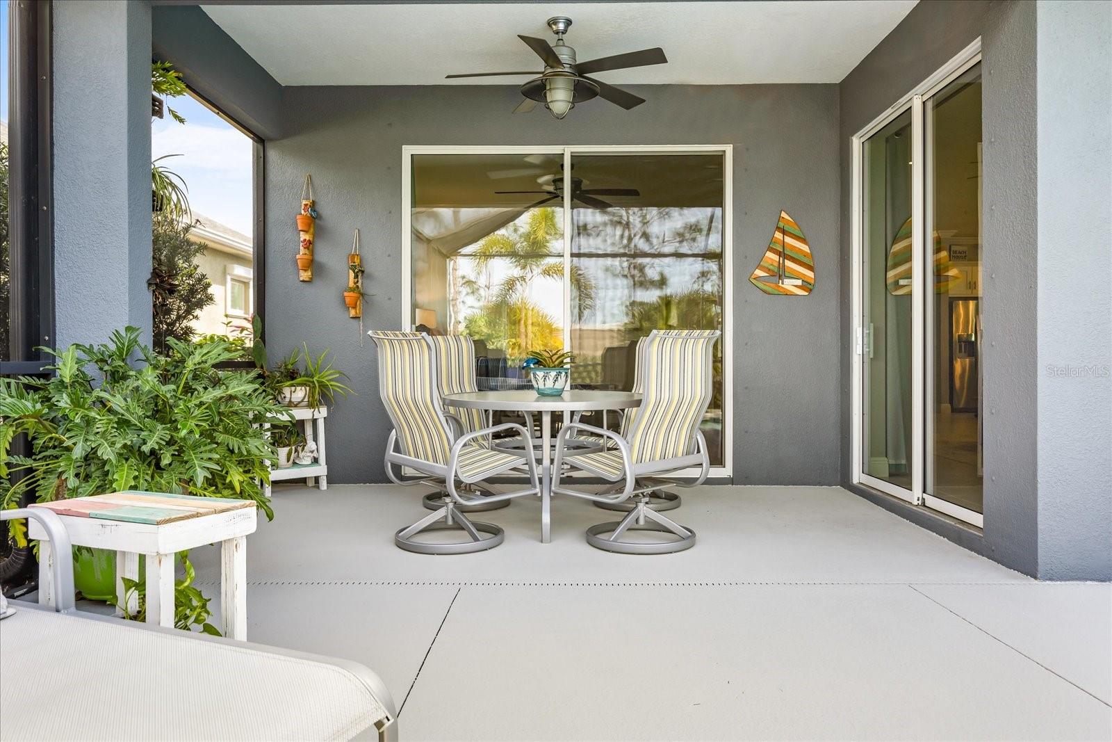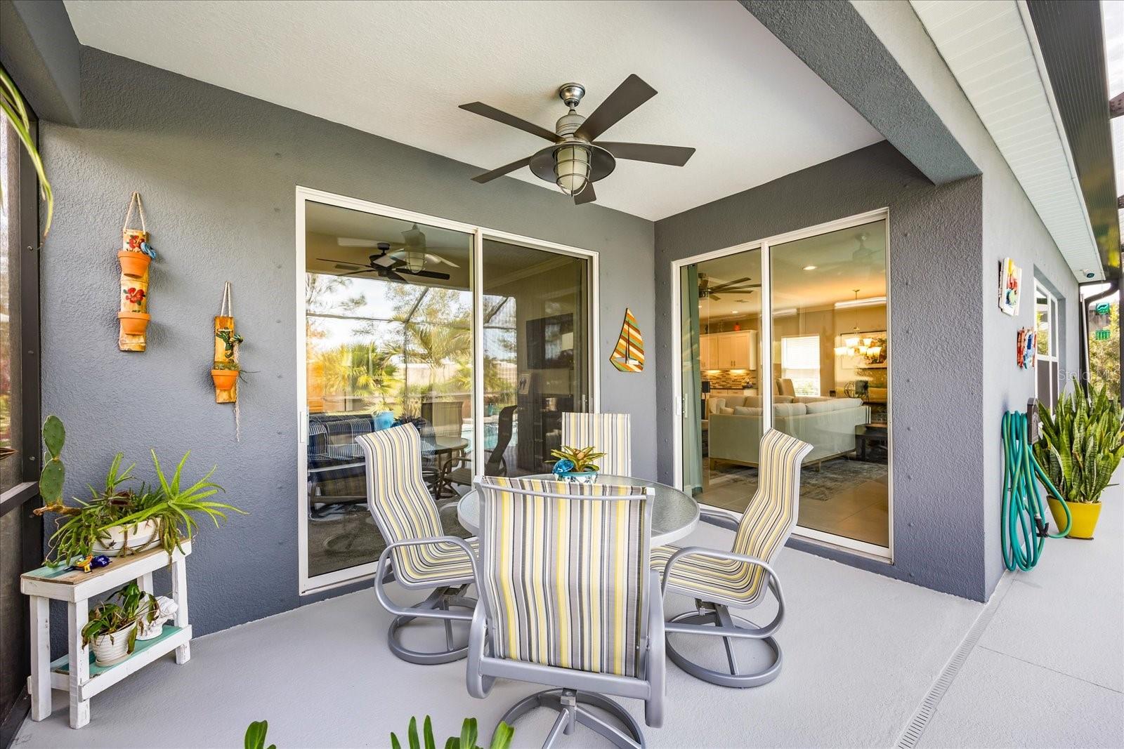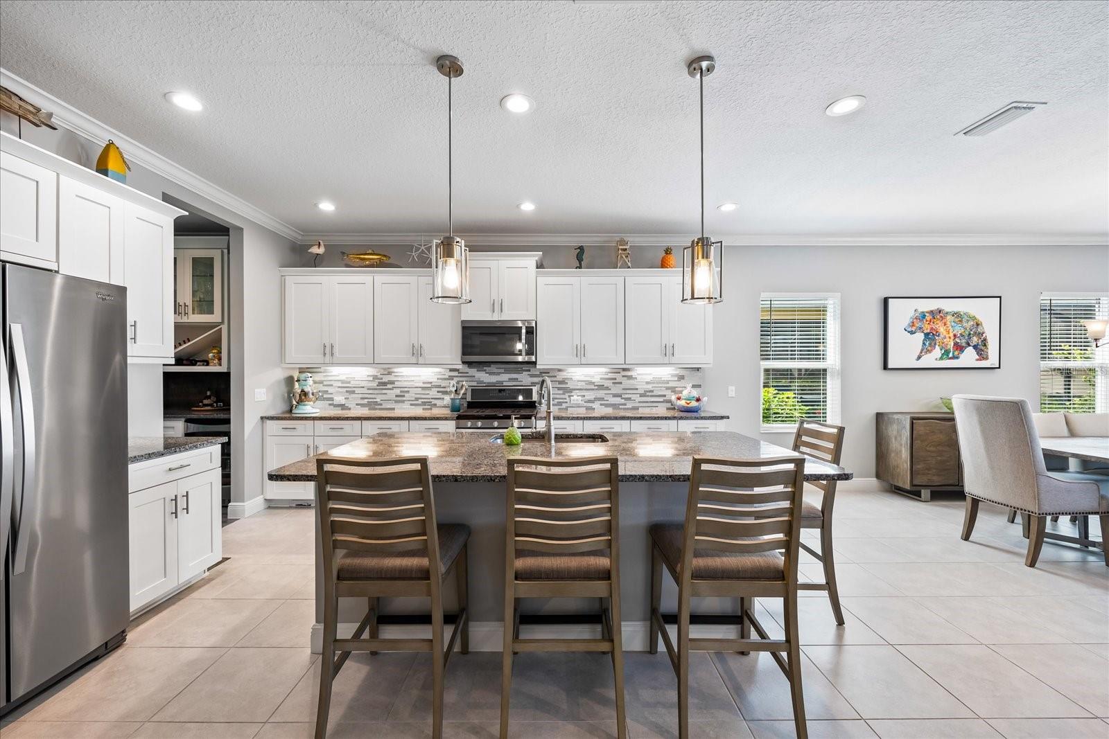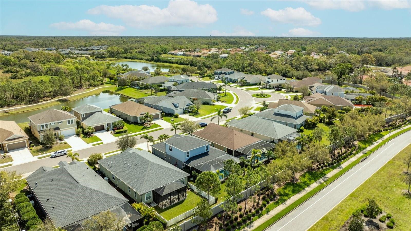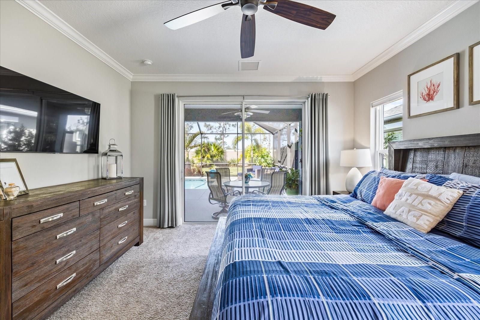 This stunning 2017 Tribute Model by Neal Communities offers an opportunity to own a home that is beautifully designed and immaculately kept. The open floor plan welcomes you as soon as you walk through the door, offering a versatile layout perfect for entertaining or simply relaxing by the electric fireplace with family and loved ones. The well-appointed kitchen is a chef’s dream, featuring a spacious island, ample countertop space, abundant cabinetry, and a built-in butler’s pantry/bar. The primary suite is located on the ground floor. Efficiency is a key highlight of this home, equipped with a tankless water heater, natural gas, central vacuum, UV light HVAC system, gas pool heater (2021), pool pump (2023), and a freshly painted pool deck (2025), insulated concrete block, hurricane shutters, not in a flood zone, high and dry during the hurricane(s) in 2024, extra deep garage (large enough for a full size pick up. truck), landscape lighting. The high ceilings and elegant crown molding add to the upscale feel, complemented by neutral tones and abundant natural light that create a warm and inviting atmosphere. Step outside to a private pool area, where the perfectly sized saltwater pool and efficient heating system make for a refreshing morning swim or a relaxing evening dip. The gated community offers added security and a sense of exclusivity. This home truly embodies luxury, efficiency, and comfort—schedule a showing today to see it for yourself!