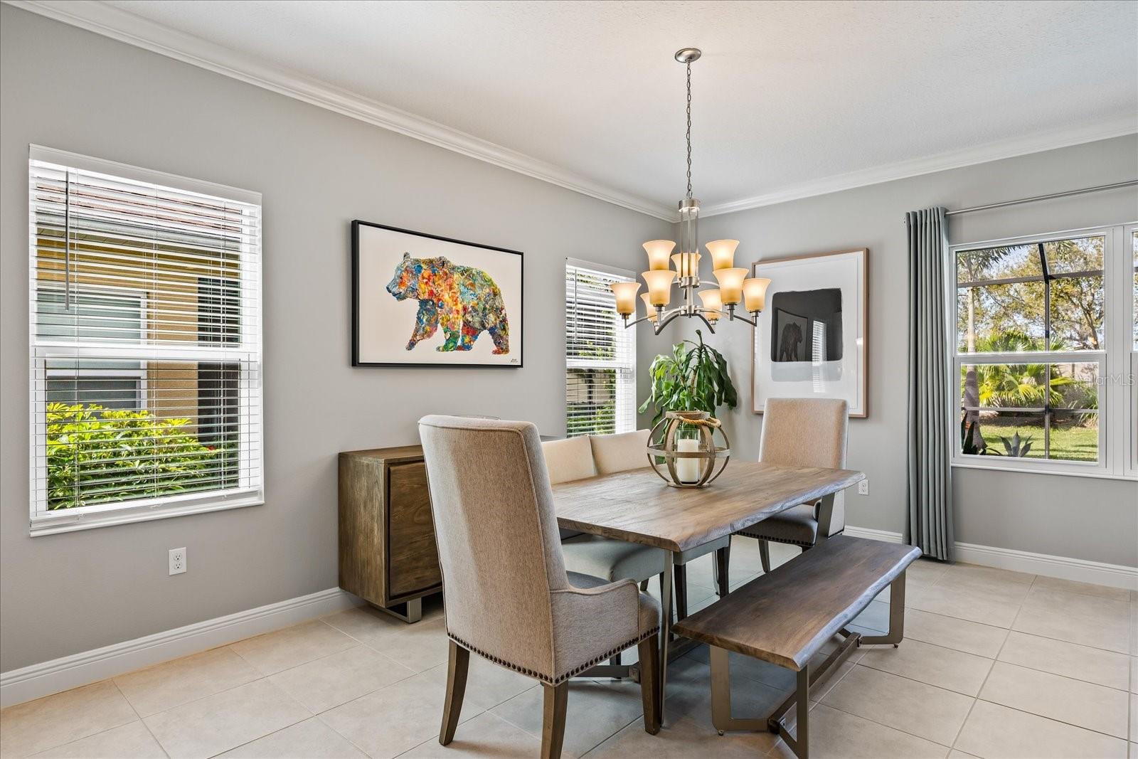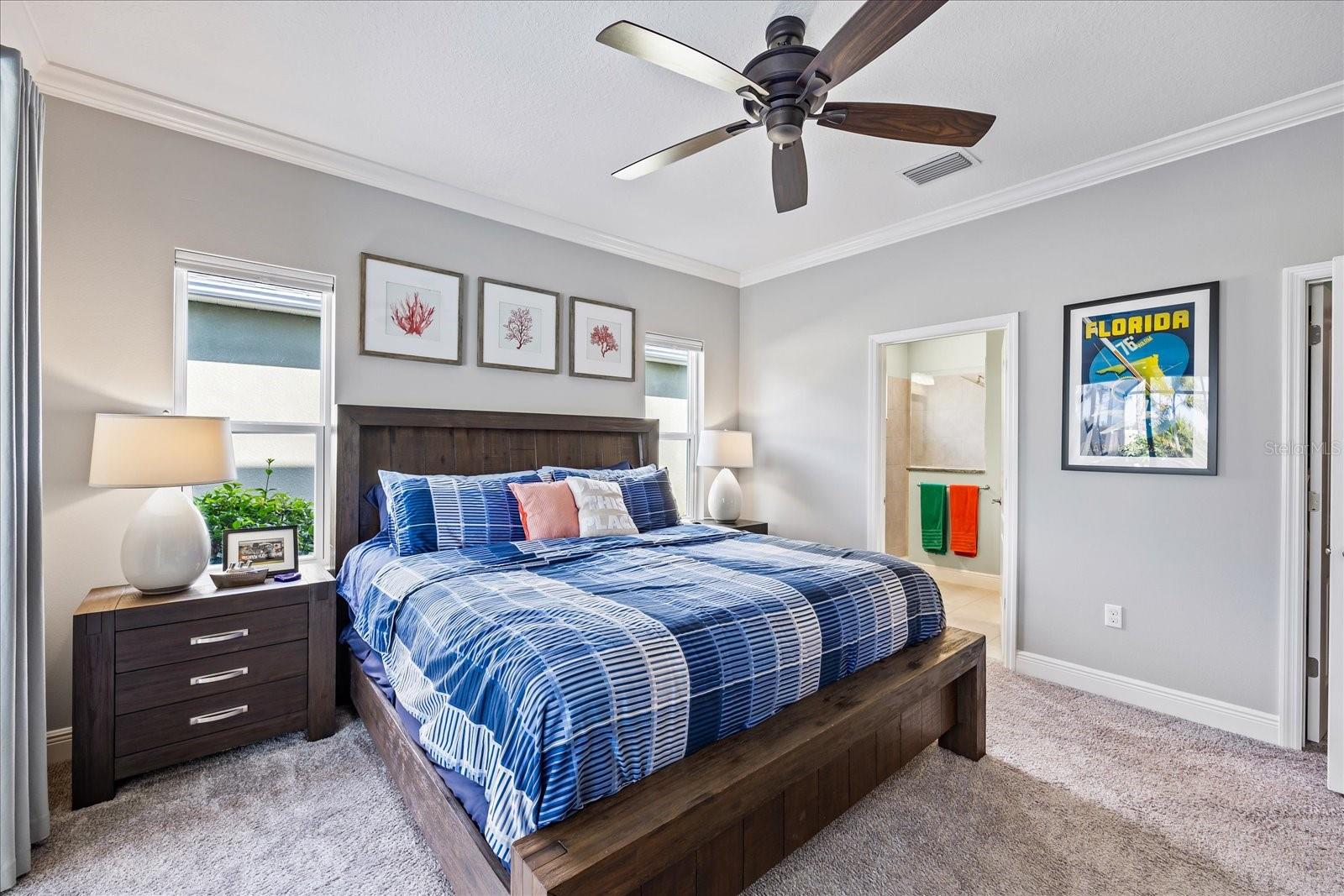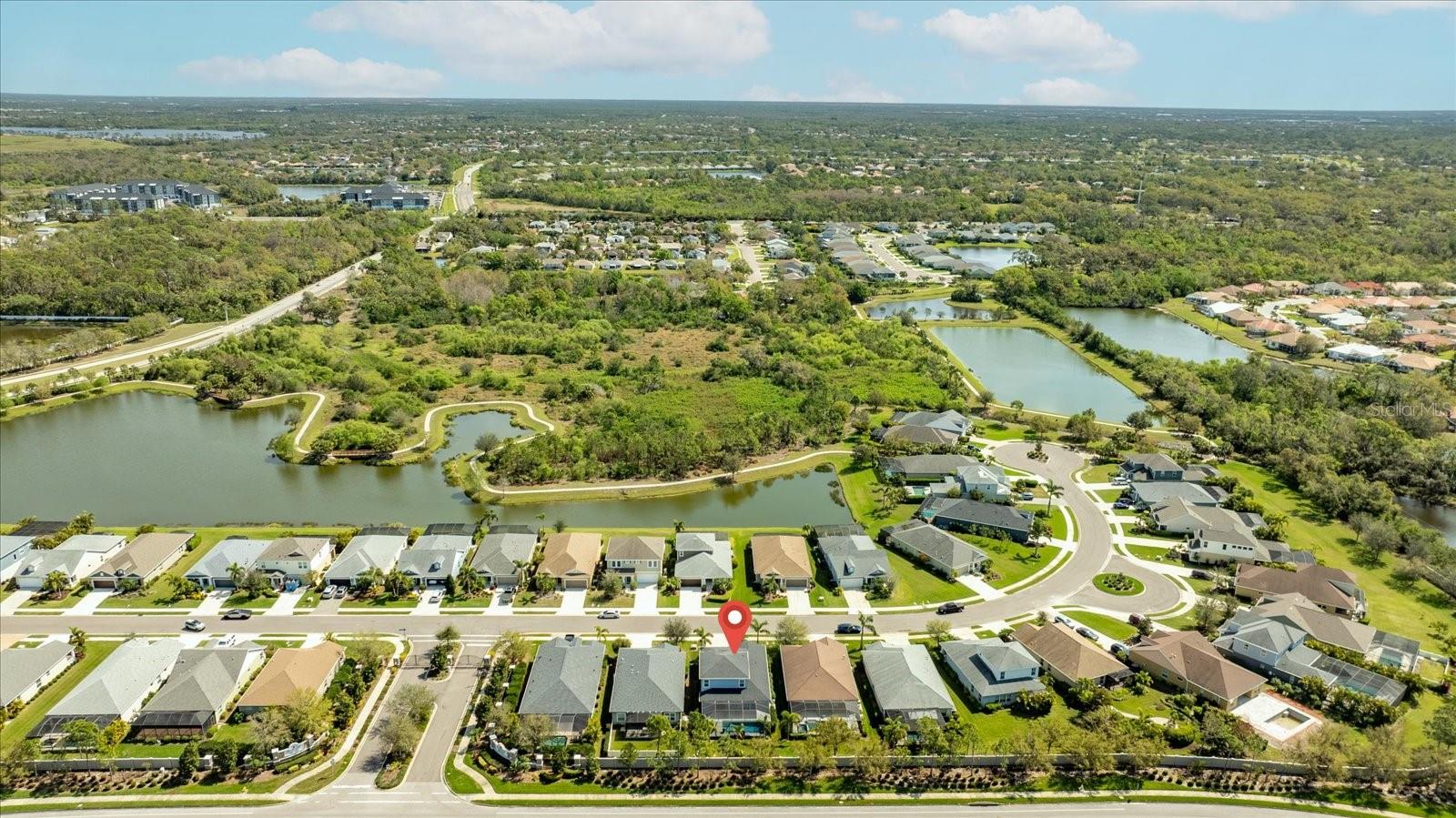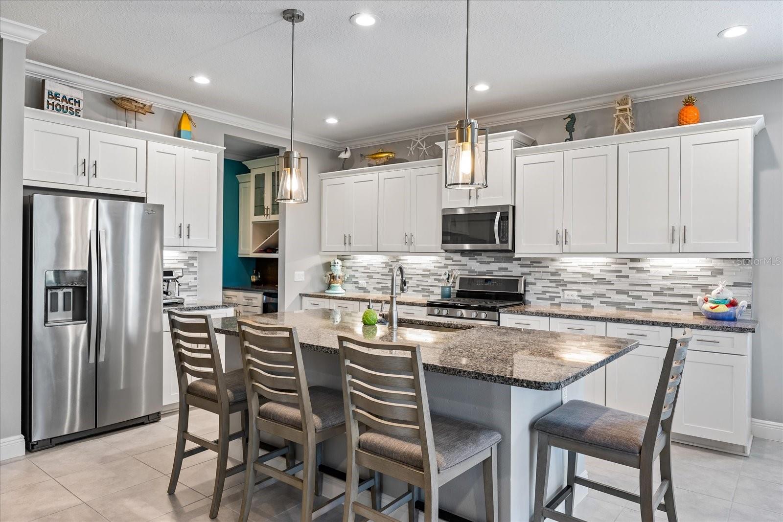 This stunning 2017 Tribute Model by Neal Communities offers an opportunity to own a home that is beautifully designed and immaculately kept. The open floor plan welcomes you as soon as you walk through the door, offering a versatile layout perfect for entertaining or simply relaxing by the electric fireplace with family and loved ones. The well-appointed kitchen is a chef’s dream, featuring a spacious island, ample countertop space, abundant cabinetry, and a built-in butler’s pantry/bar. The primary suite is located on the ground floor. Efficiency is a key highlight of this home, equipped with a tankless water heater, natural gas, central vacuum, UV light HVAC system, gas pool heater (2021), pool pump (2023), and a freshly painted pool deck (2025), insulated concrete block, hurricane shutters, not in a flood zone, high and dry during the hurricane(s) in 2024, extra deep garage (large enough for a full size pick up. truck), landscape lighting. The high ceilings and elegant crown molding add to the upscale feel, complemented by neutral tones and abundant natural light that create a warm and inviting atmosphere. Step outside to a private pool area, where the perfectly sized saltwater pool and efficient heating system make for a refreshing morning swim or a relaxing evening dip. The gated community offers added security and a sense of exclusivity. This home truly embodies luxury, efficiency, and comfort—schedule a showing today to see it for yourself!