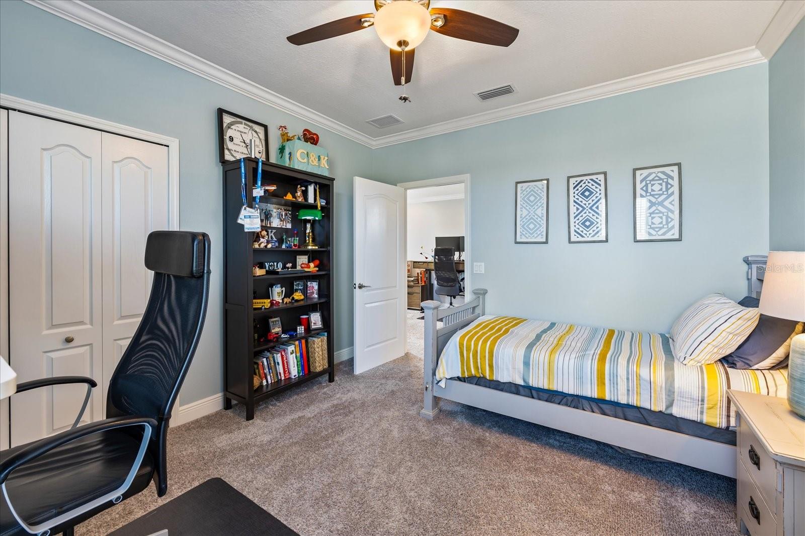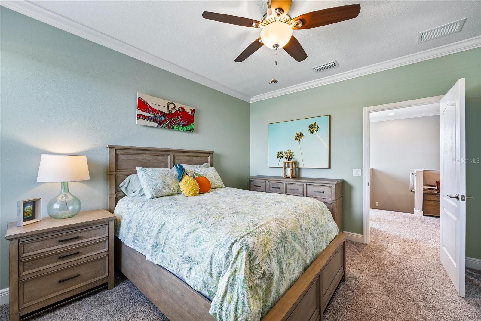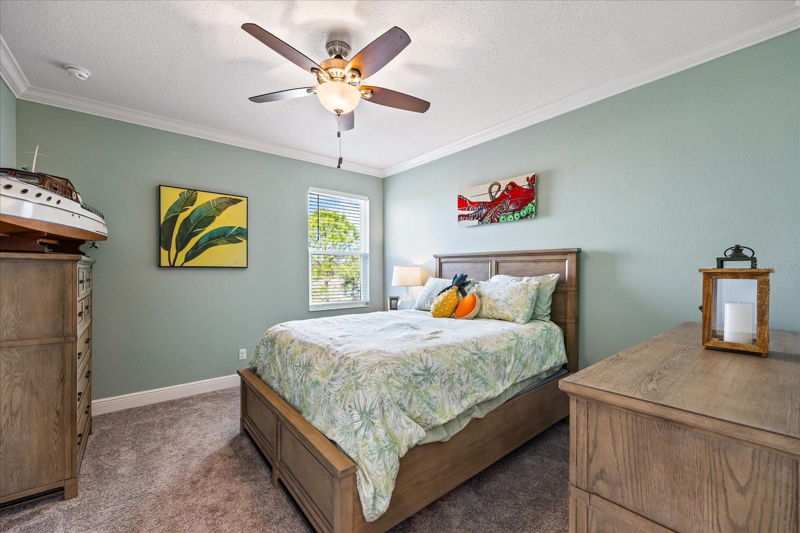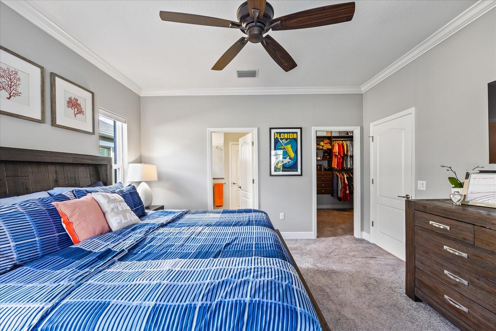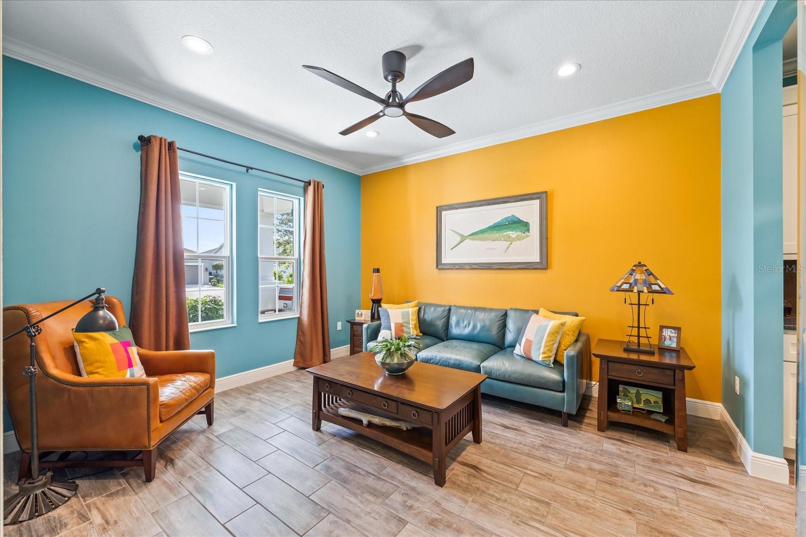 This stunning 2017 Tribute Model by Neal Communities offers an opportunity to own a home that is beautifully designed and immaculately kept. The open floor plan welcomes you as soon as you walk through the door, offering a versatile layout perfect for entertaining or simply relaxing by the electric fireplace with family and loved ones. The well-appointed kitchen is a chef’s dream, featuring a spacious island, ample countertop space, abundant cabinetry, and a built-in butler’s pantry/bar. The primary suite is located on the ground floor. Efficiency is a key highlight of this home, equipped with a tankless water heater, natural gas, central vacuum, UV light HVAC system, gas pool heater (2021), pool pump (2023), and a freshly painted pool deck (2025), insulated concrete block, hurricane shutters, not in a flood zone, high and dry during the hurricane(s) in 2024, extra deep garage (large enough for a full size pick up. truck), landscape lighting. The high ceilings and elegant crown molding add to the upscale feel, complemented by neutral tones and abundant natural light that create a warm and inviting atmosphere. Step outside to a private pool area, where the perfectly sized saltwater pool and efficient heating system make for a refreshing morning swim or a relaxing evening dip. The gated community offers added security and a sense of exclusivity. This home truly embodies luxury, efficiency, and comfort—schedule a showing today to see it for yourself!