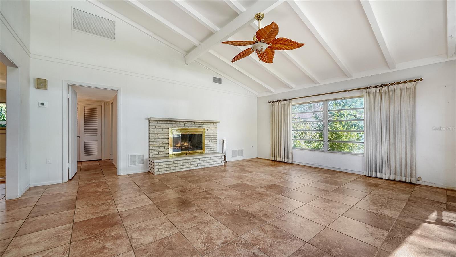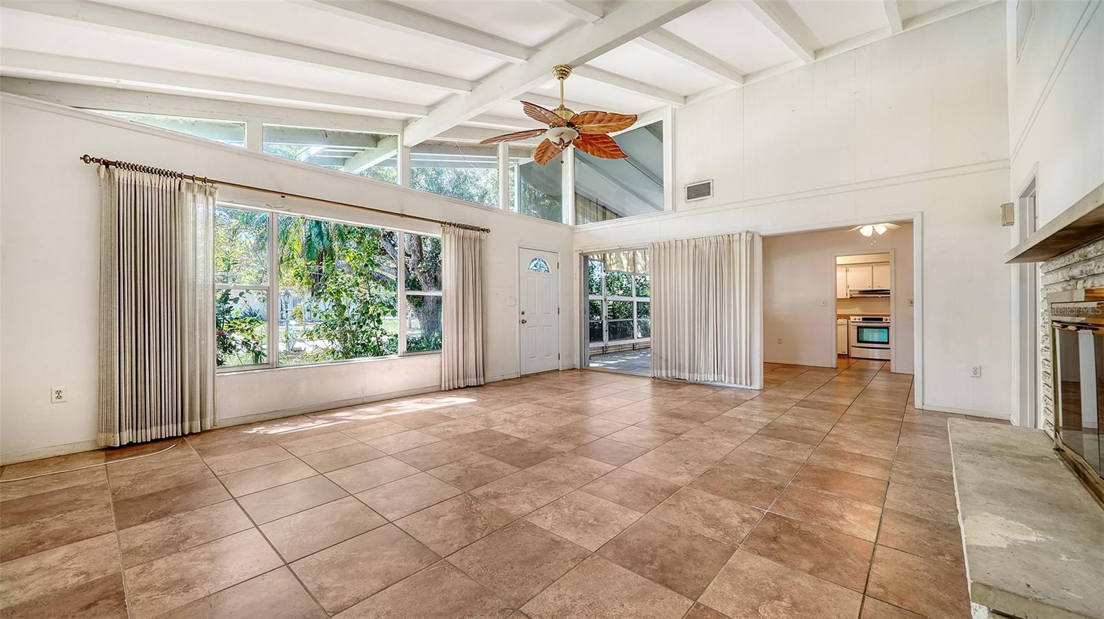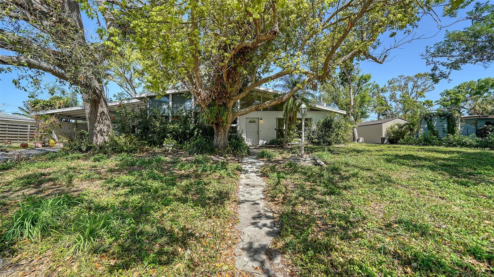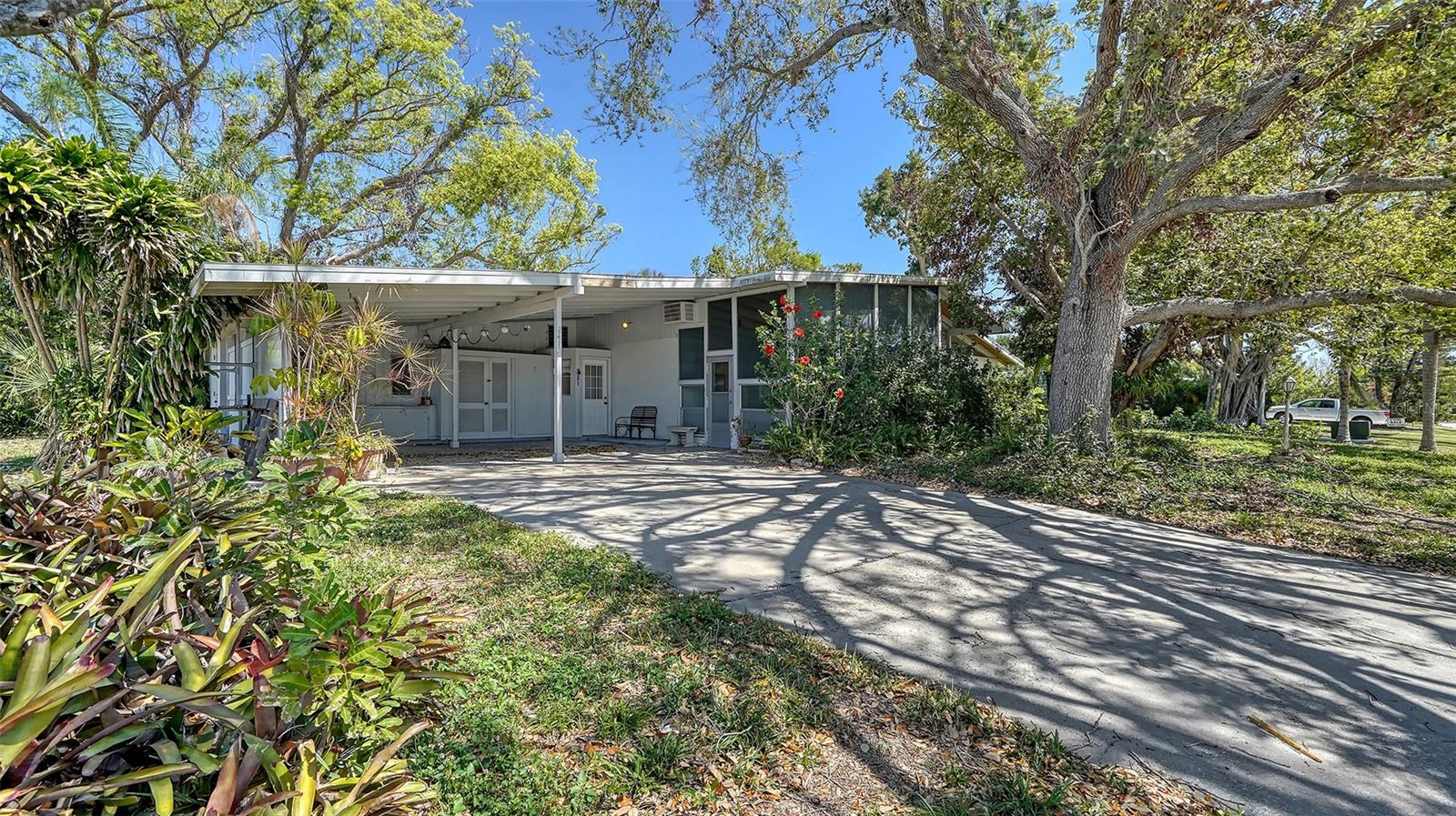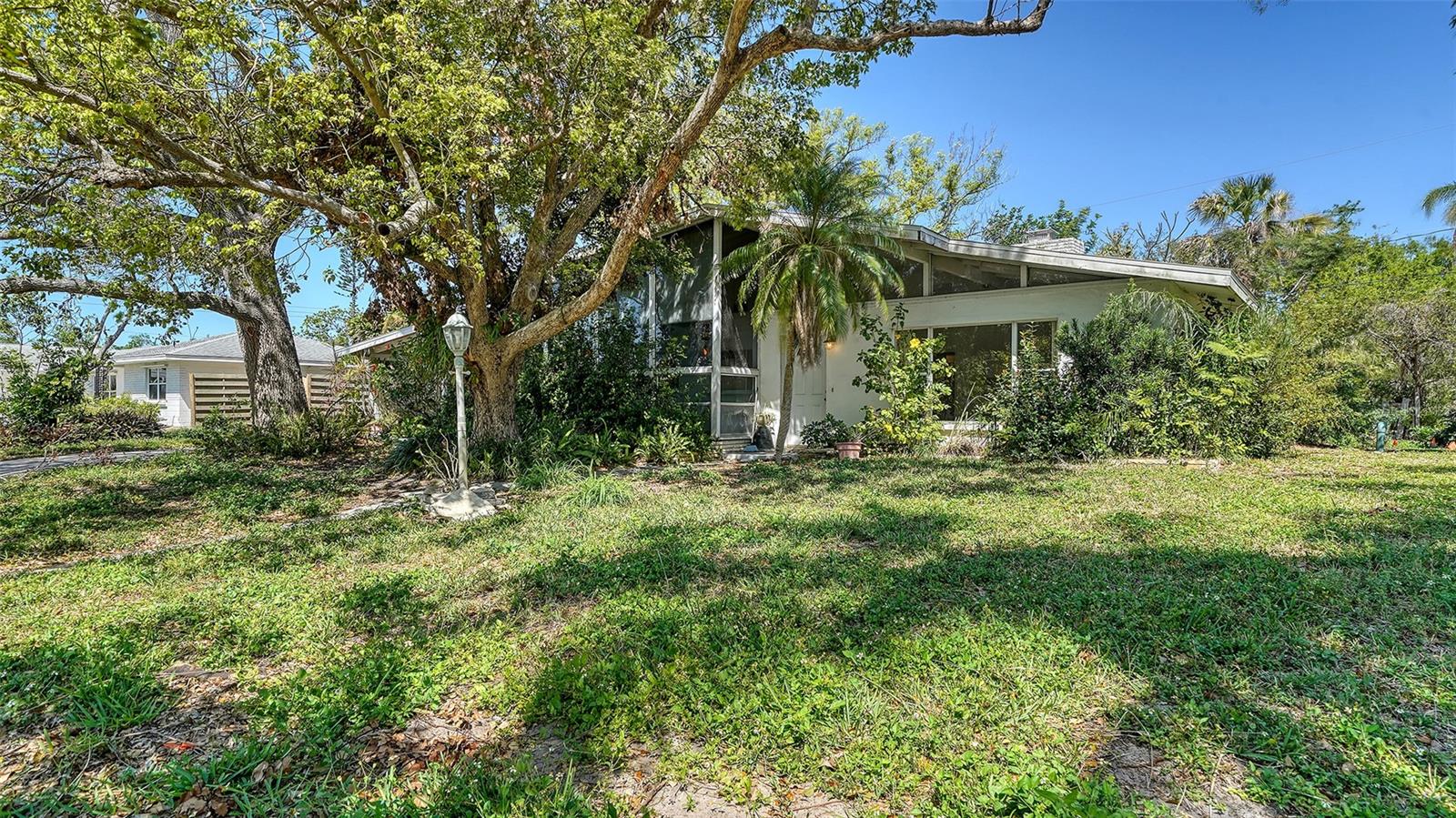 Mid century charmer! Located in popular South Gate. This 2BR + Den, 3BA home is light and bright with plenty of natural light. Tile throughout, cedar lined closets, wood burning fireplace in living room. The quaint sunroom in the front of house is air conditioned. New roof in 2024, new washer & dryer & new A/C. Kitchen offers a Jenn Aire stove top. The lot is very wooded with terrific Oak trees. Shed in back for storage. This location is wonderful close to schools, shopping, restaurants, banking and minutes to Siesta Key beach.