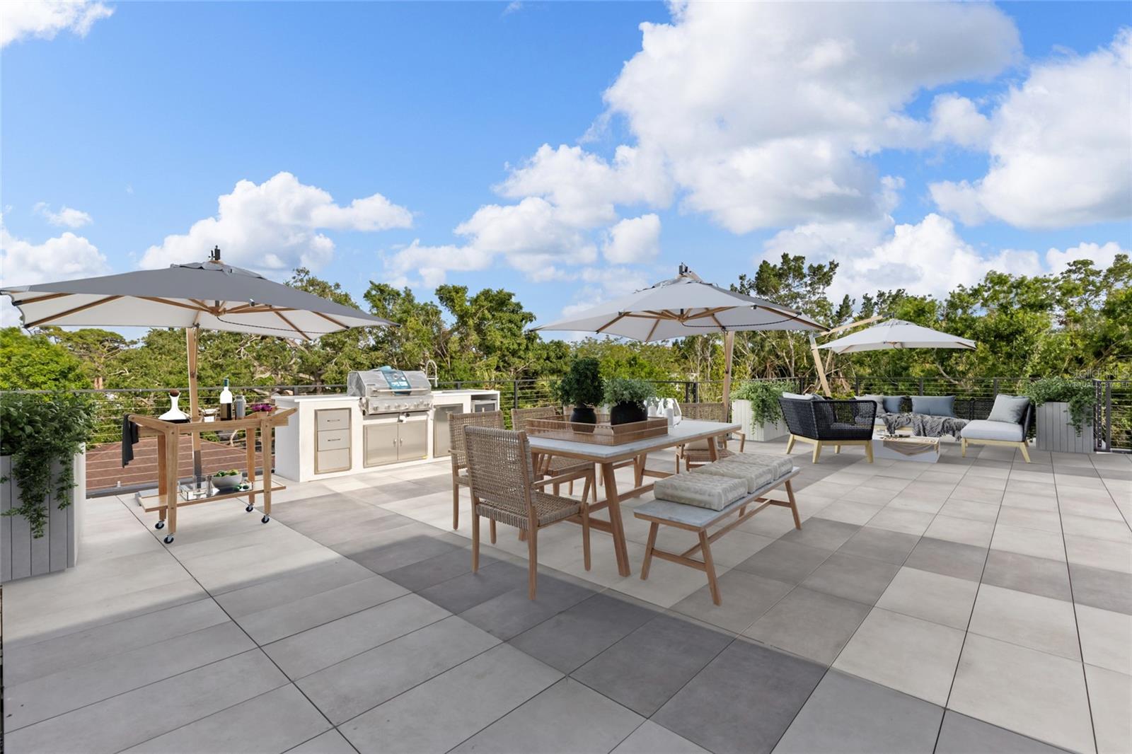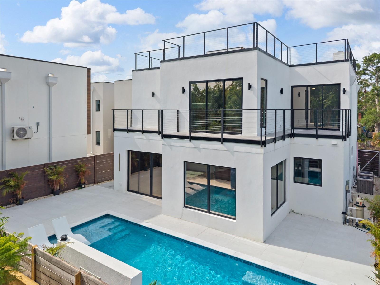 Presenting an exceptional opportunity to own a stunning, modern luxury residence with no HOA fees, ideally located in one of the best areas of Sarasota. This home is conveniently situated near Main Street, a nearby park, and a boat ramp, offering unparalleled accessibility. Additionally, it is just minutes from the marina and the vibrant city center of Sarasota, placing you in the heart of the city's finest dining, shopping, and entertainment. The property is also just half a block from Gillespie Park, featuring a tennis court, further enhancing recreational options. Furthermore, the newly developed 50-acre Bay Sarasota Park offers expansive green spaces, recreational areas, and cultural amenities—perfect for outdoor activities, events, or simply enjoying nature in a peaceful setting. Spanning a total of 5,500 square feet, with 3,780 square feet of core living space, this home offers an expansive and well-designed floor plan. It includes 4 spacious bedrooms, 5 luxurious bathrooms, and a dedicated office space that can easily be converted to suit various professional needs. The office area can be transformed into a completely separate unit, featuring its private bathroom and waiting area. It can function independently, ideal for use as a doctor’s or lawyer’s office, or any other professional setting. The property boasts an oversized rooftop terrace offering panoramic downtown views—perfect for outdoor entertaining. The outdoor kitchen, equipped for al fresco dining, is perfect for hosting gatherings or enjoying intimate meals in a beautiful setting. For added convenience, the home features a spacious 2-car garage and soaring high ceilings throughout, creating a sense of openness and grandeur. Step outside to enjoy your private oasis featuring a modern pool, perfect for relaxation or entertaining. Designed with both style and functionality in mind, this home is the epitome of modern luxury. The contemporary finishes throughout, combined with the prime location near the marina, Sarasota’s vibrant downtown, and the new Bay Sarasota Park, make this an extraordinary opportunity for those seeking an upscale living space with the ability to incorporate a separate professional office—all with the added benefit of no HOA fees. Schedule Your Showing for Today!! virtually staged