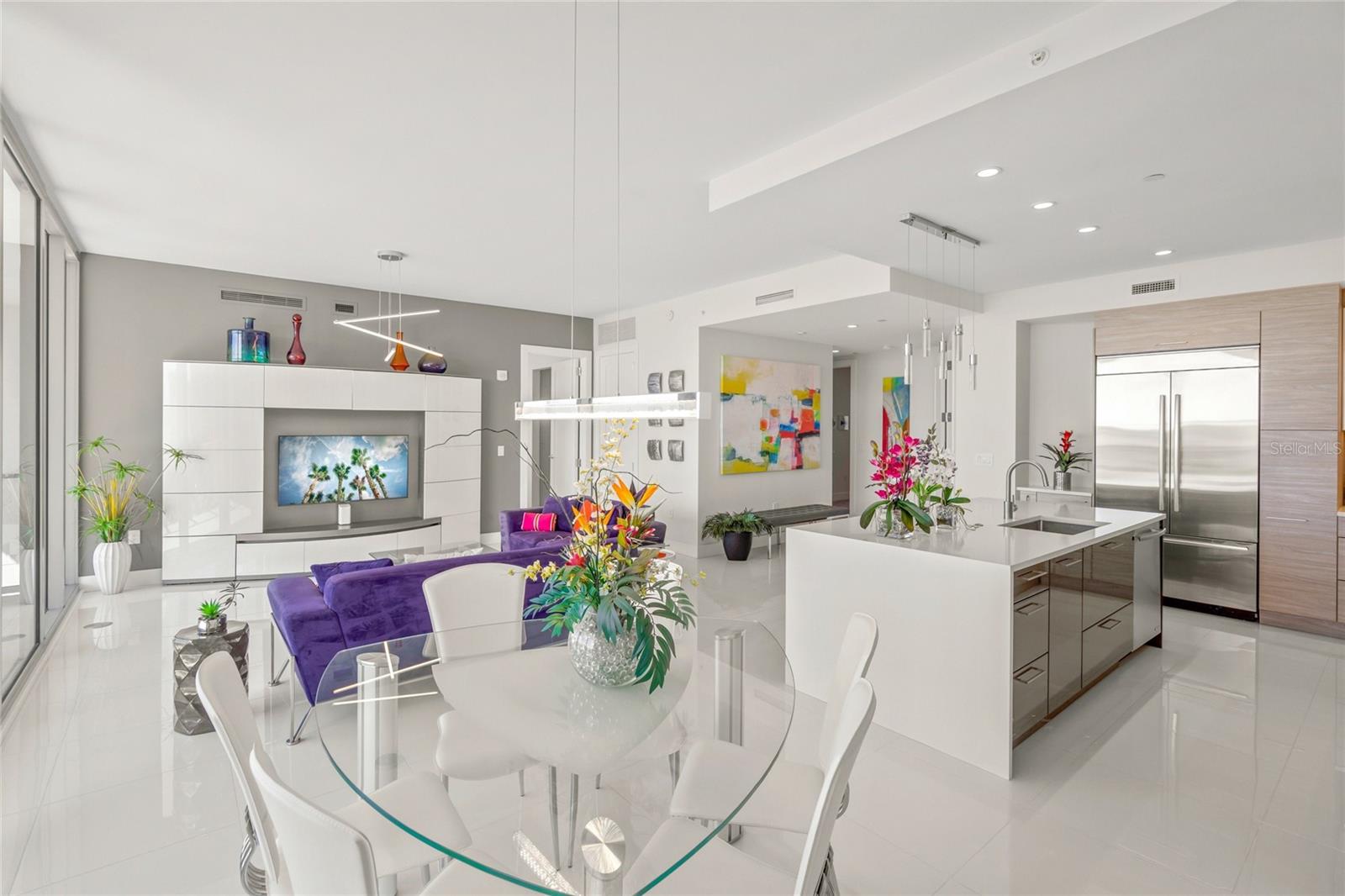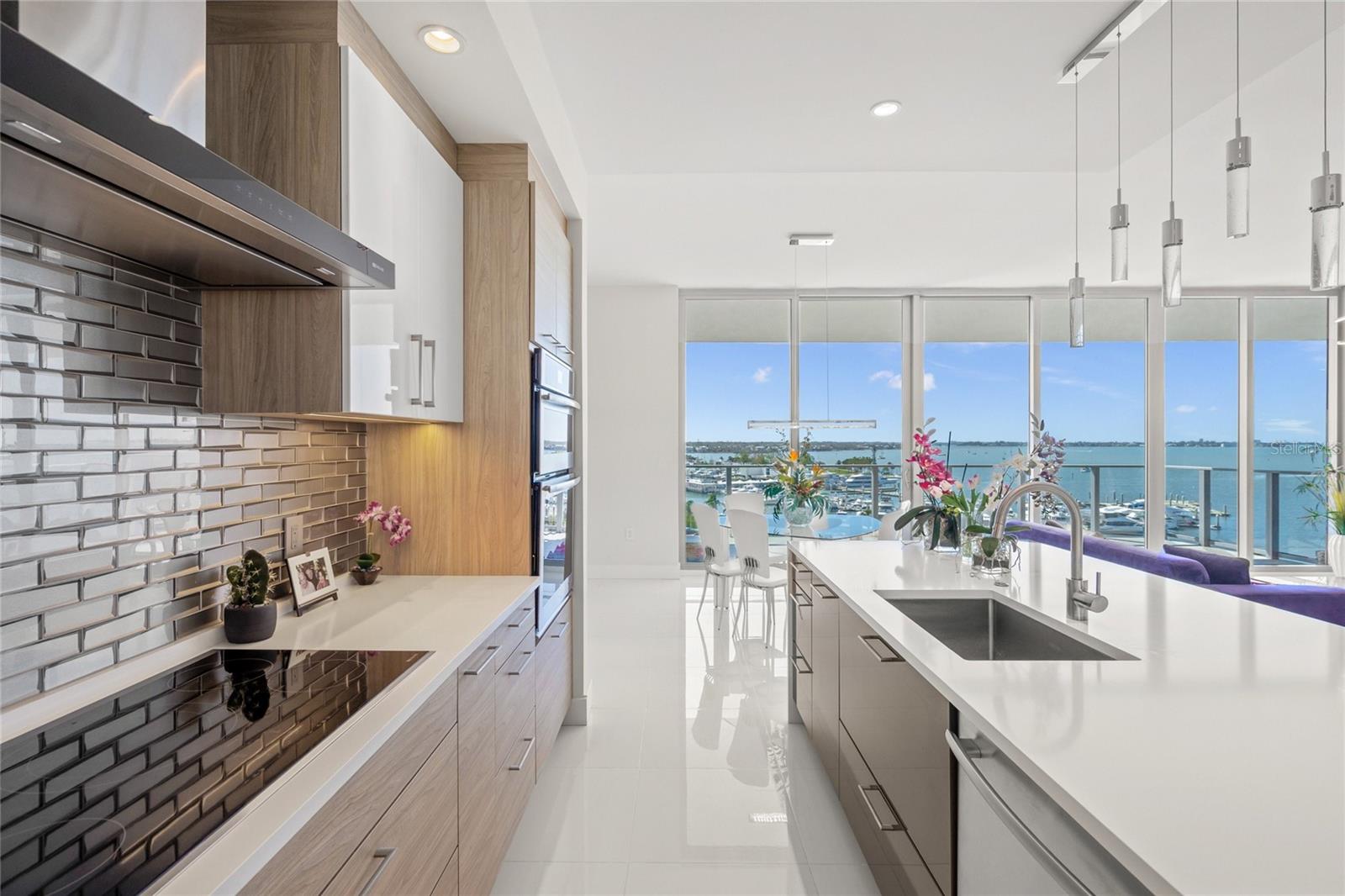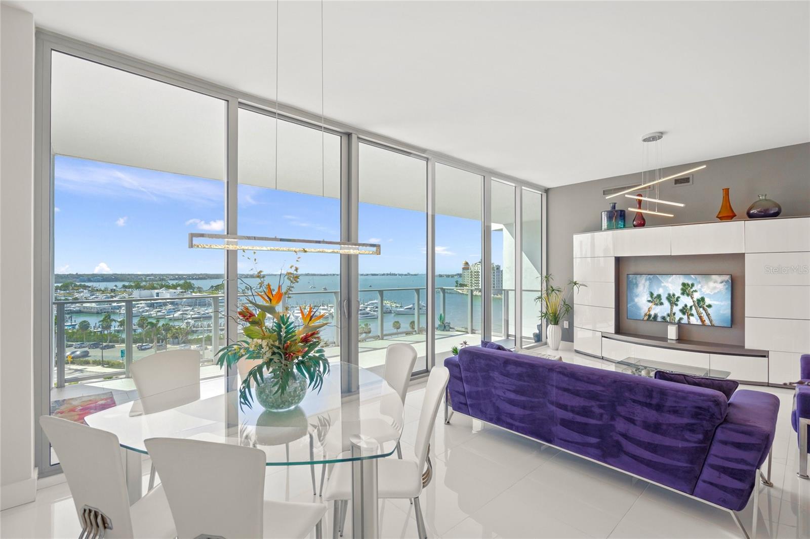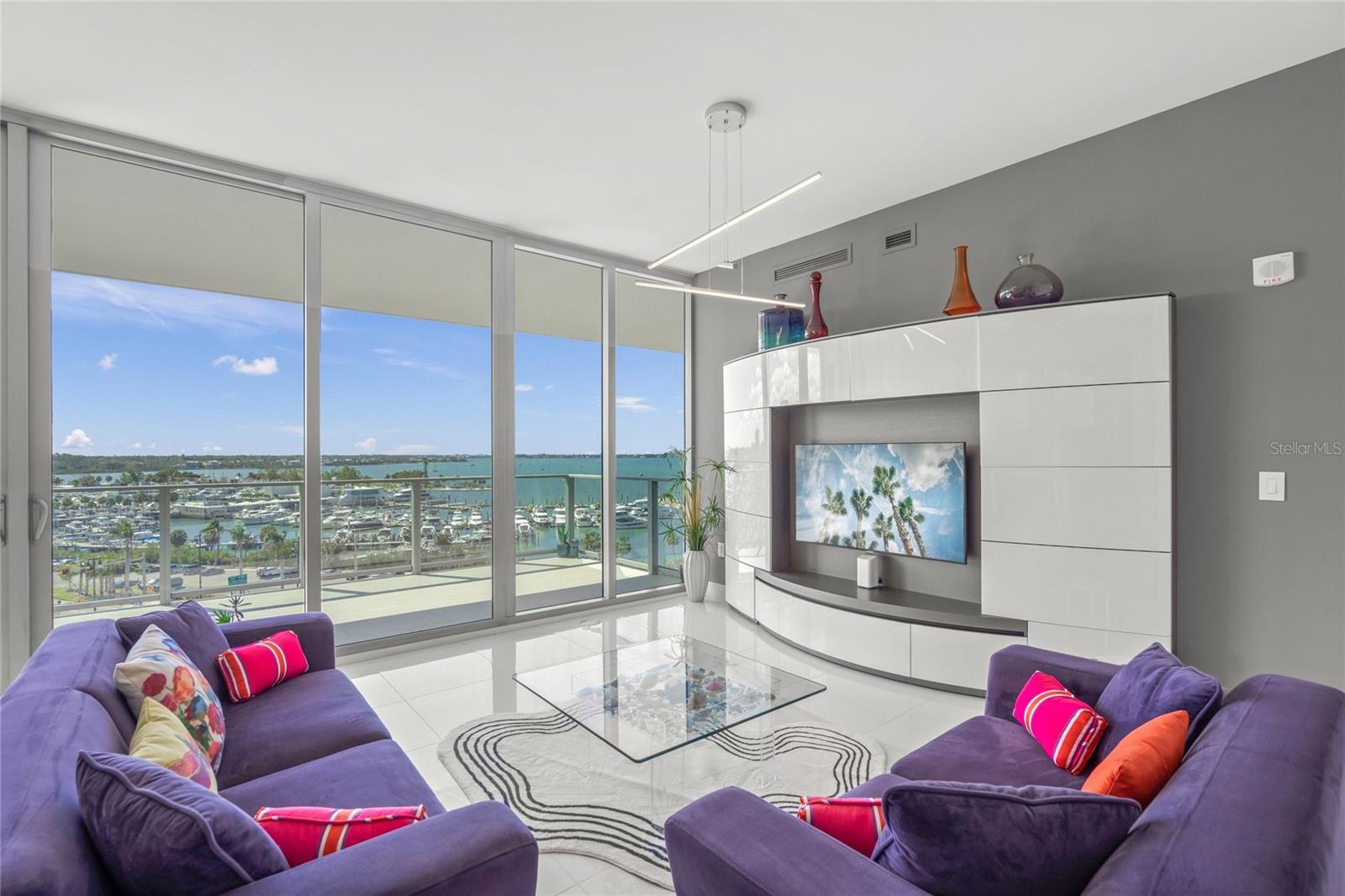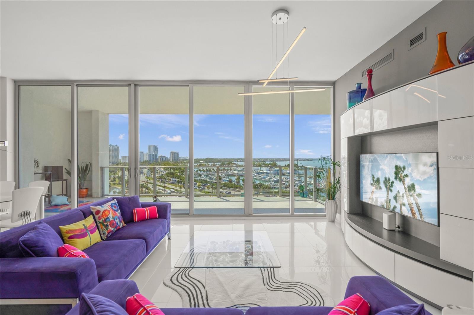 PRICED TO SELL! The Vue Sarasota Bay Condominium offers a luxurious mainland lifestyle in the heart of Sarasota. This is the iconic building everyone notices upon arriving in the city. Residents enjoy an extensive array of exclusive services and amenities at The Vue, including 24-hour security and concierge services, valet parking, a state-of-the-art fitness center, a resort-style infinity pool with spa and grilling area, and a very active social committee. As the valet opens your car door and you step through the elegant lobby, one word comes to mind: Nice. Your residence at The Vue offers exceptional privacy and stunning sunrises over the city each morning. This prestigious home provides breathtaking views of Sarasota Bay, the City Marina, the Intracoastal Waterway, Big Pass, and even a glimpse of the Gulf of Mexico. The private elevator opens directly into your seventh-floor foyer, leading to your personal sanctuary. Greeted by a gorgeous, three-dimensional panoramic scene—and perhaps a warm welcome from your pets—you'll feel one thing: I earned this. The open floor plan boasts incredible views from the eat-in kitchen, the spacious living/dining area, and the primary bedroom with its luxurious en-suite bath. Gleaming floors, top-of-the-line Jenn-Air appliances, a water softener system, a whimsical "octopus in the shower," and an unusually large storage locker add to the appeal of this remarkable home.