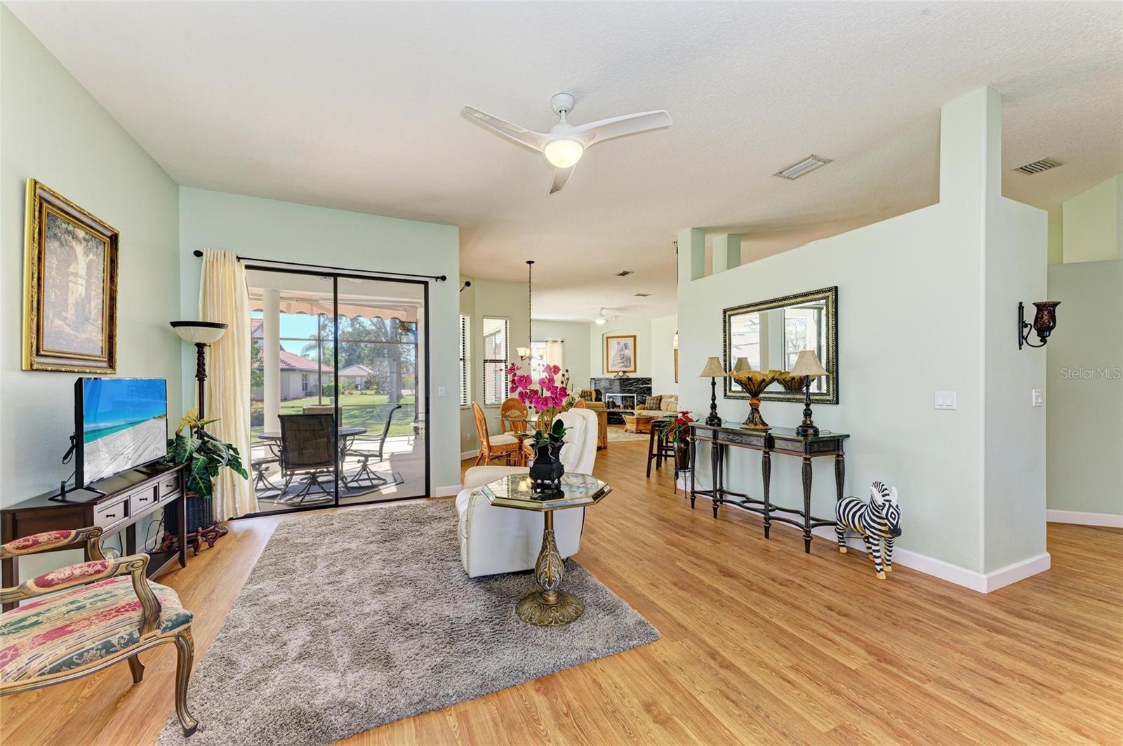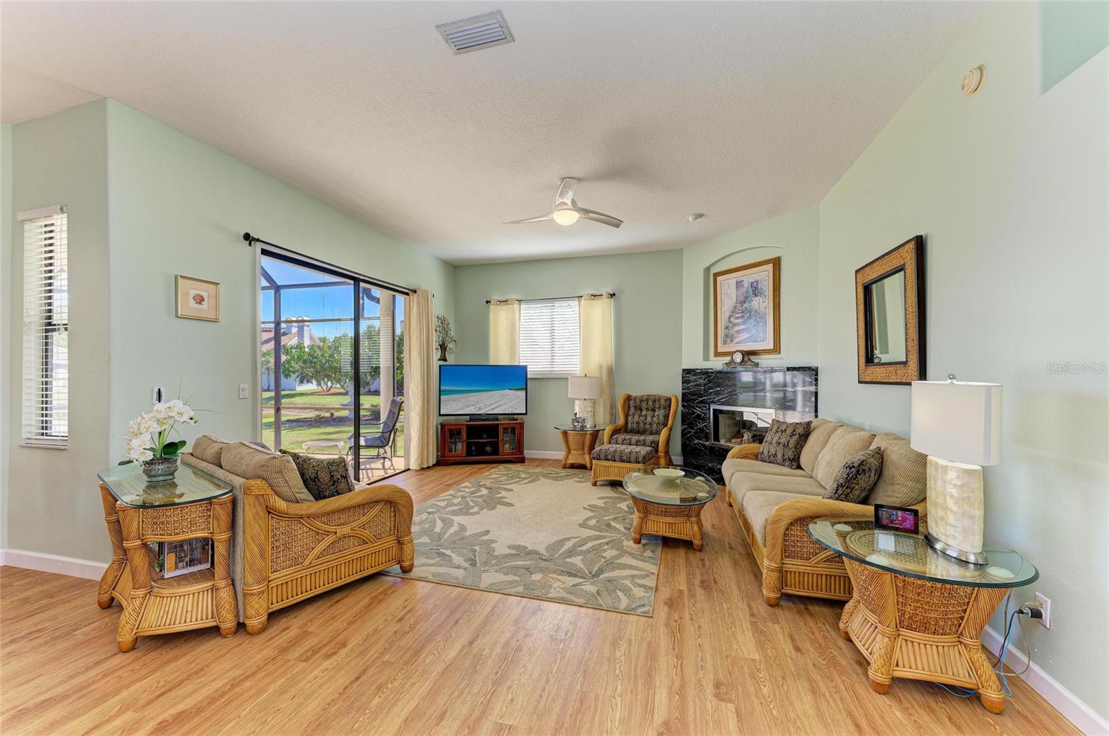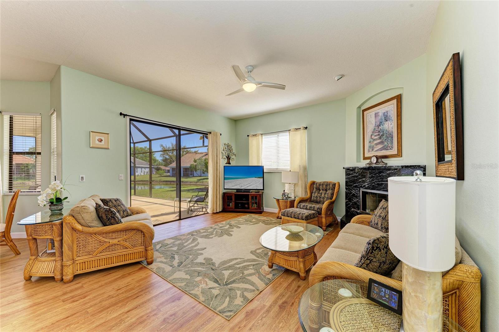Welcome to The Trails in Sarasota! This beautiful 3 bedroom/2 bath split floor plan home has tasteful curb appeal, many recent upgrades, a wood burning fireplace, and rests on a third of an acre. This spacious 2100 sq ft home has high ceilings, plenty of natural light throughout, and has recently installed luxury plank vinyl flooring. The kitchen has ample cabinet space, a pantry, newer backsplash, stainless steel appliances, durable granite countertops, and a breakfast bar. The living room has sliding doors to the lanai, and connects to the dining room near the kitchen. The family room also has slider to the lanai, with the corner fireplace and beautiful lake views. The Primary suite has french doors to the lanai, plenty of closet space, his/her sinks and a walk-in shower. The additional two bedrooms are perfect for family, office or guests. The lanai has spectacular views of the lake, covered area for those rainy days, is perfect for entertaining, and was re-screened in 2024. Other upgrades to this home include primary bath renovation, kitchen, and new AC in 2024! This gorgeous home in a sought after community has low HOA fees, no CDD fees, and has lower taxes than Sarasota county. All of this conveniently located near shopping, restaurants, SRQ Airport, downtown Sarasota, UTC Mall, and the world famous beaches of Florida's Gulf Coast!!