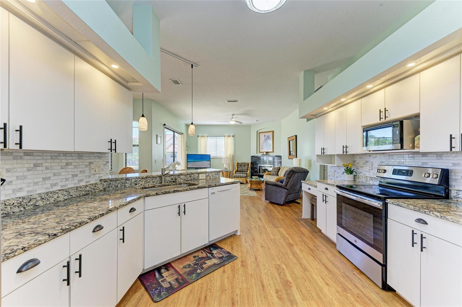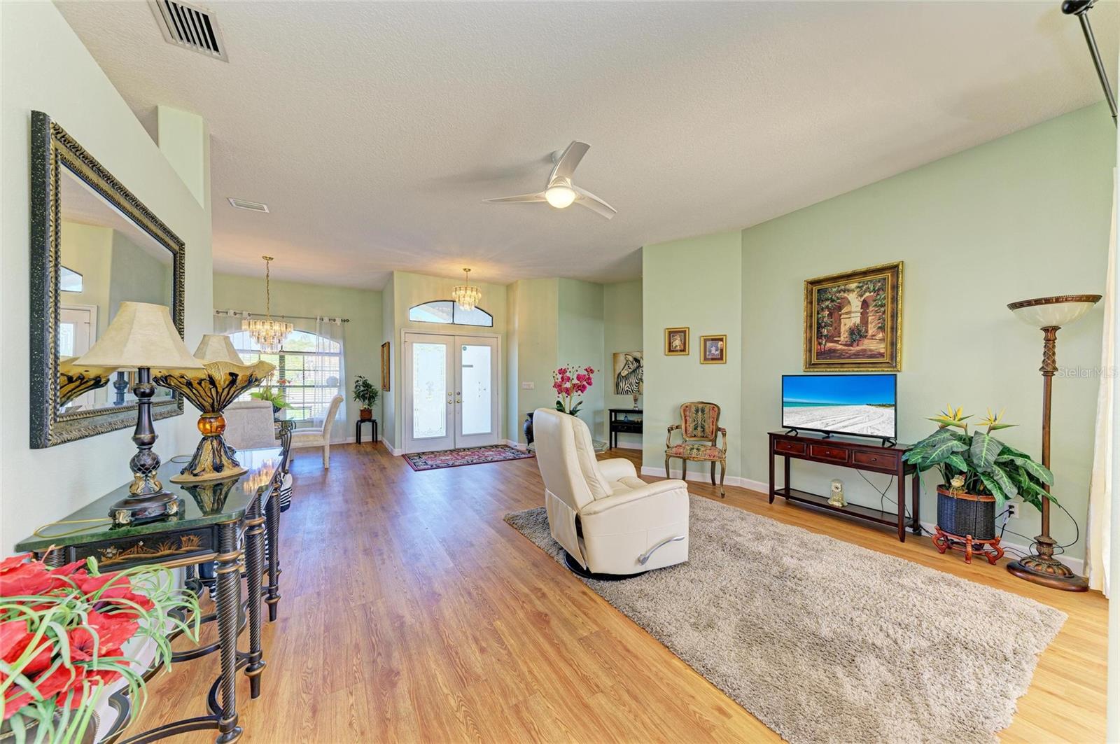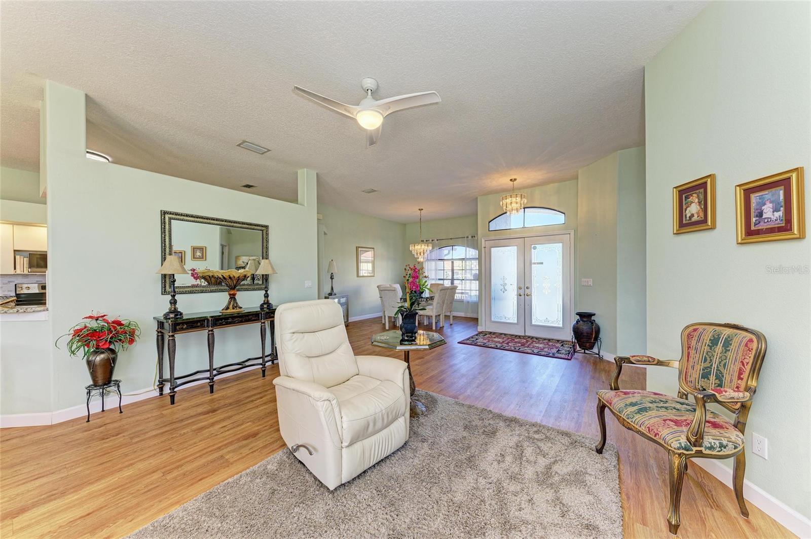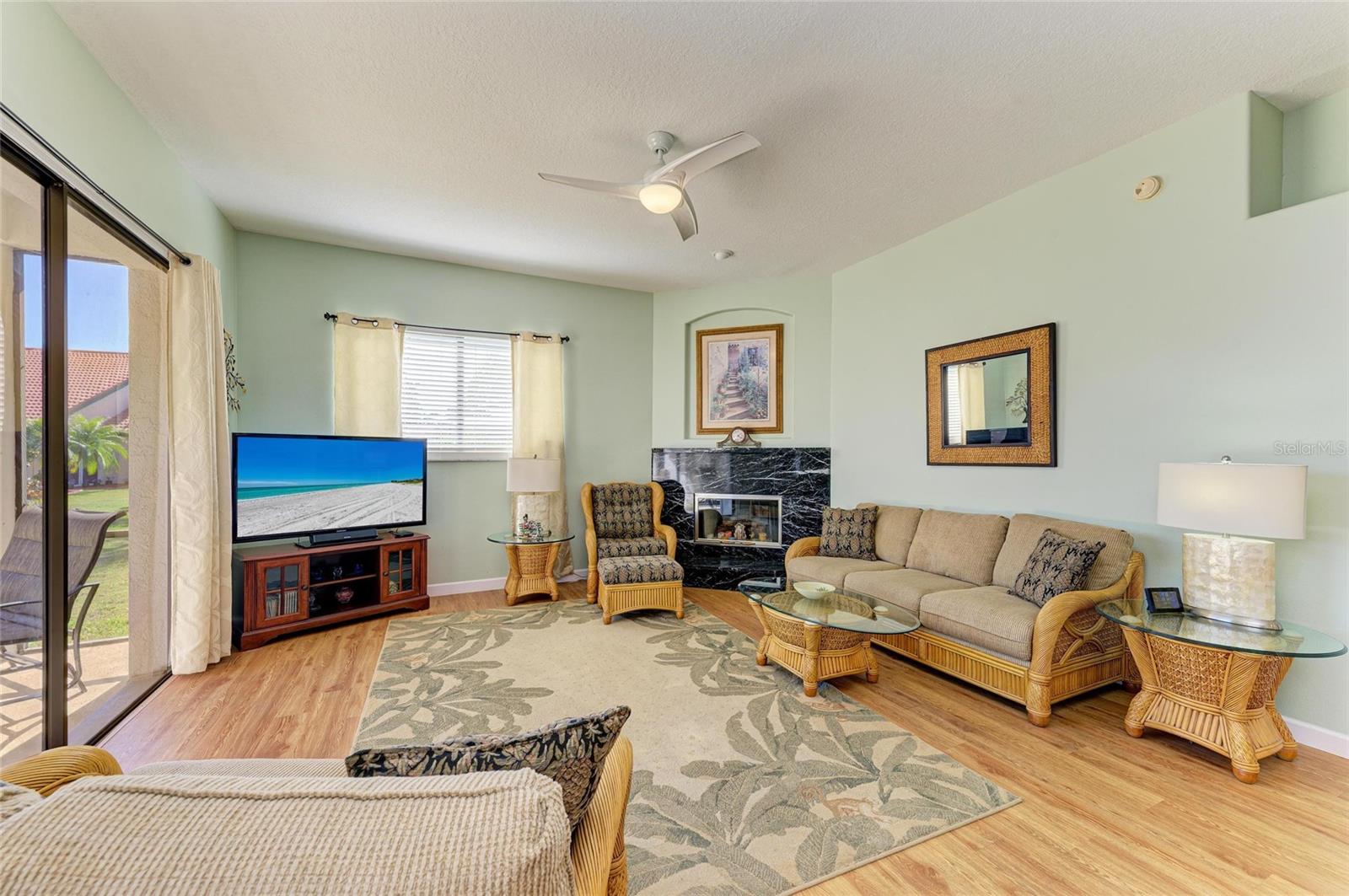 Welcome to The Trails in Sarasota! This beautiful 3 bedroom/2 bath split floor plan home has tasteful curb appeal, many recent upgrades, a wood burning fireplace, and rests on a third of an acre. This spacious 2100 sq ft home has high ceilings, plenty of natural light throughout, and has recently installed luxury plank vinyl flooring. The kitchen has ample cabinet space, a pantry, newer backsplash, stainless steel appliances, durable granite countertops, and a breakfast bar. The living room has sliding doors to the lanai, and connects to the dining room near the kitchen. The family room also has slider to the lanai, with the corner fireplace and beautiful lake views. The Primary suite has french doors to the lanai, plenty of closet space, his/her sinks and a walk-in shower. The additional two bedrooms are perfect for family, office or guests. The lanai has spectacular views of the lake, covered area for those rainy days, is perfect for entertaining, and was re-screened in 2024. Other upgrades to this home include primary bath renovation, kitchen, and new AC in 2024! This gorgeous home in a sought after community has low HOA fees, no CDD fees, and has lower taxes than Sarasota county. All of this conveniently located near shopping, restaurants, SRQ Airport, downtown Sarasota, UTC Mall, and the world famous beaches of Florida's Gulf Coast!!