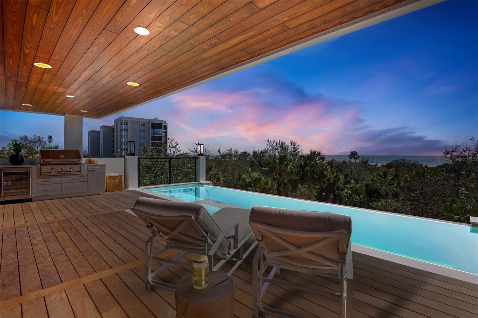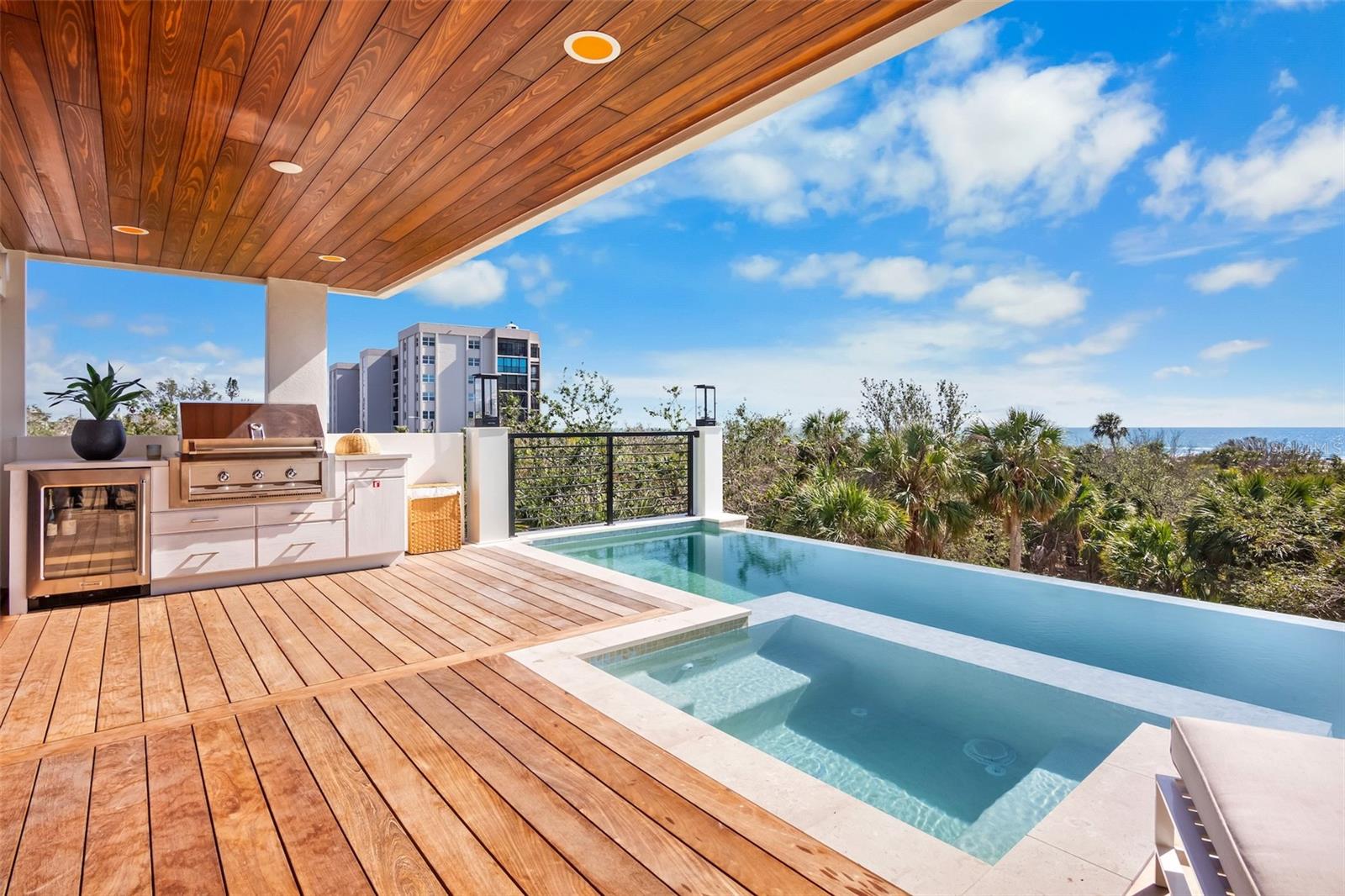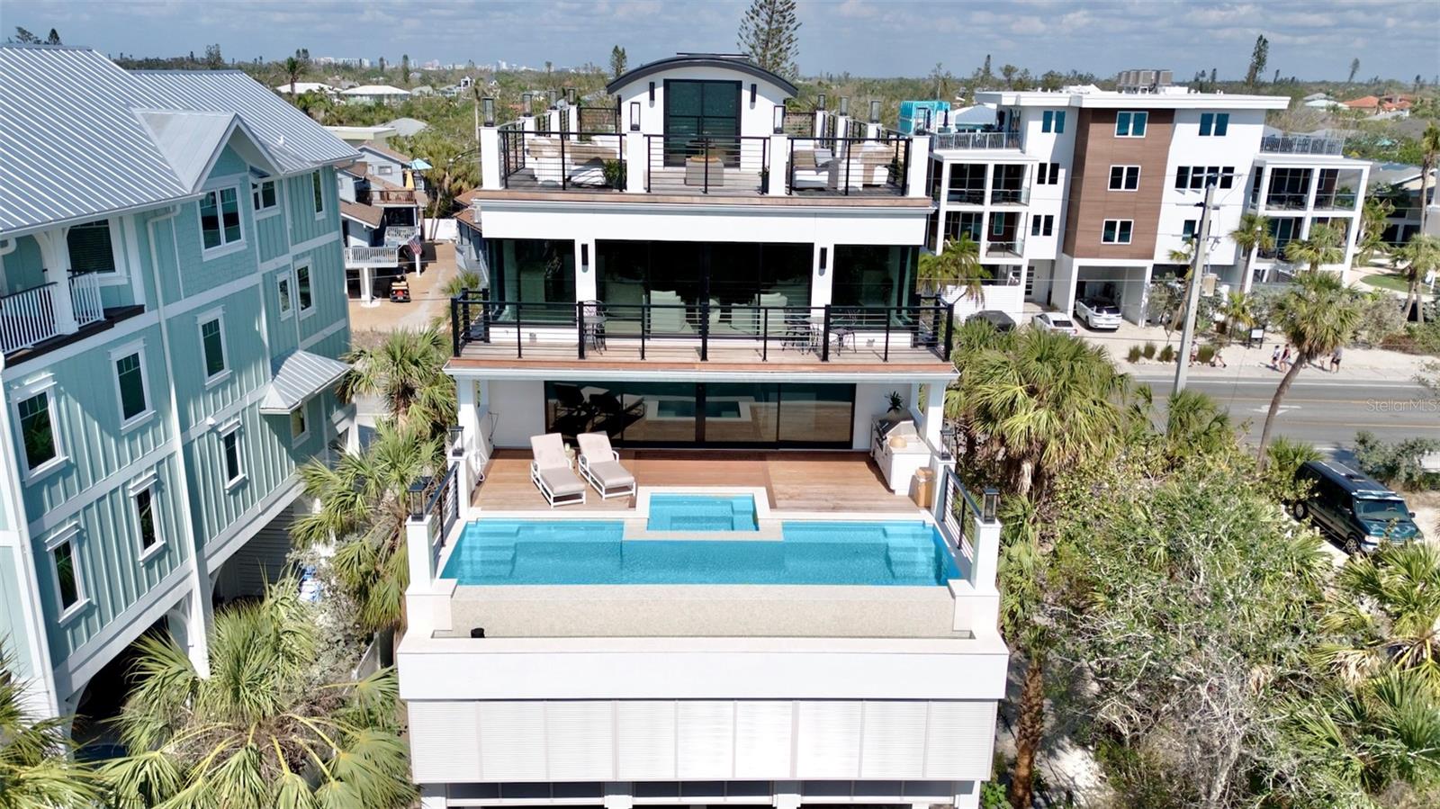 LOOK NO FURTHER! Indulge in the ultimate beachfront luxury at Siesta Beachfront Paradise, a stunning new construction home that offers an unparalleled escape on the renowned Siesta Key right next to the Siesta Key Village. With 8 spacious bedrooms and 8 ensuite bathrooms, this exquisite property is perfect for large families or groups looking to create unforgettable memories in a tropical paradise. Situated just steps from the world-famous Siesta Key Beach, voted the #1 beach, and a mere 3-minute stroll to the charming Siesta Key Village. Inside, Siesta Beachfront Paradise showcases a stylish open-concept design that embodies elegance and comfort. The gourmet kitchen is a chef’s delight, equipped with high-end appliances, a spacious island with seating, and banquet dining overlooking breathtaking beach views through sliding glass doors on the same level as the infinity pool and spa. A separate living space features contemporary seating, a wet bar, and a flat-screen TV for relaxed evenings. Each of the eight luxurious bedrooms is designed for relaxation and comfort, ensuring every guest feels at home. The seven suites offer sumptuous King beds and ensuite bathrooms, while the eighth bedroom has a cozy bunk room with twin-over-twin beds, perfect for the kids. Step outside to discover exceptional outdoor amenities that elevate your stay. The stunning infinity pool and spa seamlessly blend with the horizon, nestled amid lush tropical landscaping. The expansive rooftop deck offers a serene space to lounge with friends and family with two built in gas fire pits, featuring a putting green and panoramic views of the beach—perfect for watching sunsets or enjoying your morning coffee. This is all topped off with 18 gas lanterns around the main deck and rooftop deck. Do not miss this opportunity to own your own piece of paradise. If desired, vacation rental income will be expected to be $750k to $950k per year with decent time for owner useage. Schedule your showing today!!!!