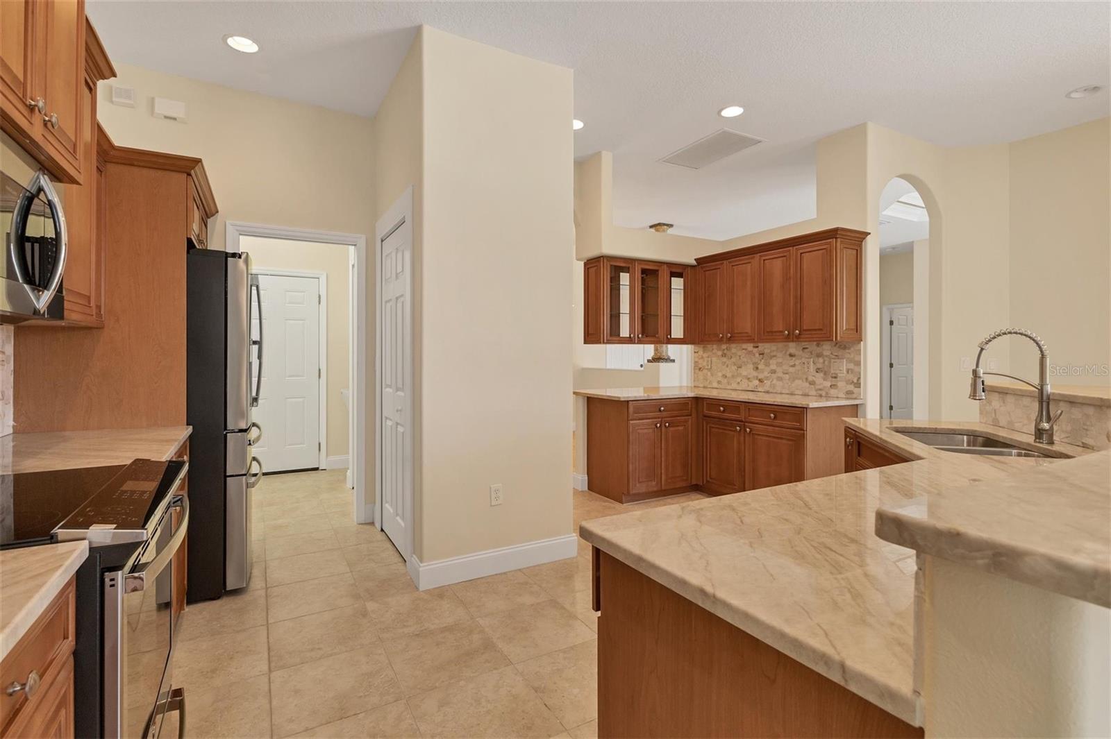 One or more photo(s) has been virtually staged.Beautiful 4 Bedroom 3 Bath Ranch with 3 Car Garage (638 sqft) located on the most Scenic water waterfront lot in Laural Meadows. All new kitchen with Quartz counter tops, stainless steel appliances, all 3 baths remodeled with new vanities, New Luxury vinyl flooring, New Roof 2022, PGT Hurricane (tilt in) Impact Windows, Hurricane Rated Garage Door, and New Central air system 2019. Master Bedroom offers walk-in closet and Spacious Master bath with double vanities along with both bathtub and walking shower. Oversized screened lanai with inground Pool, covered Barbecue area overlooking Peaceful Lake on 2 sides. Laurel Meadows is conveniently near shopping, dining, golf courses, Rothenbach Park, Celery fields for hiking and bird watching and just a short drive Nearby Beaches and Downtown Sarasota. Property is located in flood zone X no flood insurance required. Just move in ... Welcome Home!!!