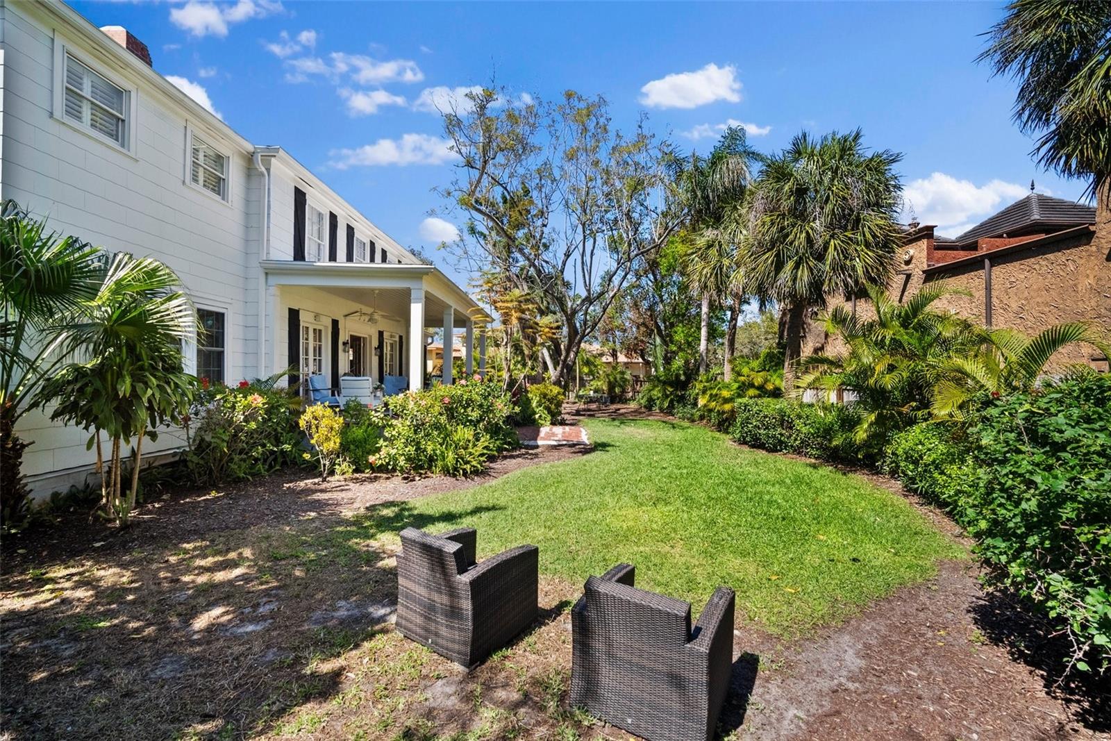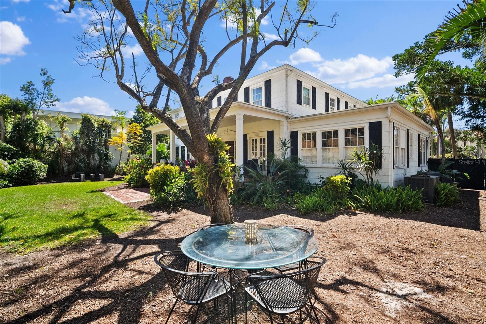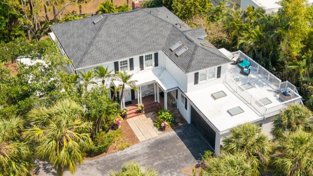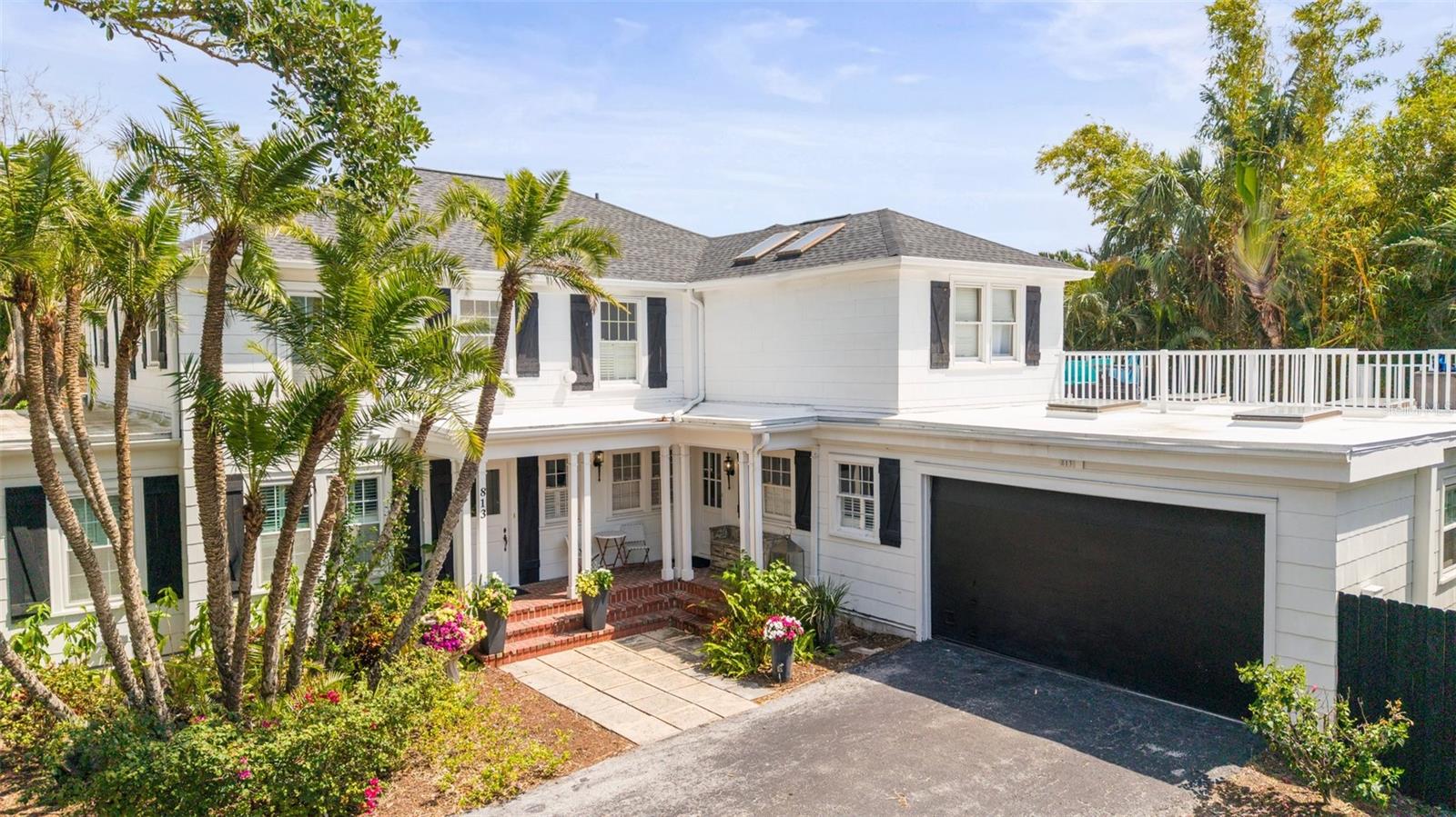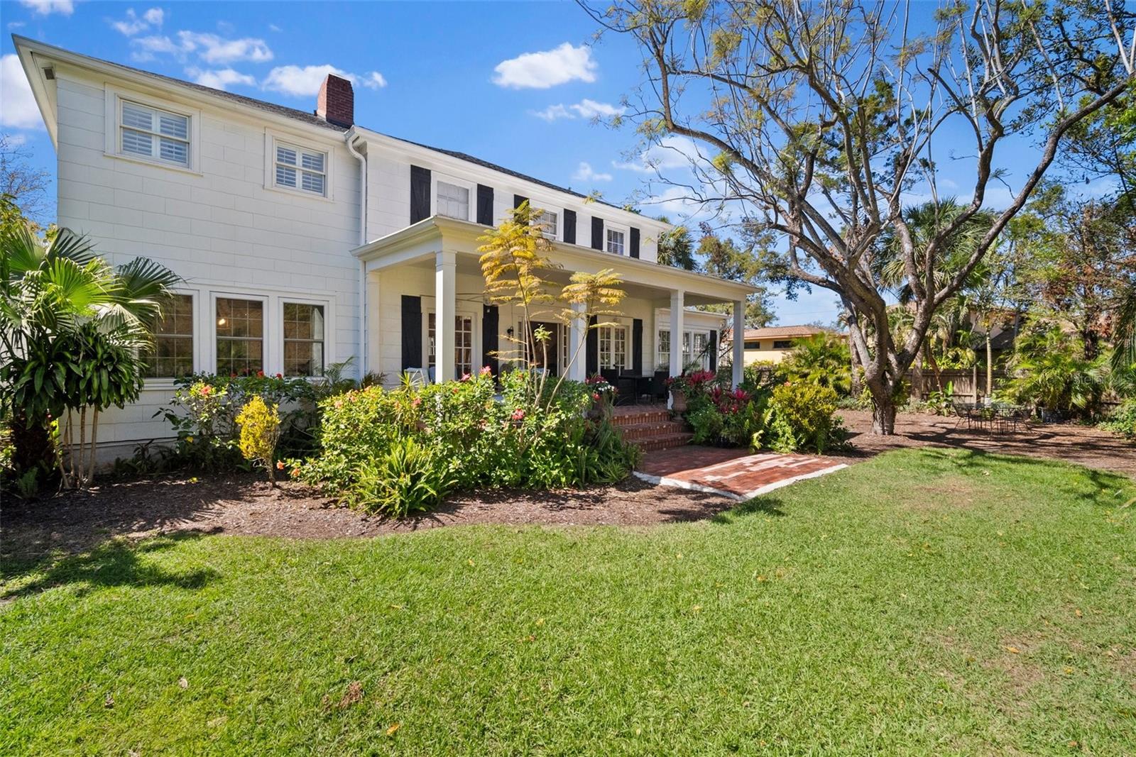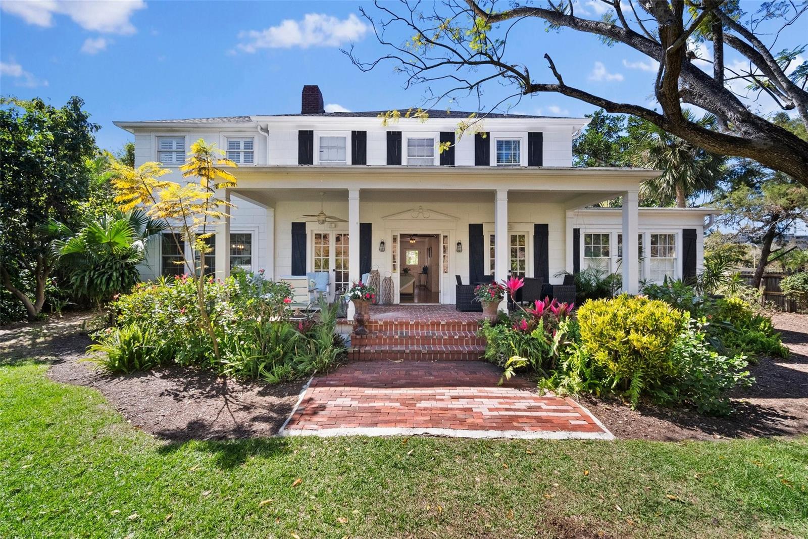 Unique 1936 colonial home in the heart of Sarasota. Located on an expansive corner lot in one of Sarasota’s most desirable neighborhoods, just one block from Selby Gardens and within walking/biking distance to downtown. The main living area features a cozy fireplace and an open flow into the family room, with French doors leading to the first-floor primary suite. The second floor includes two ensuite bedrooms with access to a private guest suite, which has its own entrance, living room, den, and full bath. A ground-floor studio provides the perfect space for an art studio, yoga room, home office, or private retreat. The home offers modern comforts while maintaining its historic charm, with beautiful hardwood floors, an updated kitchen with a dumbwaiter to the second floor, an elevator for convenience, and skylights that fill the space with natural light. Recent upgrades include a new roof in 2024, updated plumbing and electrical, and three separate A/C zones. The oversized garage includes workshop space, and the expansive lot provides room for a pool or additional landscaping. While the home carries a rich history, it is not designated historic, allowing for future customization. Bayfront Park is only steps away, offering stunning sunset views over the John Ringling Bridge. Originally built in 1936 and relocated across the street in the 1980s, the home was placed on a raised cement block foundation to meet flood guidelines while preserving its architectural character. A significant second-floor addition was completed in 2003 and expanded the home to over 4,000 square feet, adding additional living areas, a bathroom, an atelier with skylights, and bringing the total to five bedrooms and four bathrooms. This unique property blends character, space, and an unbeatable location.