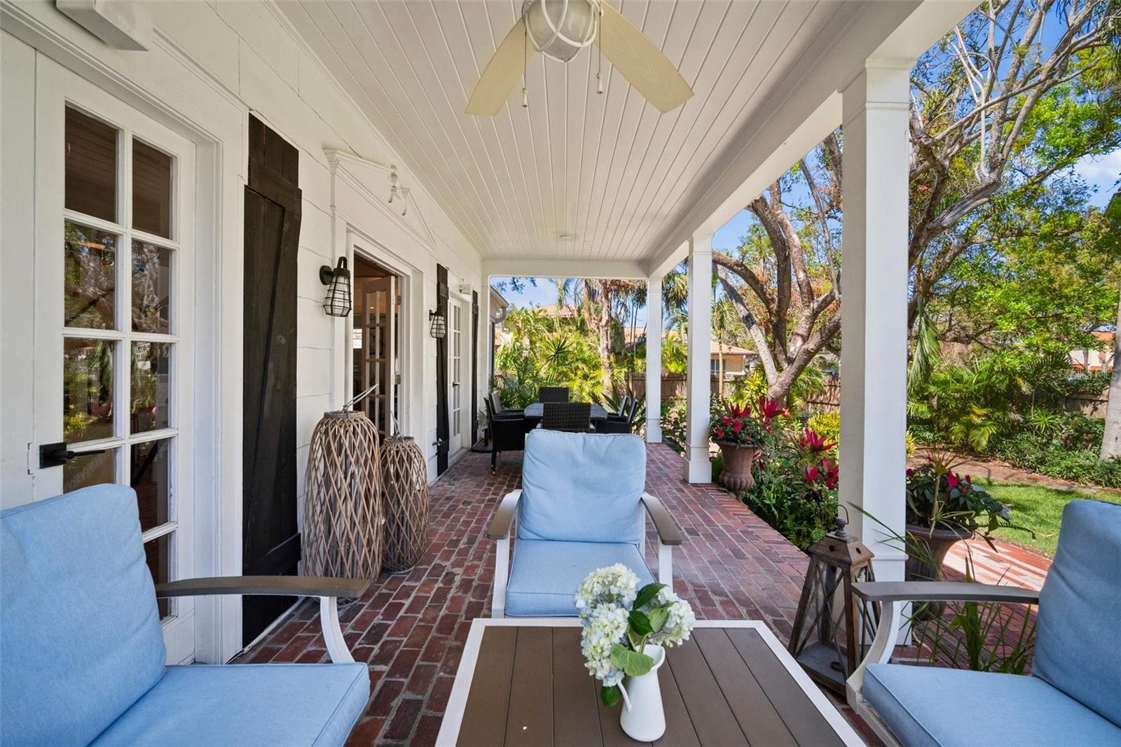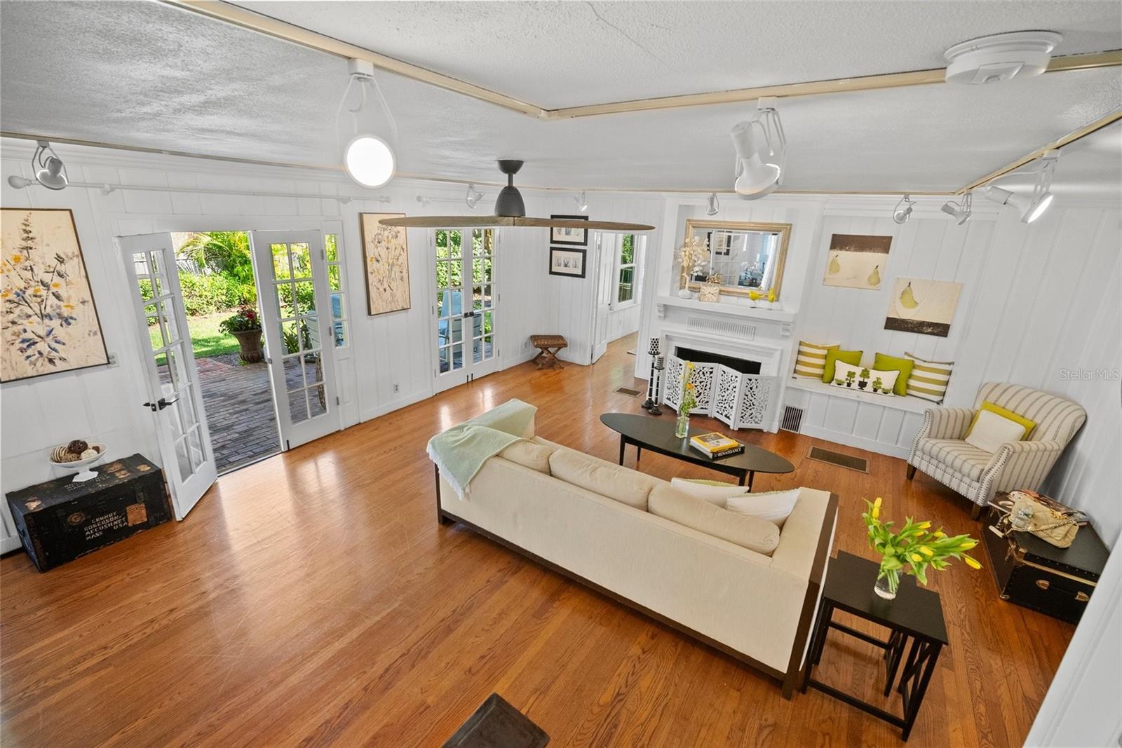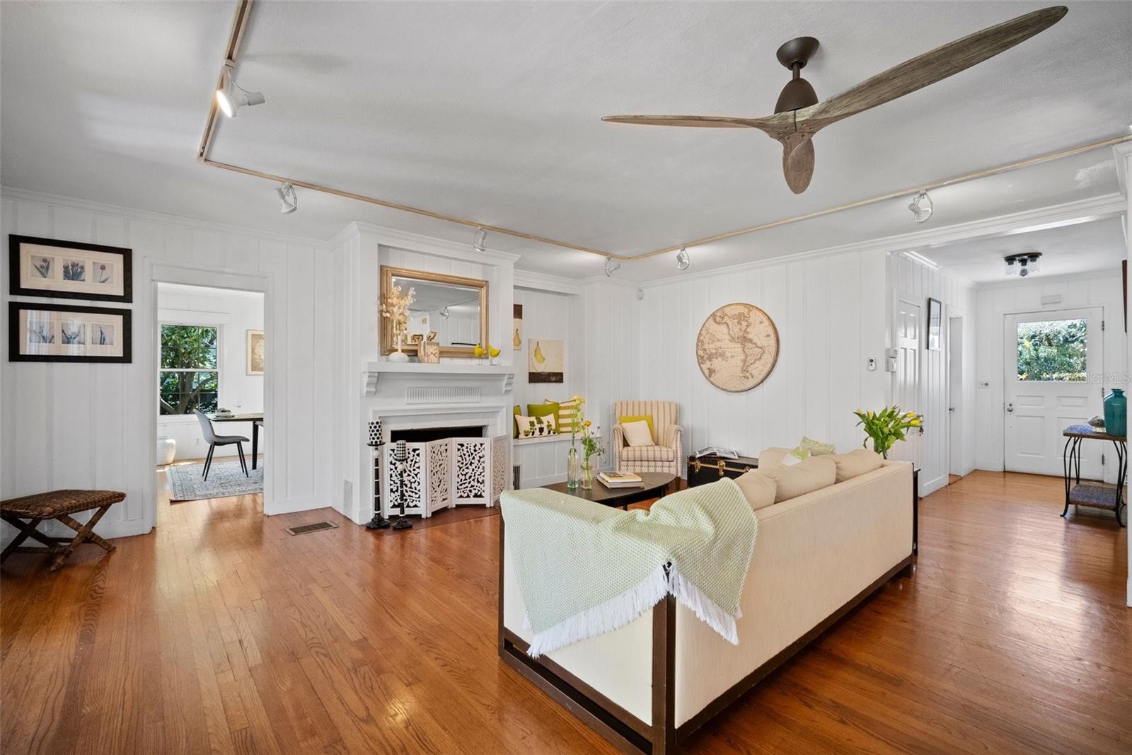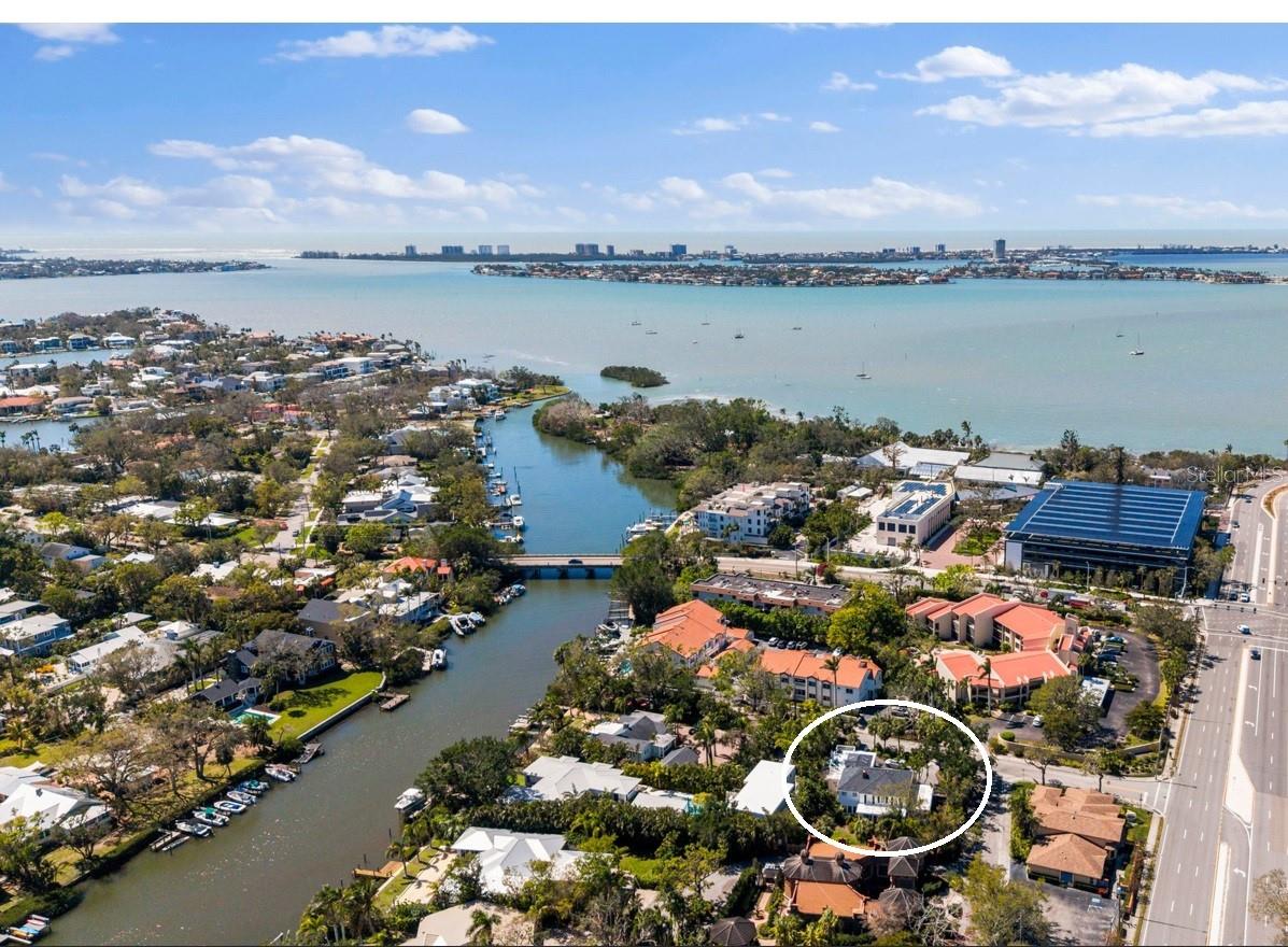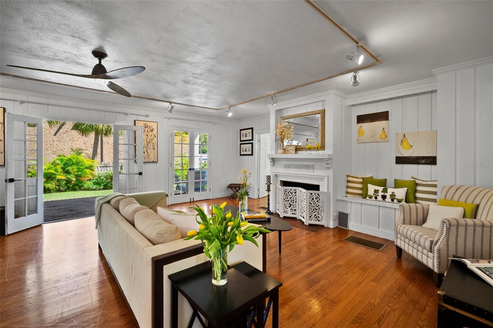 Unique 1936 colonial home in the heart of Sarasota. Located on an expansive corner lot in one of Sarasota’s most desirable neighborhoods, just one block from Selby Gardens and within walking/biking distance to downtown. The main living area features a cozy fireplace and an open flow into the family room, with French doors leading to the first-floor primary suite. The second floor includes two ensuite bedrooms with access to a private guest suite, which has its own entrance, living room, den, and full bath. A ground-floor studio provides the perfect space for an art studio, yoga room, home office, or private retreat. The home offers modern comforts while maintaining its historic charm, with beautiful hardwood floors, an updated kitchen with a dumbwaiter to the second floor, an elevator for convenience, and skylights that fill the space with natural light. Recent upgrades include a new roof in 2024, updated plumbing and electrical, and three separate A/C zones. The oversized garage includes workshop space, and the expansive lot provides room for a pool or additional landscaping. While the home carries a rich history, it is not designated historic, allowing for future customization. Bayfront Park is only steps away, offering stunning sunset views over the John Ringling Bridge. Originally built in 1936 and relocated across the street in the 1980s, the home was placed on a raised cement block foundation to meet flood guidelines while preserving its architectural character. A significant second-floor addition was completed in 2003 and expanded the home to over 4,000 square feet, adding additional living areas, a bathroom, an atelier with skylights, and bringing the total to five bedrooms and four bathrooms. This unique property blends character, space, and an unbeatable location.