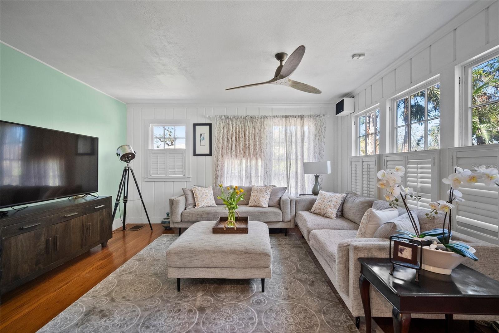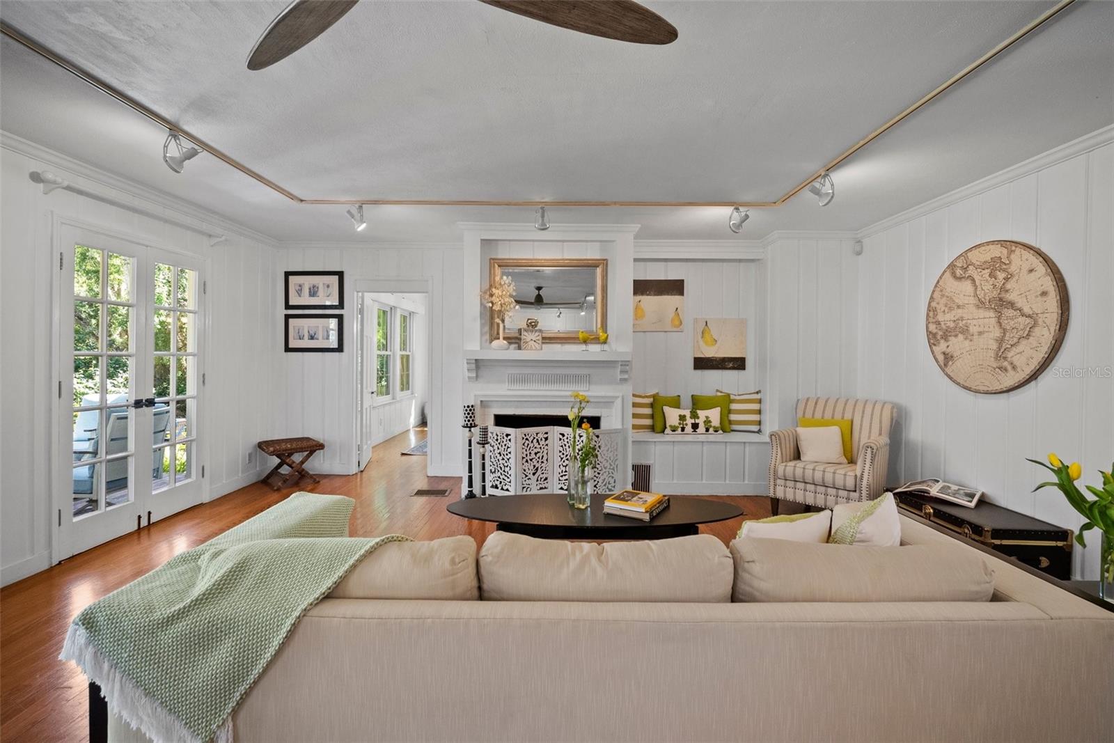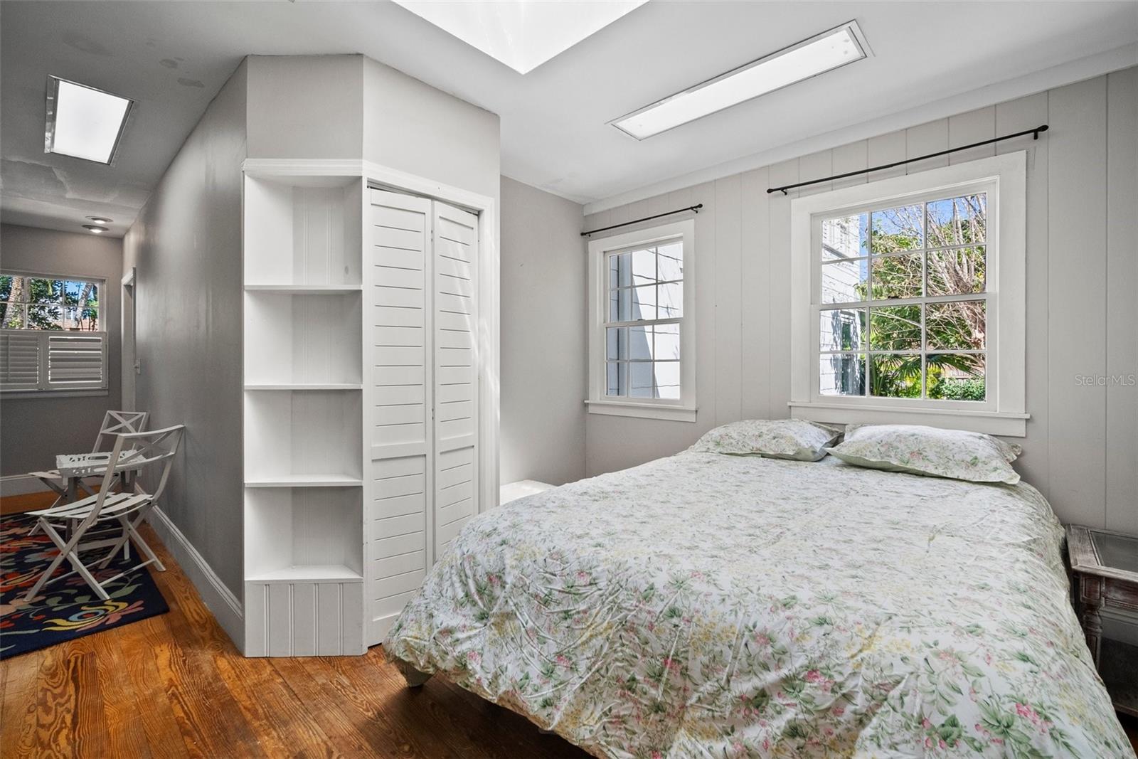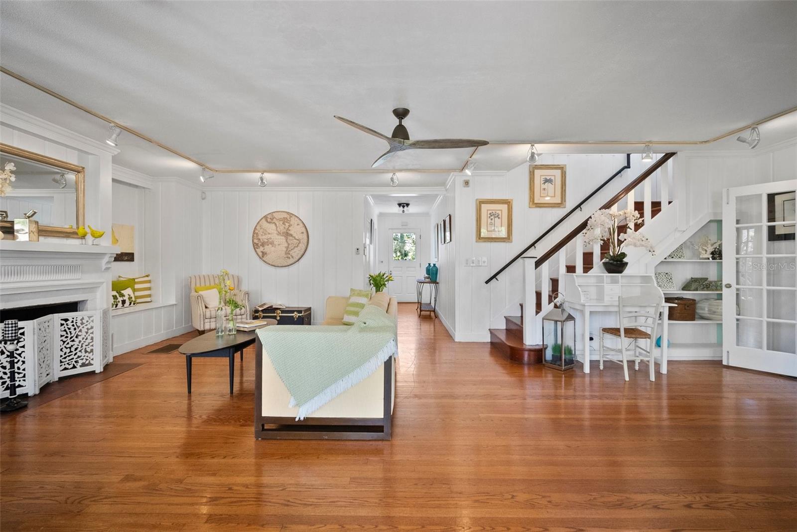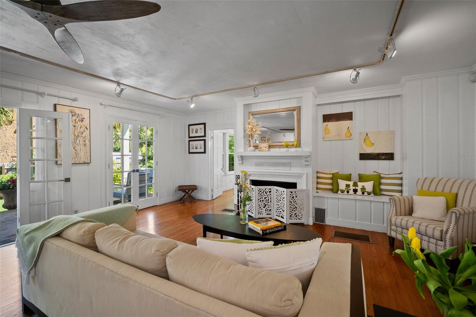 Unique 1936 colonial home in the heart of Sarasota. Located on an expansive corner lot in one of Sarasota’s most desirable neighborhoods, just one block from Selby Gardens and within walking/biking distance to downtown. The main living area features a cozy fireplace and an open flow into the family room, with French doors leading to the first-floor primary suite. The second floor includes two ensuite bedrooms with access to a private guest suite, which has its own entrance, living room, den, and full bath. A ground-floor studio provides the perfect space for an art studio, yoga room, home office, or private retreat. The home offers modern comforts while maintaining its historic charm, with beautiful hardwood floors, an updated kitchen with a dumbwaiter to the second floor, an elevator for convenience, and skylights that fill the space with natural light. Recent upgrades include a new roof in 2024, updated plumbing and electrical, and three separate A/C zones. The oversized garage includes workshop space, and the expansive lot provides room for a pool or additional landscaping. While the home carries a rich history, it is not designated historic, allowing for future customization. Bayfront Park is only steps away, offering stunning sunset views over the John Ringling Bridge. Originally built in 1936 and relocated across the street in the 1980s, the home was placed on a raised cement block foundation to meet flood guidelines while preserving its architectural character. A significant second-floor addition was completed in 2003 and expanded the home to over 4,000 square feet, adding additional living areas, a bathroom, an atelier with skylights, and bringing the total to five bedrooms and four bathrooms. This unique property blends character, space, and an unbeatable location.