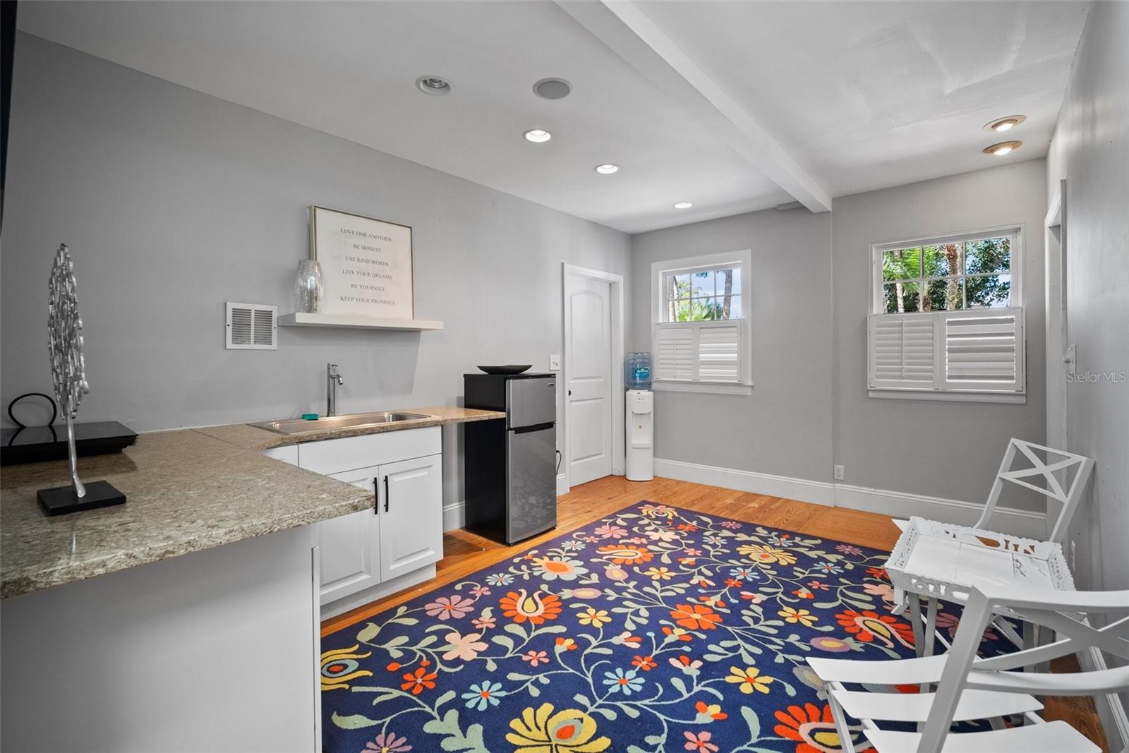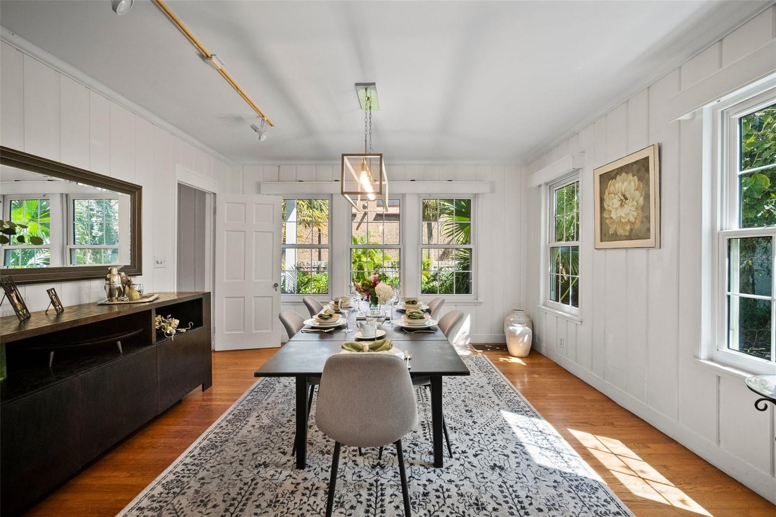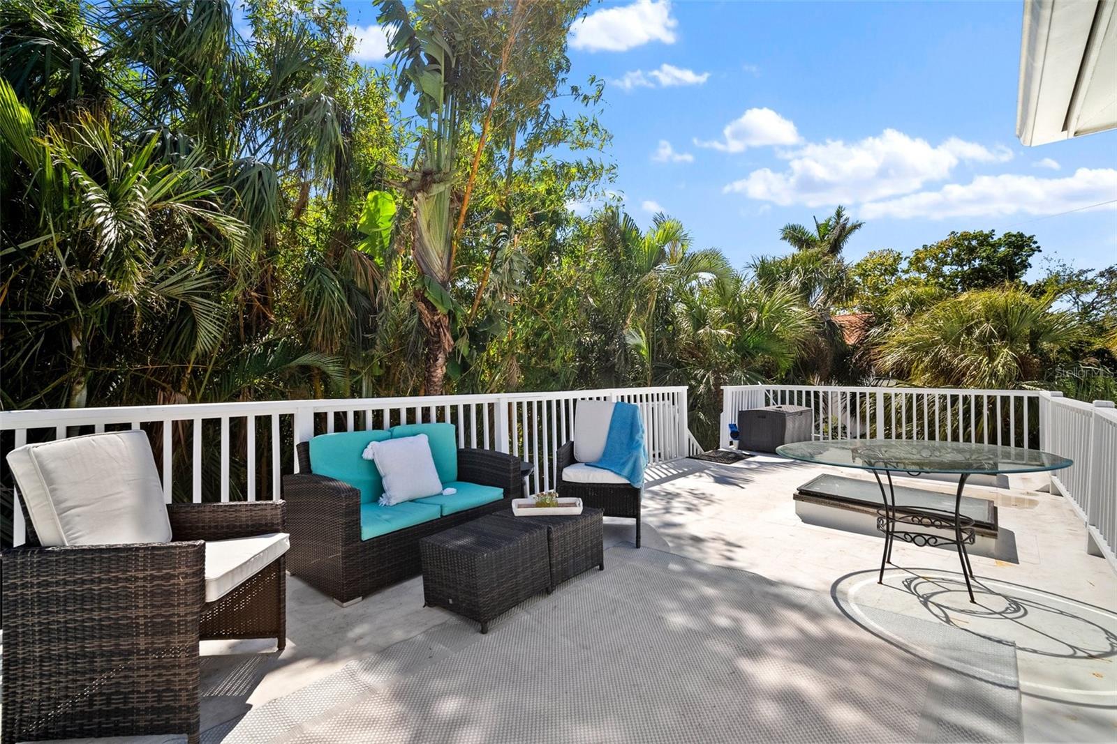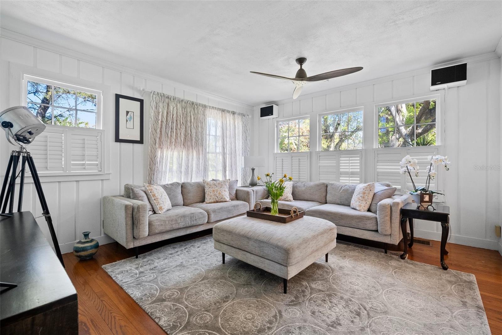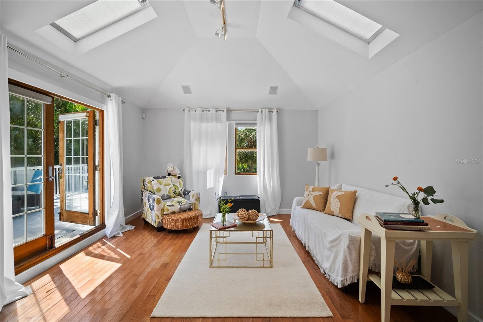 Unique 1936 colonial home in the heart of Sarasota. Located on an expansive corner lot in one of Sarasota’s most desirable neighborhoods, just one block from Selby Gardens and within walking/biking distance to downtown. The main living area features a cozy fireplace and an open flow into the family room, with French doors leading to the first-floor primary suite. The second floor includes two ensuite bedrooms with access to a private guest suite, which has its own entrance, living room, den, and full bath. A ground-floor studio provides the perfect space for an art studio, yoga room, home office, or private retreat. The home offers modern comforts while maintaining its historic charm, with beautiful hardwood floors, an updated kitchen with a dumbwaiter to the second floor, an elevator for convenience, and skylights that fill the space with natural light. Recent upgrades include a new roof in 2024, updated plumbing and electrical, and three separate A/C zones. The oversized garage includes workshop space, and the expansive lot provides room for a pool or additional landscaping. While the home carries a rich history, it is not designated historic, allowing for future customization. Bayfront Park is only steps away, offering stunning sunset views over the John Ringling Bridge. Originally built in 1936 and relocated across the street in the 1980s, the home was placed on a raised cement block foundation to meet flood guidelines while preserving its architectural character. A significant second-floor addition was completed in 2003 and expanded the home to over 4,000 square feet, adding additional living areas, a bathroom, an atelier with skylights, and bringing the total to five bedrooms and four bathrooms. This unique property blends character, space, and an unbeatable location.