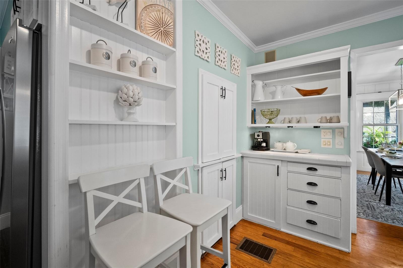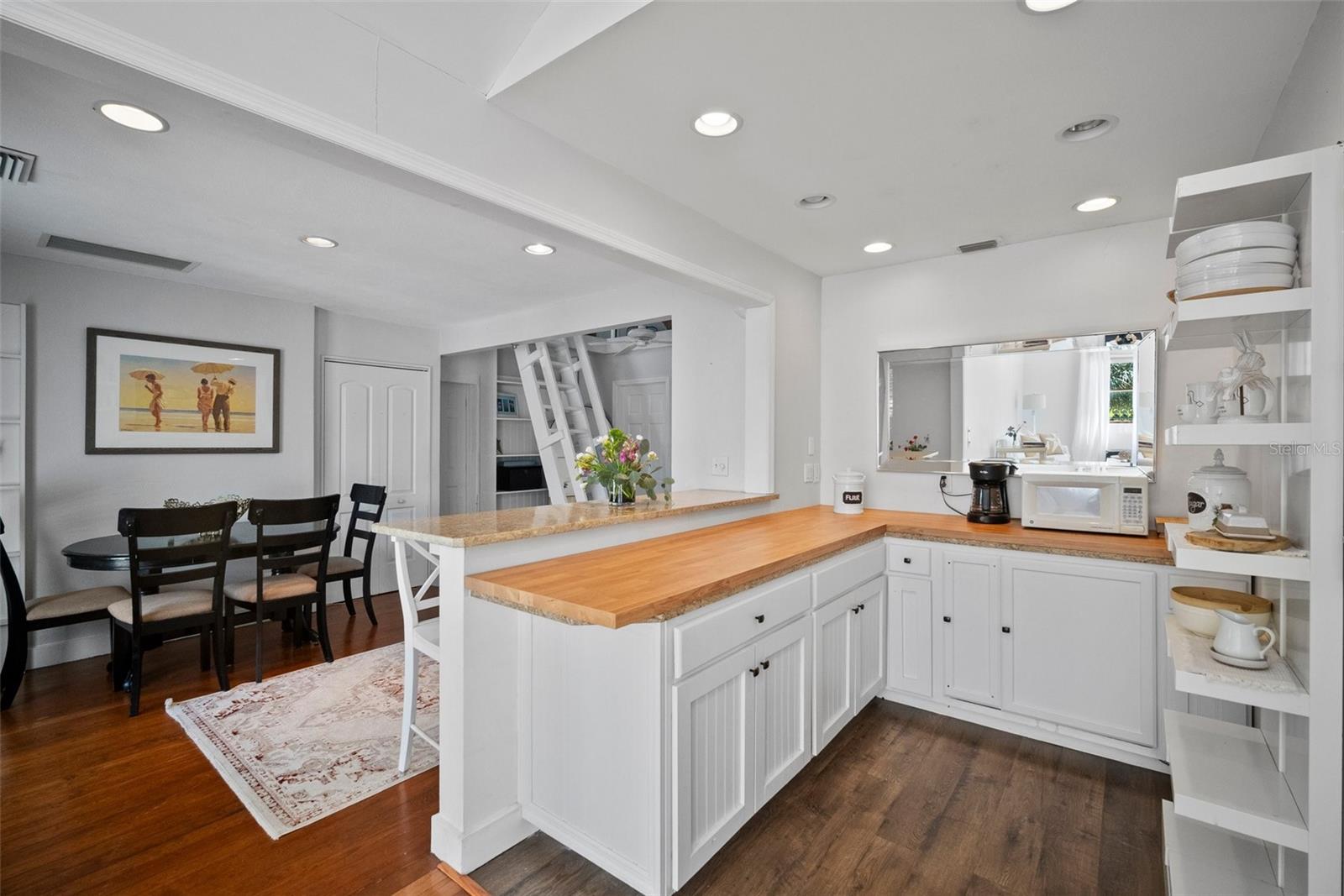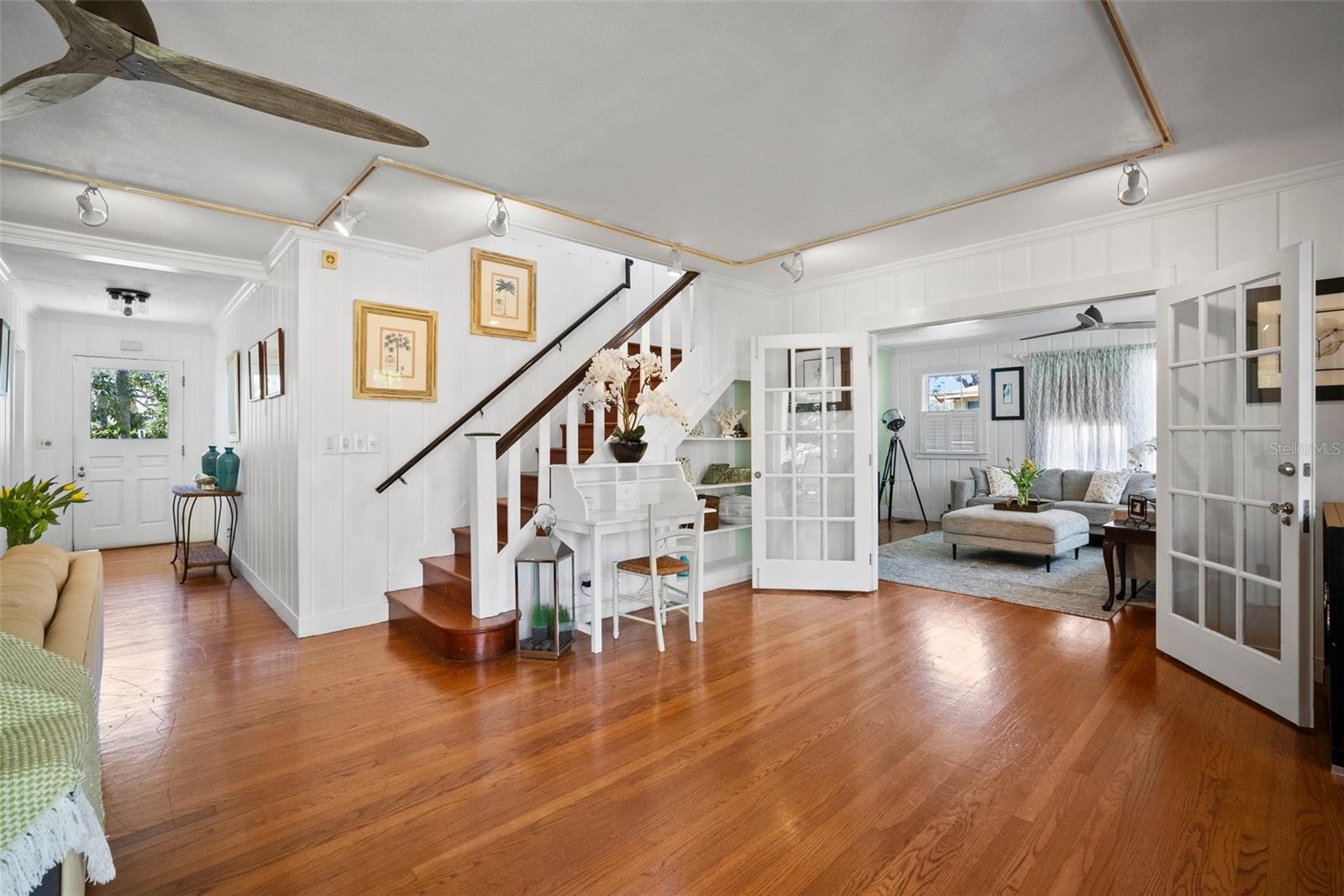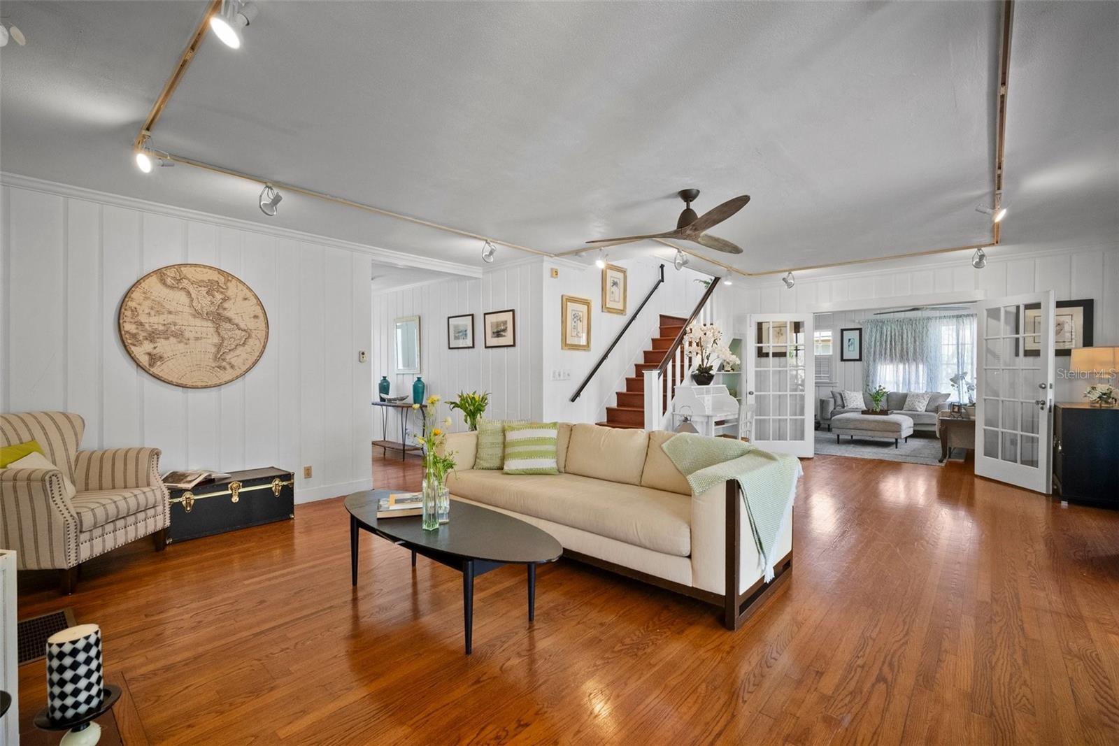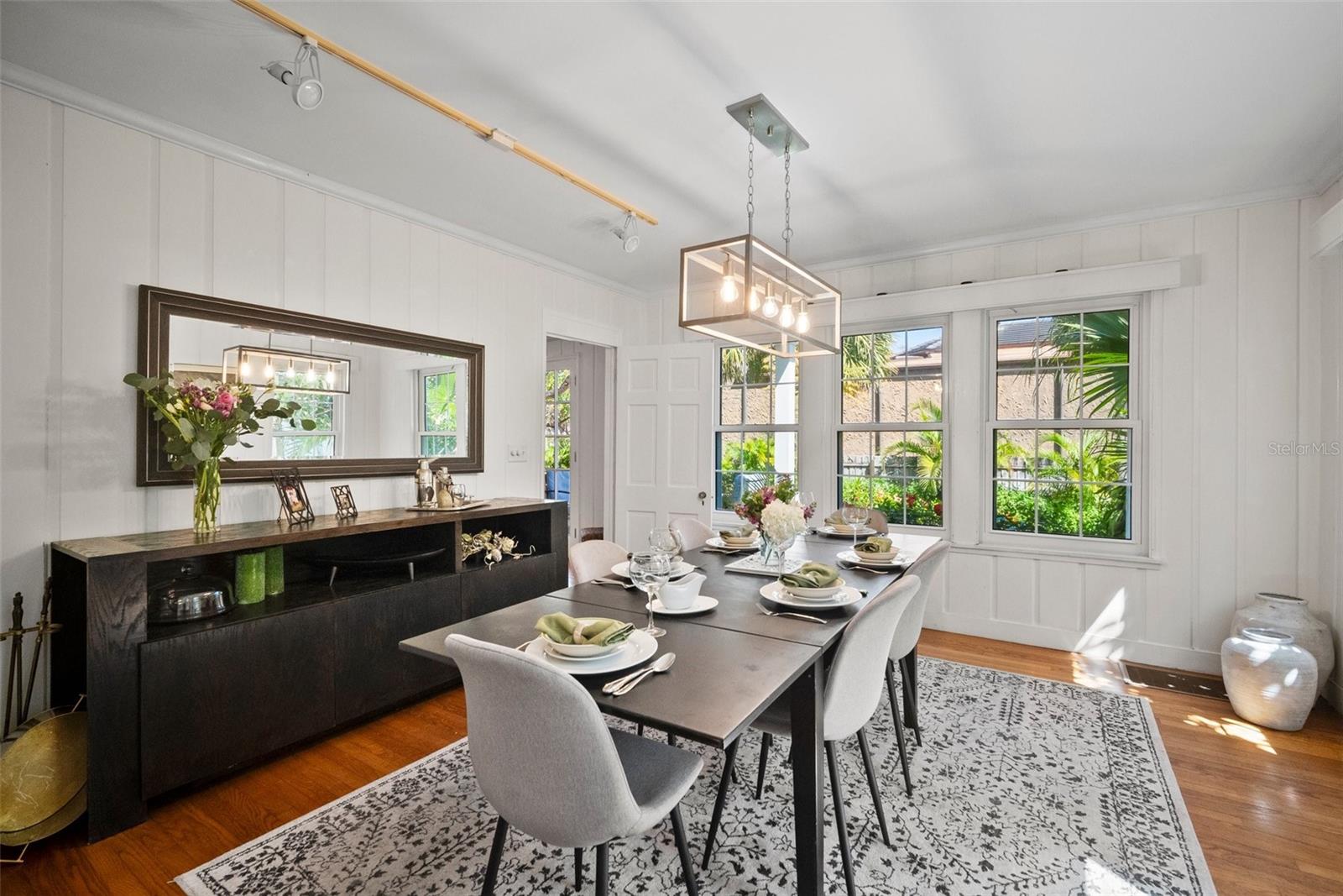 Unique 1936 colonial home in the heart of Sarasota. Located on an expansive corner lot in one of Sarasota’s most desirable neighborhoods, just one block from Selby Gardens and within walking/biking distance to downtown. The main living area features a cozy fireplace and an open flow into the family room, with French doors leading to the first-floor primary suite. The second floor includes two ensuite bedrooms with access to a private guest suite, which has its own entrance, living room, den, and full bath. A ground-floor studio provides the perfect space for an art studio, yoga room, home office, or private retreat. The home offers modern comforts while maintaining its historic charm, with beautiful hardwood floors, an updated kitchen with a dumbwaiter to the second floor, an elevator for convenience, and skylights that fill the space with natural light. Recent upgrades include a new roof in 2024, updated plumbing and electrical, and three separate A/C zones. The oversized garage includes workshop space, and the expansive lot provides room for a pool or additional landscaping. While the home carries a rich history, it is not designated historic, allowing for future customization. Bayfront Park is only steps away, offering stunning sunset views over the John Ringling Bridge. Originally built in 1936 and relocated across the street in the 1980s, the home was placed on a raised cement block foundation to meet flood guidelines while preserving its architectural character. A significant second-floor addition was completed in 2003 and expanded the home to over 4,000 square feet, adding additional living areas, a bathroom, an atelier with skylights, and bringing the total to five bedrooms and four bathrooms. This unique property blends character, space, and an unbeatable location.