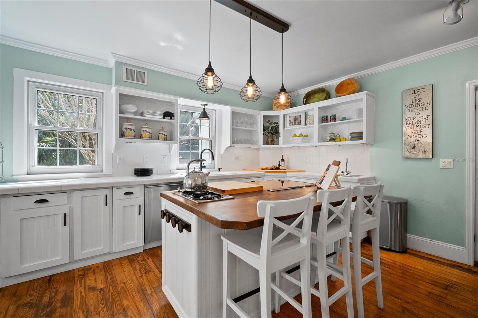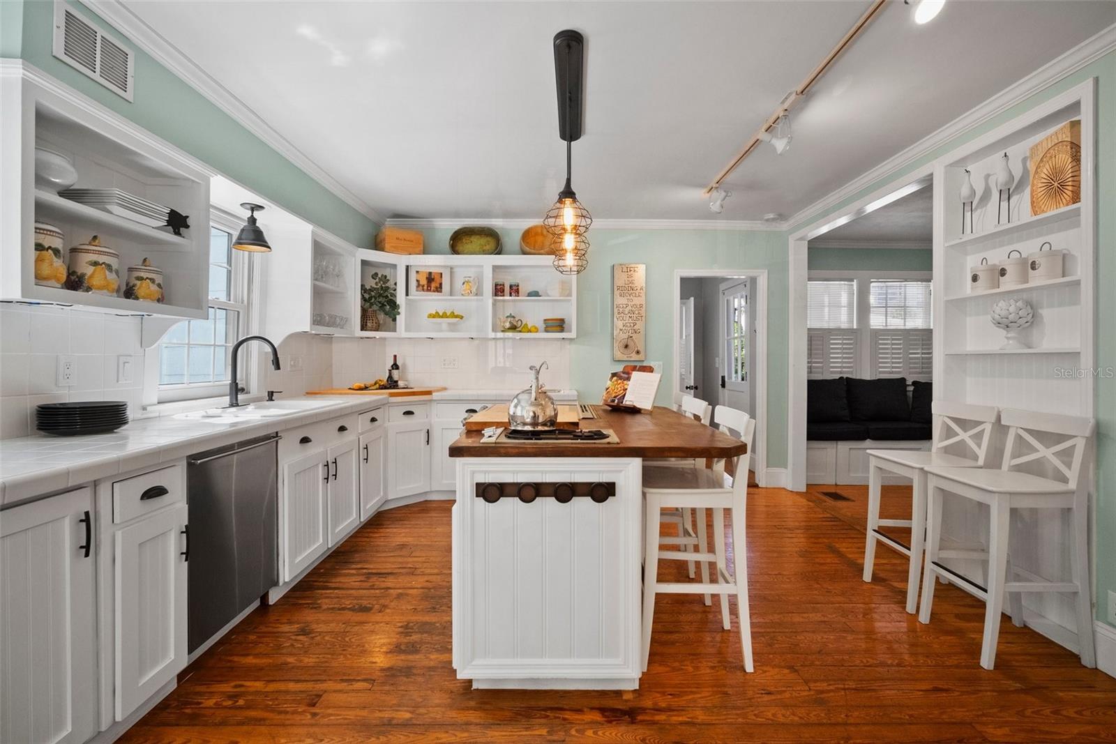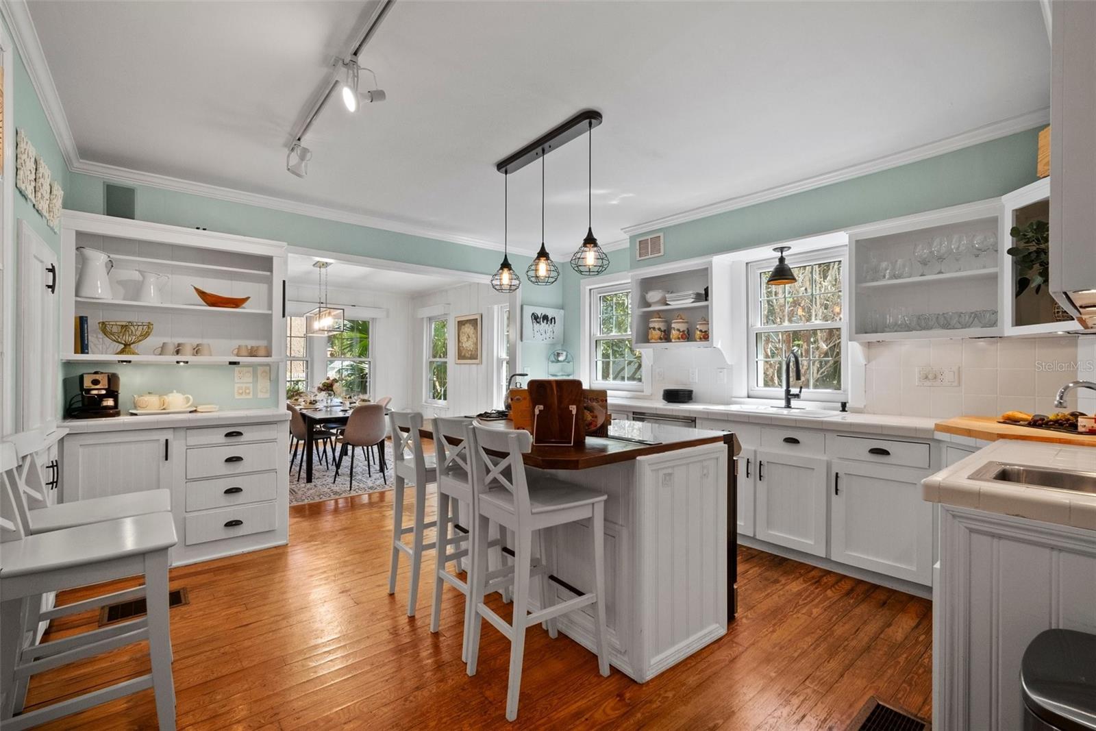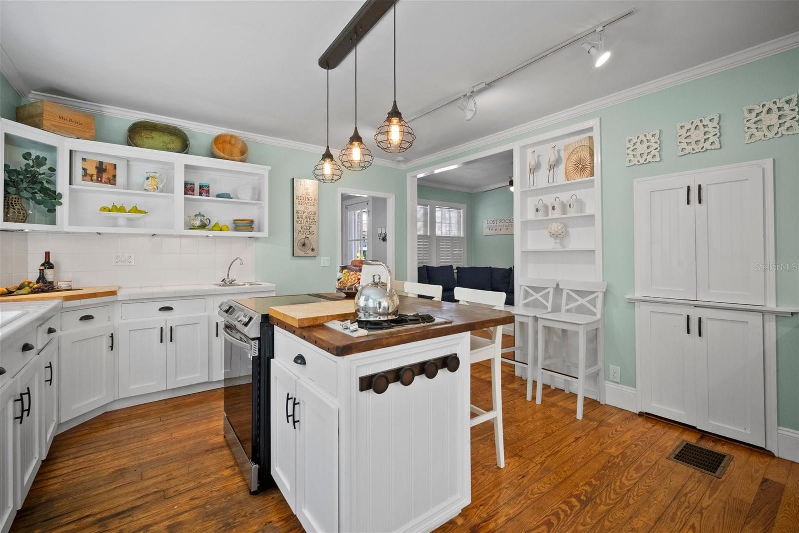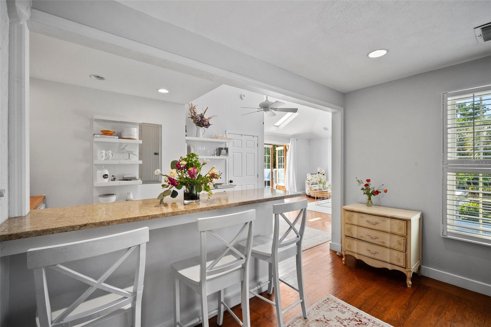 Unique 1936 colonial home in the heart of Sarasota. Located on an expansive corner lot in one of Sarasota’s most desirable neighborhoods, just one block from Selby Gardens and within walking/biking distance to downtown. The main living area features a cozy fireplace and an open flow into the family room, with French doors leading to the first-floor primary suite. The second floor includes two ensuite bedrooms with access to a private guest suite, which has its own entrance, living room, den, and full bath. A ground-floor studio provides the perfect space for an art studio, yoga room, home office, or private retreat. The home offers modern comforts while maintaining its historic charm, with beautiful hardwood floors, an updated kitchen with a dumbwaiter to the second floor, an elevator for convenience, and skylights that fill the space with natural light. Recent upgrades include a new roof in 2024, updated plumbing and electrical, and three separate A/C zones. The oversized garage includes workshop space, and the expansive lot provides room for a pool or additional landscaping. While the home carries a rich history, it is not designated historic, allowing for future customization. Bayfront Park is only steps away, offering stunning sunset views over the John Ringling Bridge. Originally built in 1936 and relocated across the street in the 1980s, the home was placed on a raised cement block foundation to meet flood guidelines while preserving its architectural character. A significant second-floor addition was completed in 2003 and expanded the home to over 4,000 square feet, adding additional living areas, a bathroom, an atelier with skylights, and bringing the total to five bedrooms and four bathrooms. This unique property blends character, space, and an unbeatable location.