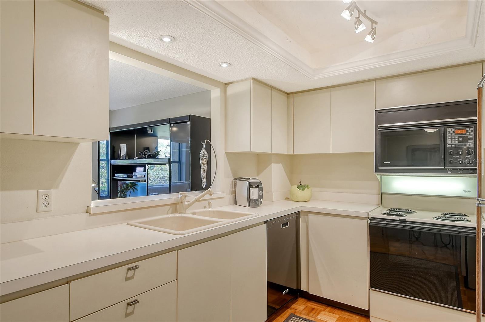 This residence is being sold furnished (some items excluded). Open floor plan. (2070 Sq feet; builders floor plan), two spacious bedrooms, 2 ½ baths, office area, laundry, large enclosed Lanai. Upgrades include new flooring and newer air conditioner. Enjoy picturesque Bay views to watch the sunrise and across the street you can watch sunsets on the Gulf of Mexico. This larger floor plan has full Bay views. Residents of Island Reef enjoy boat docks (lifts allowed), beach, two heated pools, tennis, pickleball, two fitness rooms, saunas, shuffleboard courts, billiards, library, clubhouse, social room, gas grills, bicycle and kayak storage. The carport is just a few steps from the front door. Guest Parking. Close to two of Siesta Key’s popular restaurants. Free trolley to Siesta Village. Monthly Rentals (8 leases a year), pet friendly (30 lbs.), on-site management and rental program.