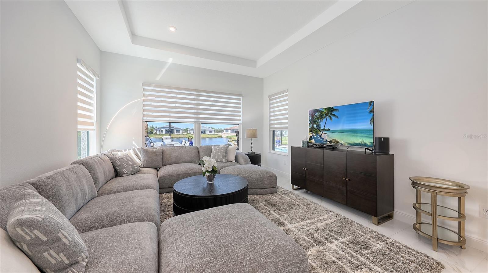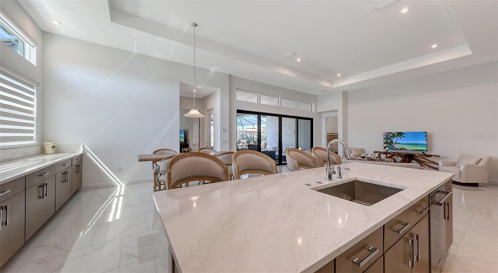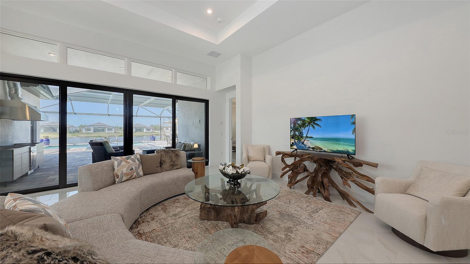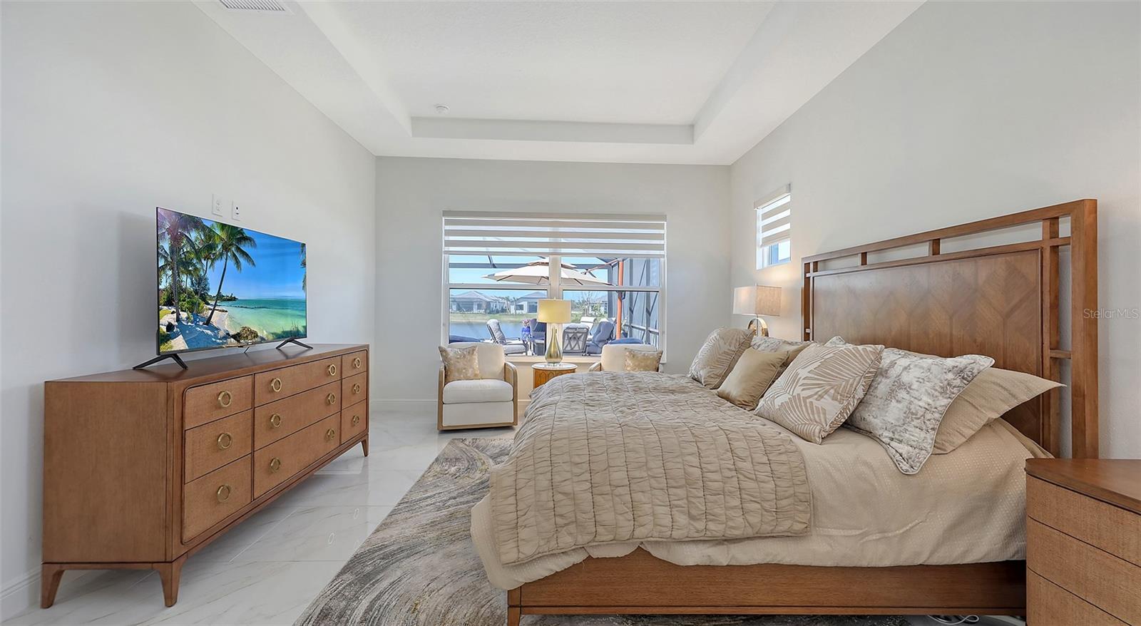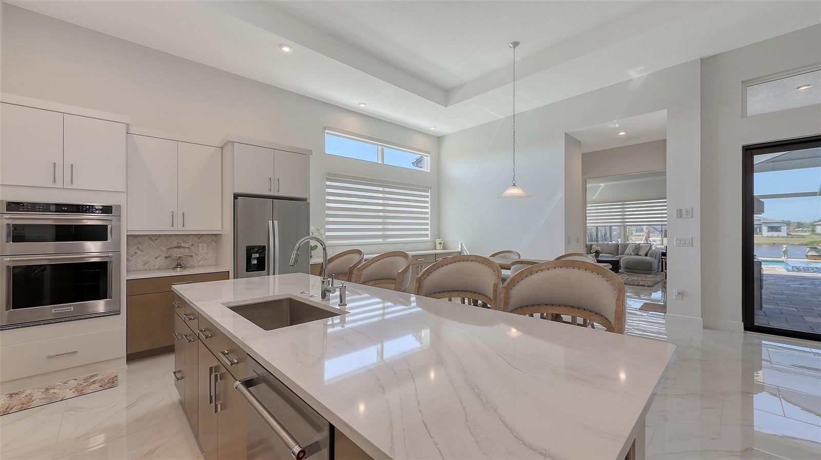 Welcome to Artistry, an exclusive, resort-style community, where luxury meets tranquility. Nestled behind the gates, you'll discover this stunning Picasso model home, newly completed by Cardel Homes. This exceptional residence is set on a premium 0.44-acre lot, offering breathtaking water views and ample space between neighboring homes. As you step inside, you are greeted by soaring cathedral tray ceilings, exquisite 24 inch porcelain tile, and an expansive, open-concept floor plan that is both bright and inviting. The neutral color palette throughout the home enhances the sense of space and light. Designed for the discerning buyer, the gourmet kitchen is a true showstopper. Featuring top-of-the line appliances, a vast island, quartz countertops, and an additional large buffet with cabinetry, it's the perfect setting for culinary enthusiasts. A built-in bar with a large wine fridge adds a touch of elegance and functionality. The kitchen seamlessly flows into the spacious Great Room, ideal for entertaining guests. High-impact windows throughout the residence with sleek motorized window shades on each window enhance the modern aesthetic. The generously sized primary suite offers a serene retreat with a tray ceiling and picturesque water views. The en-suite bathroom is designed for relaxation, featuring an oversized shower with an upgraded glass enclosure, listellos design touches, dual vanities, additional linen cabinetry, and two large walk-in closets. Each of the additional bedrooms comes with a private bathroom and custom wood shelving in the closets, ensuring both luxury and practicality. Step outside to the extra large expansive lanai, where you'll be captivated by the spa and infinity view of pool and stunning water views. The space is perfect for both relaxation and entertaining, featuring elegant oversized brick pavers and a custom outdoor kitchen area includes faucet sink, grill, Refrigerator, vented hood, creating your own personal paradise. Additional features include a tankless water heater, radiant barrier roofing, upgraded Polymaster foam insulation in the attic, a garage plumbed for a sink, ceiling pre wired for speakers, and for a security system-demonstrating that no detail has been overlooked. Artistry's community amenities are equally impressive, offering a clubhouse, pool, fitness center, playground, Pickleball, and more. Located just minutes from fine dining, shopping, and a short drive to UTC Mall and downtown, you're never far from everything you need. Whether you're enjoying a sunset cocktail on your lanai or playing a round of golf at one of the nearby courses, this home truly has it all. Welcome home to Artistry, where elegance and comfort meet.