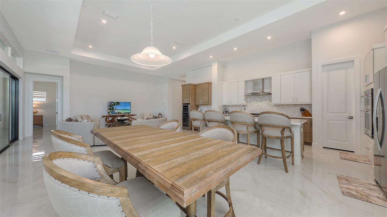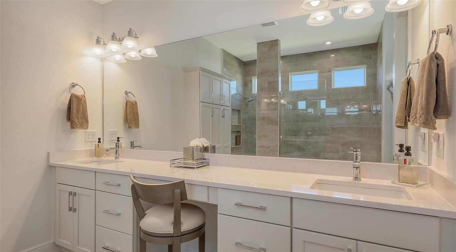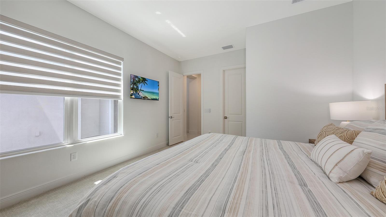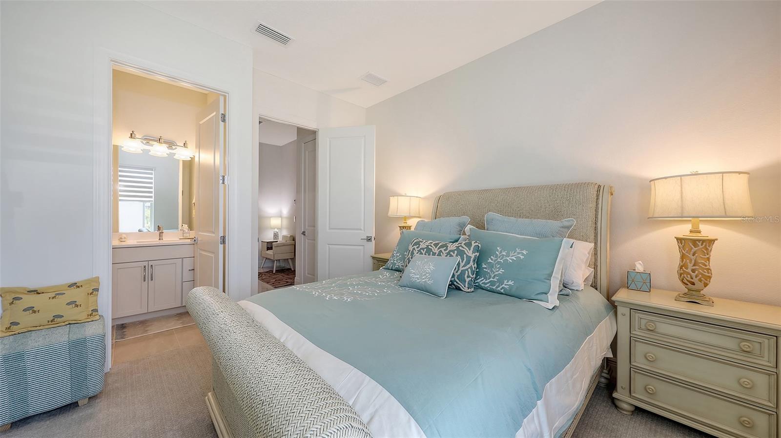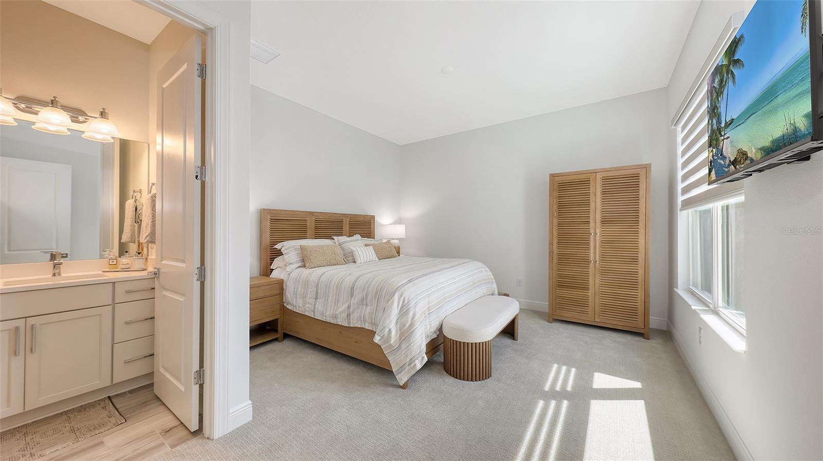 Welcome to Artistry, an exclusive, resort-style community, where luxury meets tranquility. Nestled behind the gates, you'll discover this stunning Picasso model home, newly completed by Cardel Homes. This exceptional residence is set on a premium 0.44-acre lot, offering breathtaking water views and ample space between neighboring homes. As you step inside, you are greeted by soaring cathedral tray ceilings, exquisite 24 inch porcelain tile, and an expansive, open-concept floor plan that is both bright and inviting. The neutral color palette throughout the home enhances the sense of space and light. Designed for the discerning buyer, the gourmet kitchen is a true showstopper. Featuring top-of-the line appliances, a vast island, quartz countertops, and an additional large buffet with cabinetry, it's the perfect setting for culinary enthusiasts. A built-in bar with a large wine fridge adds a touch of elegance and functionality. The kitchen seamlessly flows into the spacious Great Room, ideal for entertaining guests. High-impact windows throughout the residence with sleek motorized window shades on each window enhance the modern aesthetic. The generously sized primary suite offers a serene retreat with a tray ceiling and picturesque water views. The en-suite bathroom is designed for relaxation, featuring an oversized shower with an upgraded glass enclosure, listellos design touches, dual vanities, additional linen cabinetry, and two large walk-in closets. Each of the additional bedrooms comes with a private bathroom and custom wood shelving in the closets, ensuring both luxury and practicality. Step outside to the extra large expansive lanai, where you'll be captivated by the spa and infinity view of pool and stunning water views. The space is perfect for both relaxation and entertaining, featuring elegant oversized brick pavers and a custom outdoor kitchen area includes faucet sink, grill, Refrigerator, vented hood, creating your own personal paradise. Additional features include a tankless water heater, radiant barrier roofing, upgraded Polymaster foam insulation in the attic, a garage plumbed for a sink, ceiling pre wired for speakers, and for a security system-demonstrating that no detail has been overlooked. Artistry's community amenities are equally impressive, offering a clubhouse, pool, fitness center, playground, Pickleball, and more. Located just minutes from fine dining, shopping, and a short drive to UTC Mall and downtown, you're never far from everything you need. Whether you're enjoying a sunset cocktail on your lanai or playing a round of golf at one of the nearby courses, this home truly has it all. Welcome home to Artistry, where elegance and comfort meet.