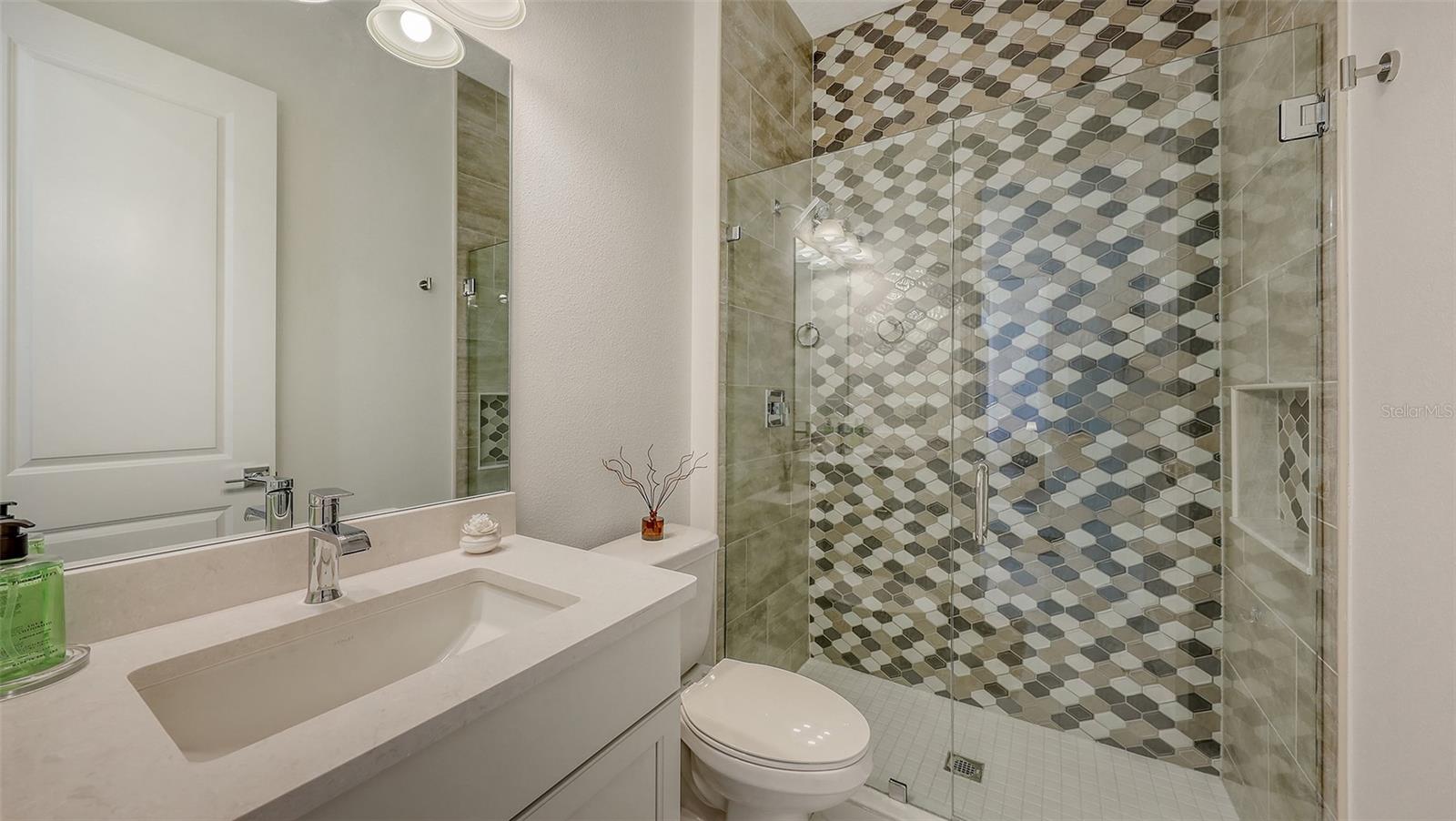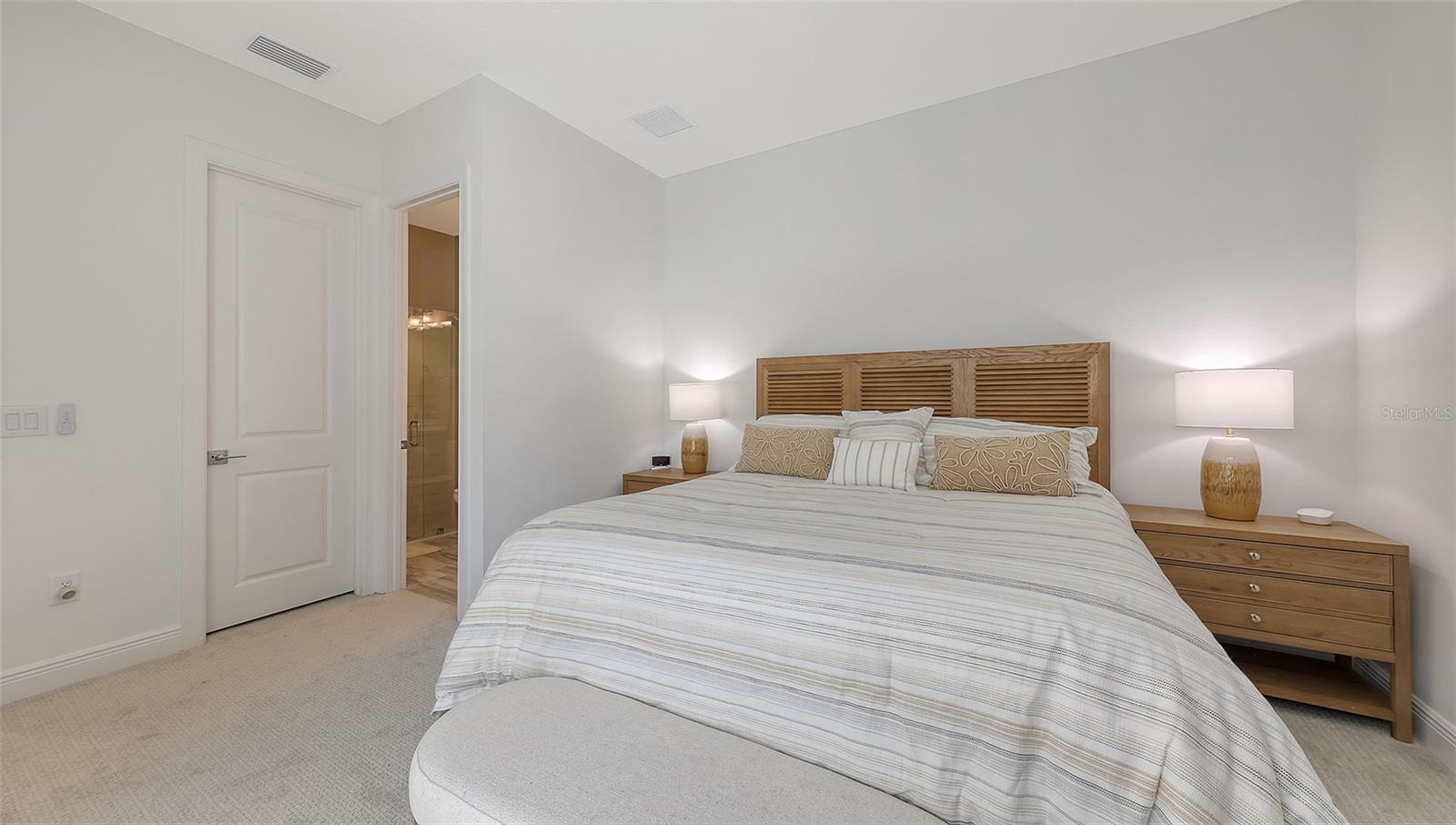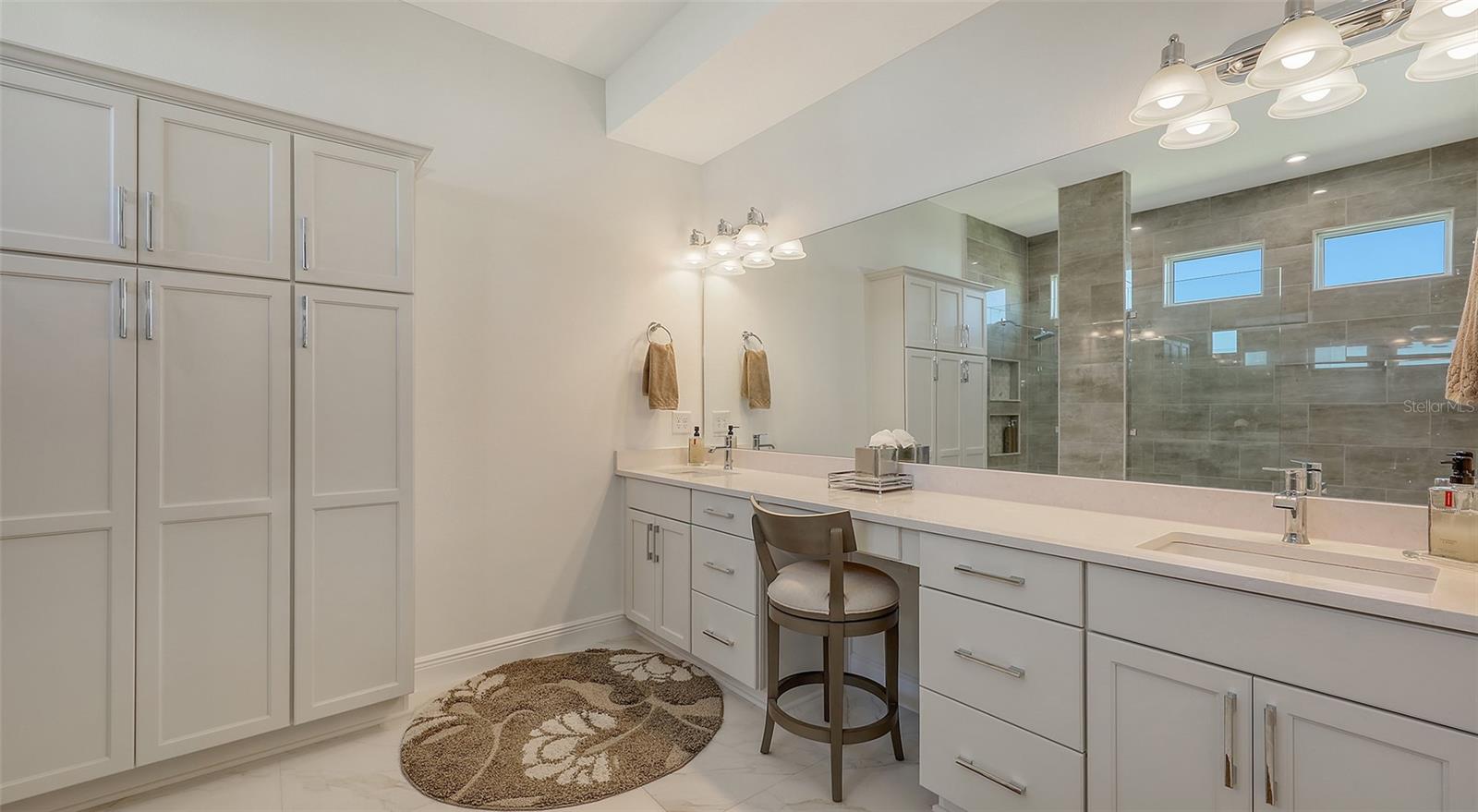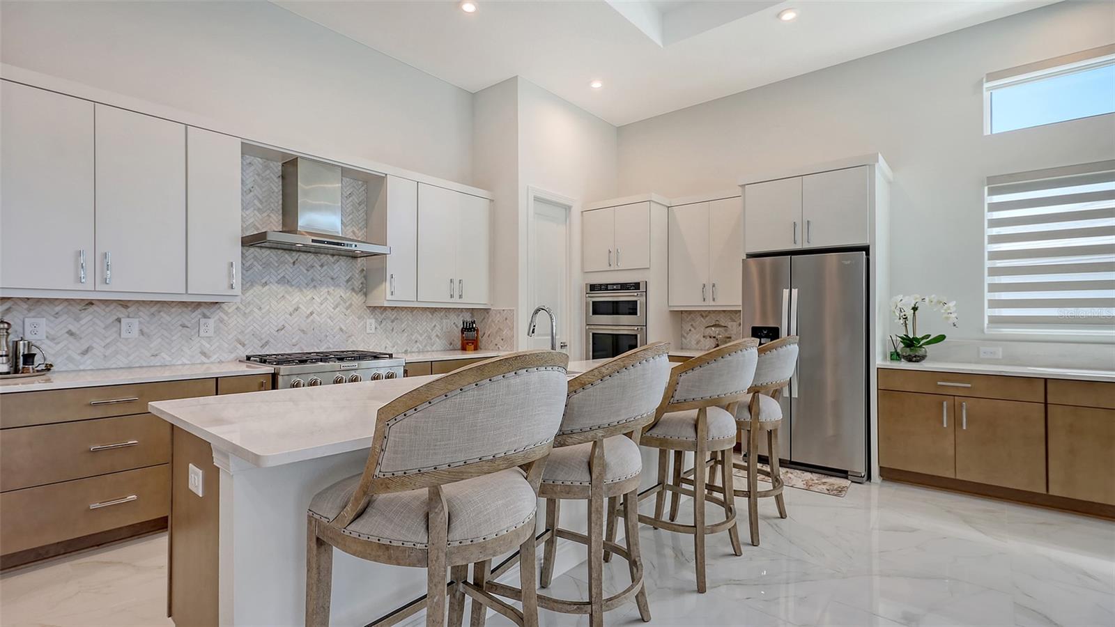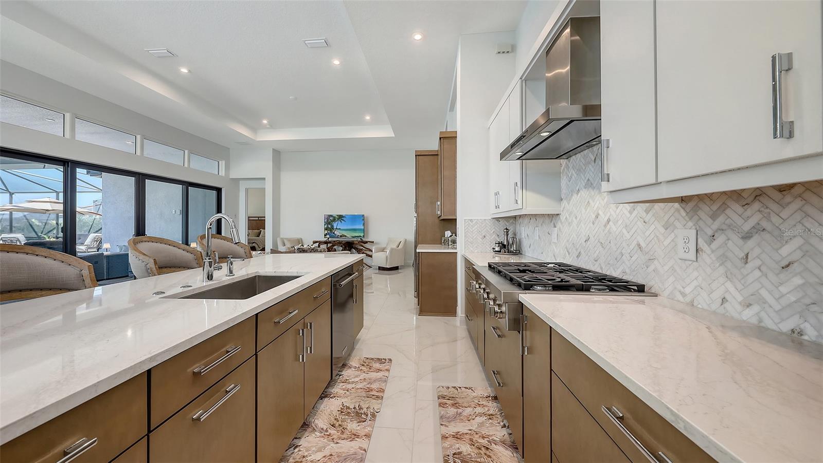Welcome to Artistry, an exclusive, resort-style community, where luxury meets tranquility. Nestled behind the gates, you'll discover this stunning Picasso model home, newly completed by Cardel Homes. This exceptional residence is set on a premium 0.44-acre lot, offering breathtaking water views and ample space between neighboring homes. As you step inside, you are greeted by soaring cathedral tray ceilings, exquisite 24 inch porcelain tile, and an expansive, open-concept floor plan that is both bright and inviting. The neutral color palette throughout the home enhances the sense of space and light. Designed for the discerning buyer, the gourmet kitchen is a true showstopper. Featuring top-of-the line appliances, a vast island, quartz countertops, and an additional large buffet with cabinetry, it's the perfect setting for culinary enthusiasts. A built-in bar with a large wine fridge adds a touch of elegance and functionality. The kitchen seamlessly flows into the spacious Great Room, ideal for entertaining guests. High-impact windows throughout the residence with sleek motorized window shades on each window enhance the modern aesthetic. The generously sized primary suite offers a serene retreat with a tray ceiling and picturesque water views. The en-suite bathroom is designed for relaxation, featuring an oversized shower with an upgraded glass enclosure, listellos design touches, dual vanities, additional linen cabinetry, and two large walk-in closets. Each of the additional bedrooms comes with a private bathroom and custom wood shelving in the closets, ensuring both luxury and practicality. Step outside to the extra large expansive lanai, where you'll be captivated by the spa and infinity view of pool and stunning water views. The space is perfect for both relaxation and entertaining, featuring elegant oversized brick pavers and a custom outdoor kitchen area includes faucet sink, grill, Refrigerator, vented hood, creating your own personal paradise. Additional features include a tankless water heater, radiant barrier roofing, upgraded Polymaster foam insulation in the attic, a garage plumbed for a sink, ceiling pre wired for speakers, and for a security system-demonstrating that no detail has been overlooked. Artistry's community amenities are equally impressive, offering a clubhouse, pool, fitness center, playground, Pickleball, and more. Located just minutes from fine dining, shopping, and a short drive to UTC Mall and downtown, you're never far from everything you need. Whether you're enjoying a sunset cocktail on your lanai or playing a round of golf at one of the nearby courses, this home truly has it all. Welcome home to Artistry, where elegance and comfort meet.