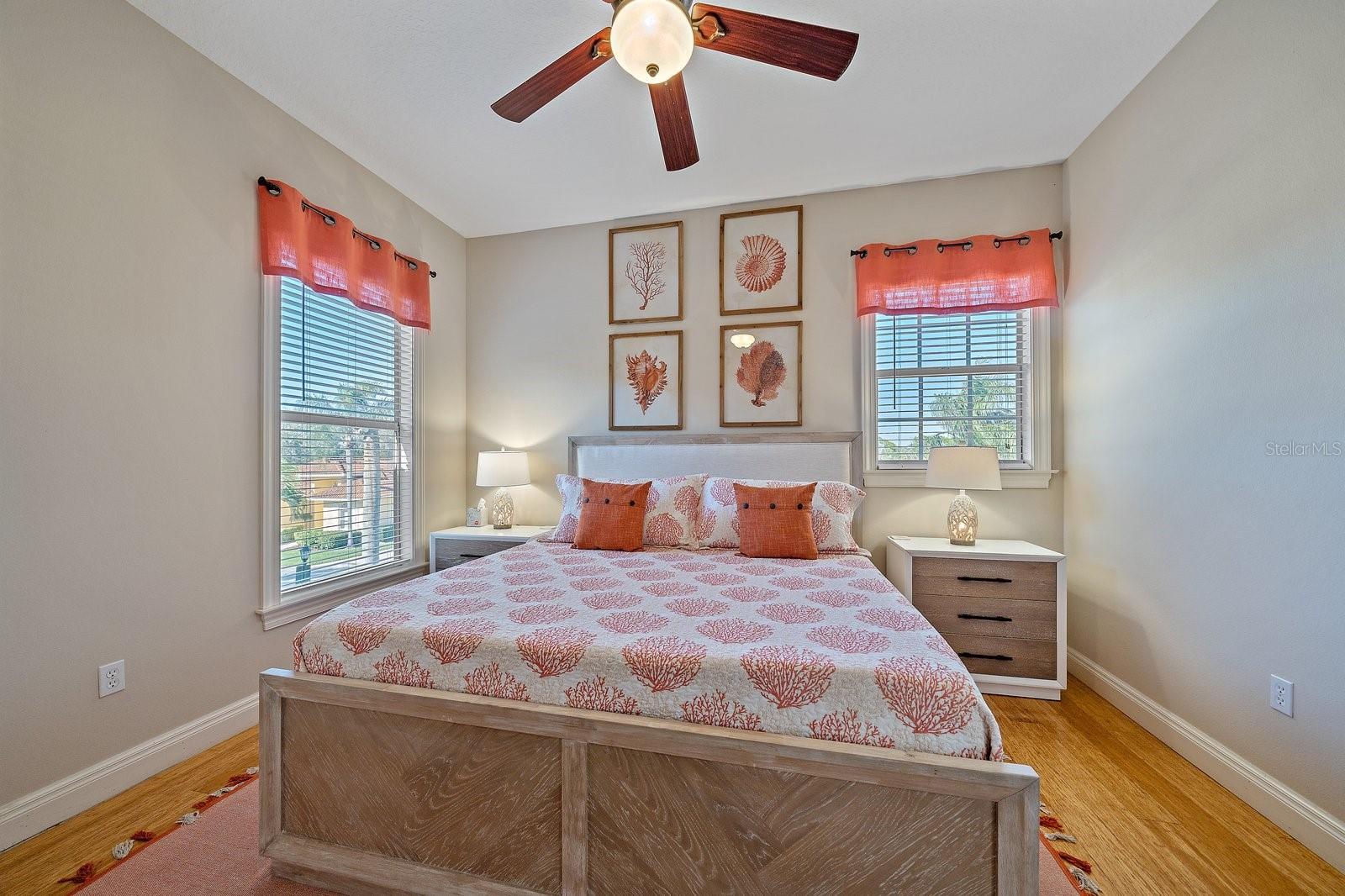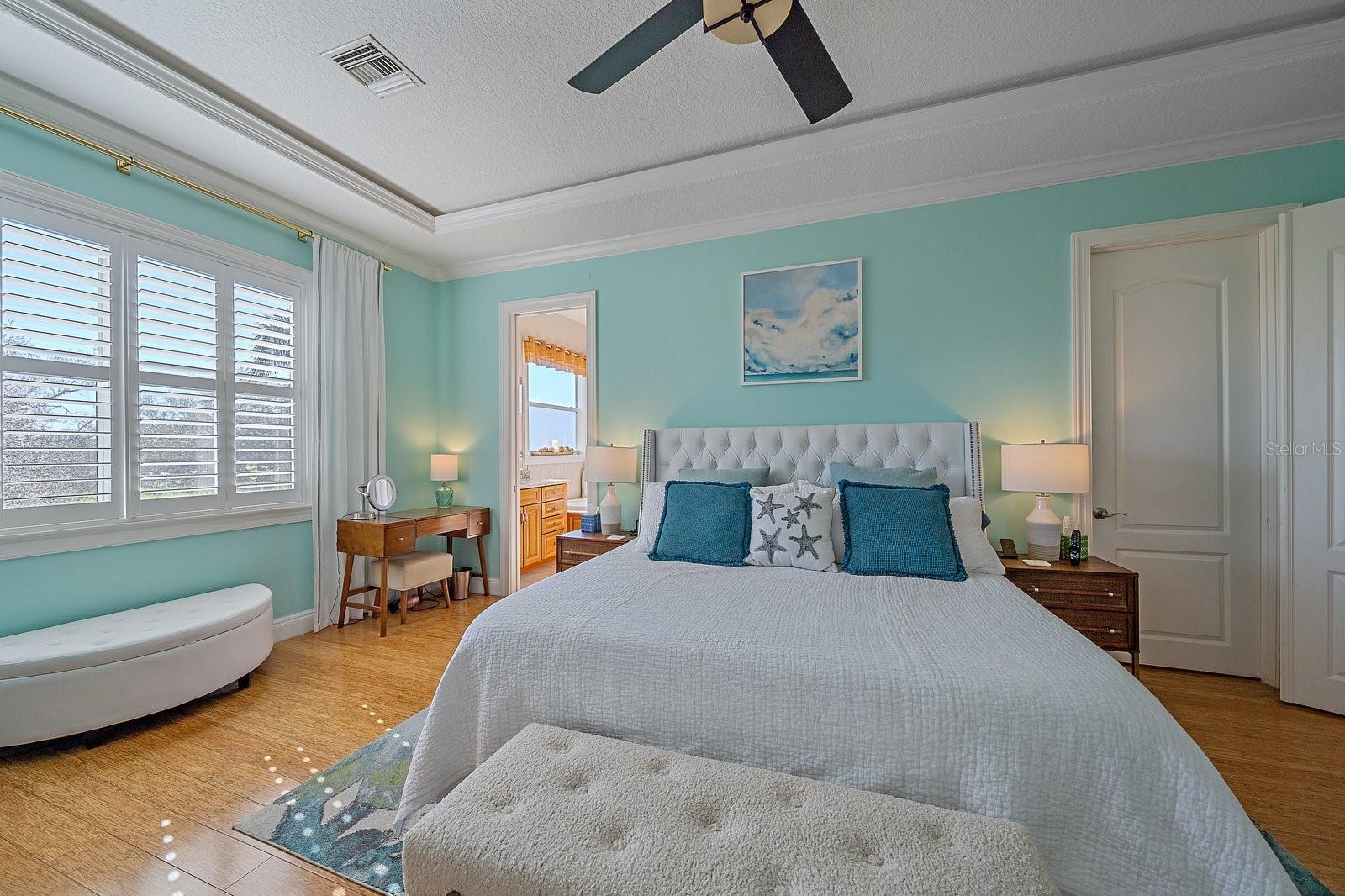 NESSELTED IN THE HEART OF PRESTANCIA AND PRICED TO SELL; HIGHLY SOUGHT OUT GOLF COURSE COMMUNITY AWAITS.... MAINTENANCE FREE LIVING...... 2 STORY/5 BED/3 FULL BATHS/3 CAR GARAGE/PLUNGE POOL/SPA....... This completely updated, well taken care of SFR home host 2 floors. First floor host a bonus room w/dry bar, 2 wine fridges, ice maker, color changing lights, 1 bedroom/office, full bath, laundry room, dining room and kitchen/family room combo with sliding doors out to the first floor lanai. Crown molding thru out with a hidden pantry under the stairs. Second floor host 3 bedrooms, Master suite, walk in closets and 2 full baths. Beautiful Bamboo flooring and shutters throughout. You can access the 2nd floor Lanai through Master Suite or bedroom. Enjoy cocktails and sunsets on the 2nd floor lanai and enjoy cocktails and privacy on the 1st floor Lanai. Location is paramount, this home delivers, with its proximity to Siesta Key and highway 75, ensuring seamless travel to other destinations. Photos were taken before Seller moved out fully furnished.