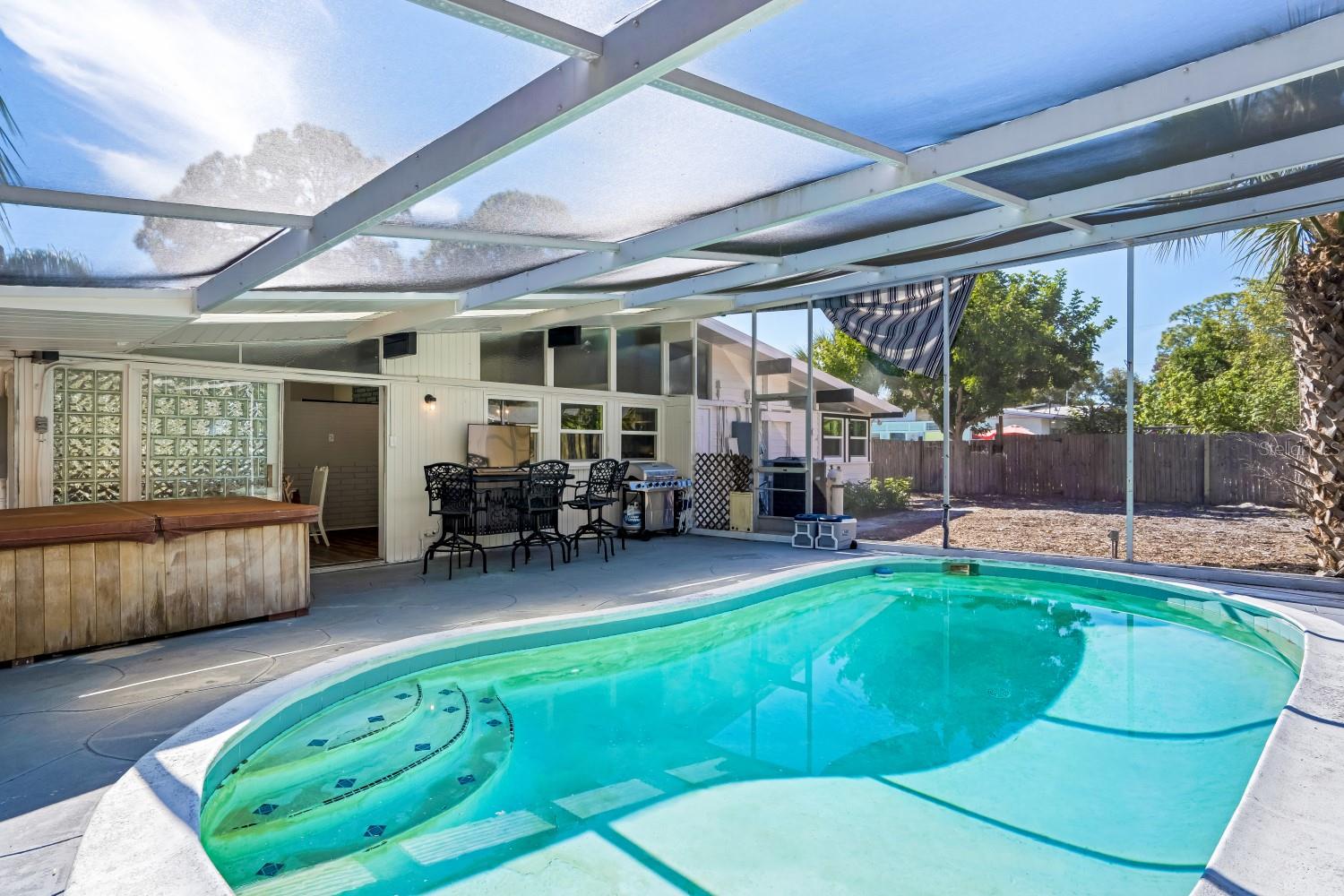 3 bedroom pool home with attached 2/1 with full kitchen. 2 miles to Siesta Key, easy commute to downtown Sarasota. Has a screened in pool, storage shed, fenced in yard and generator. Offered fully furnished! Excellent rental income opportunity. Rent both , live in one /rent the other or make it your large single family home.