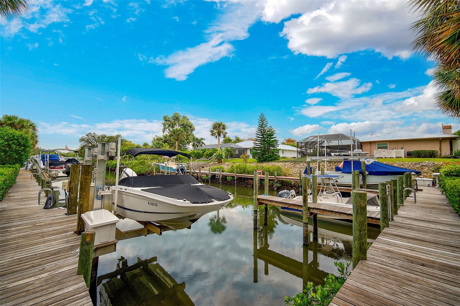 OPEN HOUSE ON 5.4/25 CANCELLED. TURNKEY furnished move in ready, with intercoastal canal views and comes with a deeded dock and boat lift. Seller has paid for a buyers home inspection and this report is available to you. Seller also had a temite inspection done and it is attached. This condo is located in a quiet gated community of only 36 units close to all conveniences. This second and top floor spacious unit has the largest floor plan and feels more like a single family home, vaulted ceilings and an open floor plan with split bedrooms. It's a short walk over the bridge to Siesta Key beaches. Quick access to the intercoastal and bay by boat, no bridges to navigate, makes it easy to go to the many waterfront restaurants. The huge primary ensuite overlooks the canal and has a walk in shower/closet, dual sinks, king bed, separate tub and WC. The split bedroom floor plan offers 2 other bedrooms with nice sized closets and one queen and one king bed. TV's are provided in the LR, primary suite and 1 guest bedrm. There is a full size washer/dryer. The kitchen is well stocked with Kitchen Aid appliances and has space to eat in. The lanai has been enclosed with sliding doors which can be opened to enjoy the breeze. The detached 2 car garage has a separate AC unit. Seller had the 6000 lb lift refurbished in 2023. New roof in 2023. The air ducts and dryer vent were cleaned in January 2024. The condo is only steps from the heated pool. It's a 10 minute drive to downtown Sarasota. Walk or bike to the world famous Siesta Key Beach or take a trolley. You are within a mile of every convenience you can think of. This community is a hidden gem. All offers must provide proof of funds or pre-approval with offer. Tenant occupied until April 16.