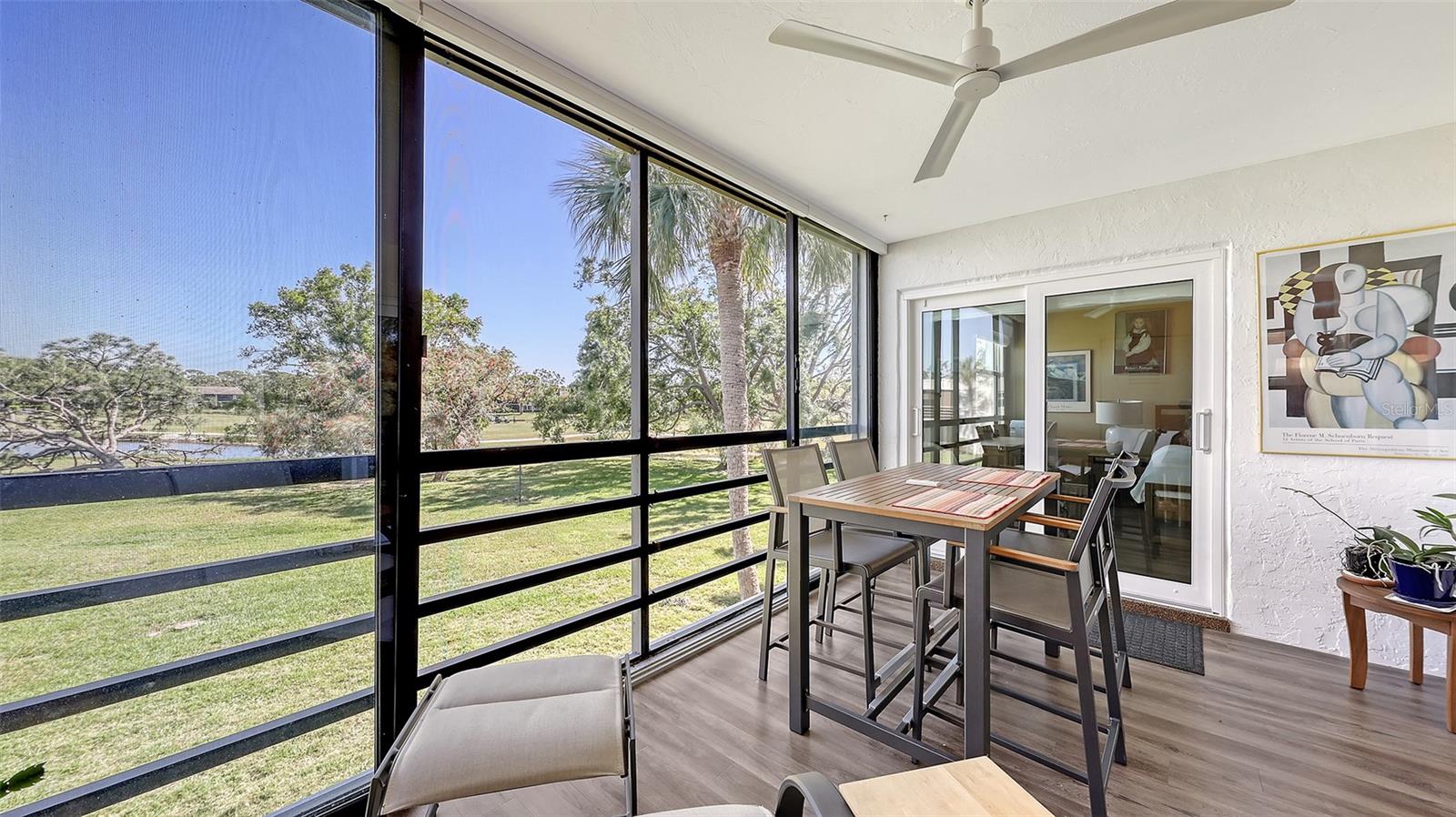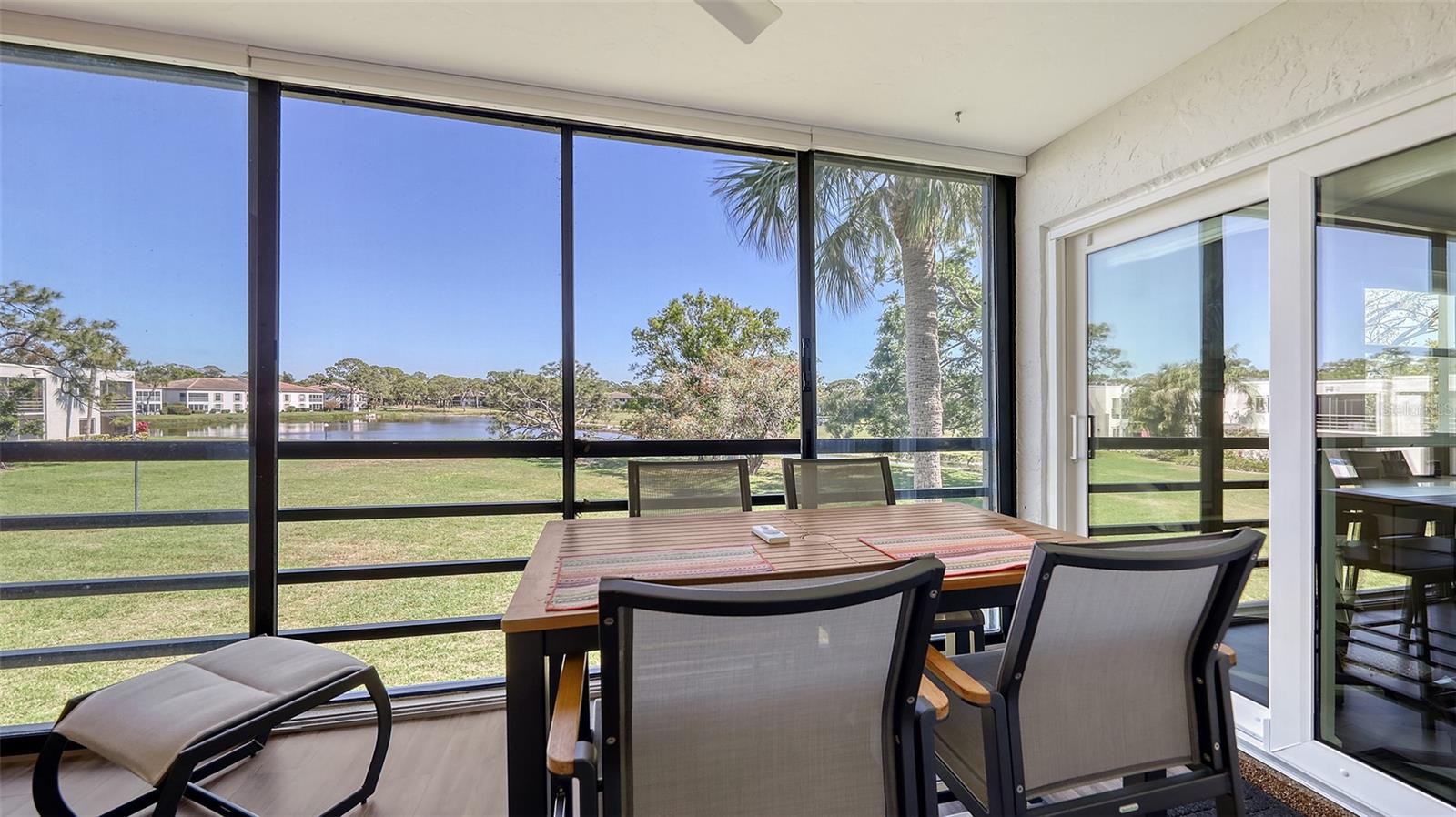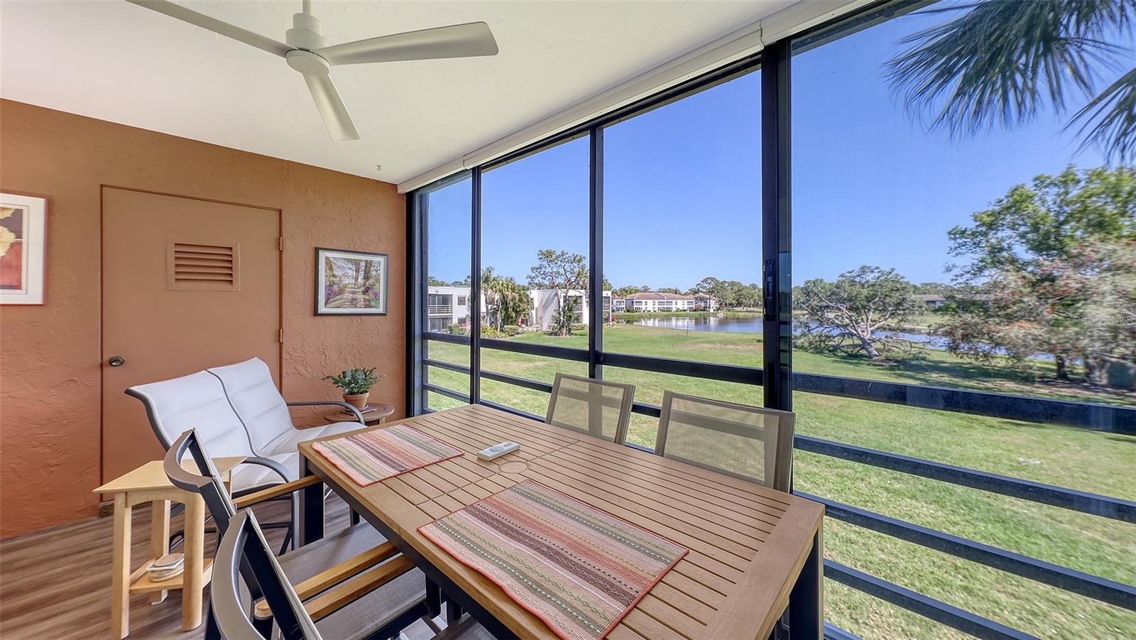 Do not miss this beautifully remodeled 2 bedroom, 2 bath home in The Meadows, a premier resort-style community. Showcasing stunning mid-century modern architecture, this residence is a 10, featuring a full renovation with a wow-factor kitchen – wood cabinetry, stainless steel appliances, Cambria quartz countertops, and a raised ceiling for added elegance. All-new impact windows and sliders, gorgeous hardwood flooring throughout (no carpet), and electronic shades elevate the home’s modern appeal. Additional updates include a 2023 water heater, 2022 roof and A/C system, impact windows/sliders, brand-new fire front door and recently painted inside. Reverse Osmosis for the kitchen and a Pro H20 water softener system for the entire condo. Enjoy breathtaking water views from your private all season enclosed lanai, perfect for relaxation. The owner’s suite offers custom-designed closets and an updated bath, while the second bedroom includes a spa-like walk-in tub. A full-size washer and dryer, interior laundry room, and a one car carport add convenience. The Meadows span 1,600 park-like acres with 14 miles of scenic biking and hiking trails, a Junior Olympic pool, fitness center, top notch tennis complex, pickleball courts, dining venues and three pay -to-play 18-hole golf courses. Optional club membership offers even more social, sports, and golf amenities. Located just 15 minutes from downtown, you are close to award winning beaches, vibrant arts and culture, Nathan Benderson Park, Mote SEA Aquarium, Whole Foods, Trader Joe’s, and The Mall at University Town Center, a world class shopping, entertainment and dining destination. Best of all, there are no assessments and situated above flood plain Zone X. A fabulous Florida lifestyle awaits – schedule your showing today!