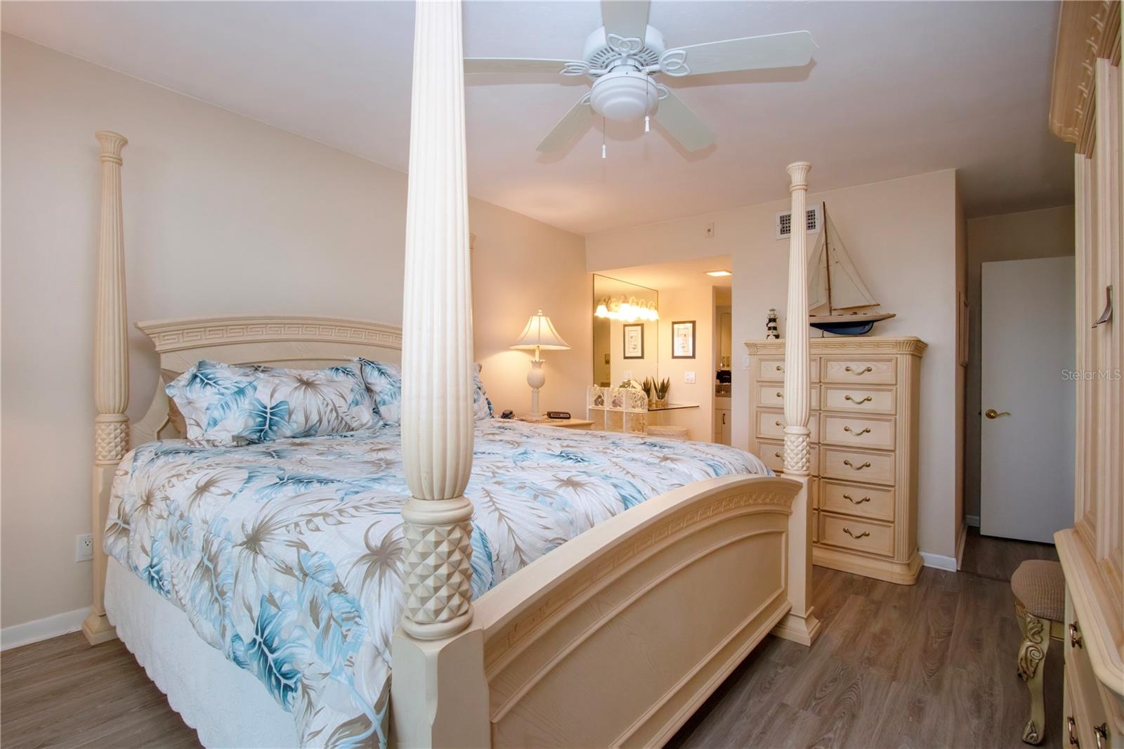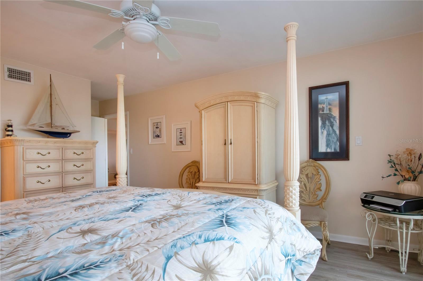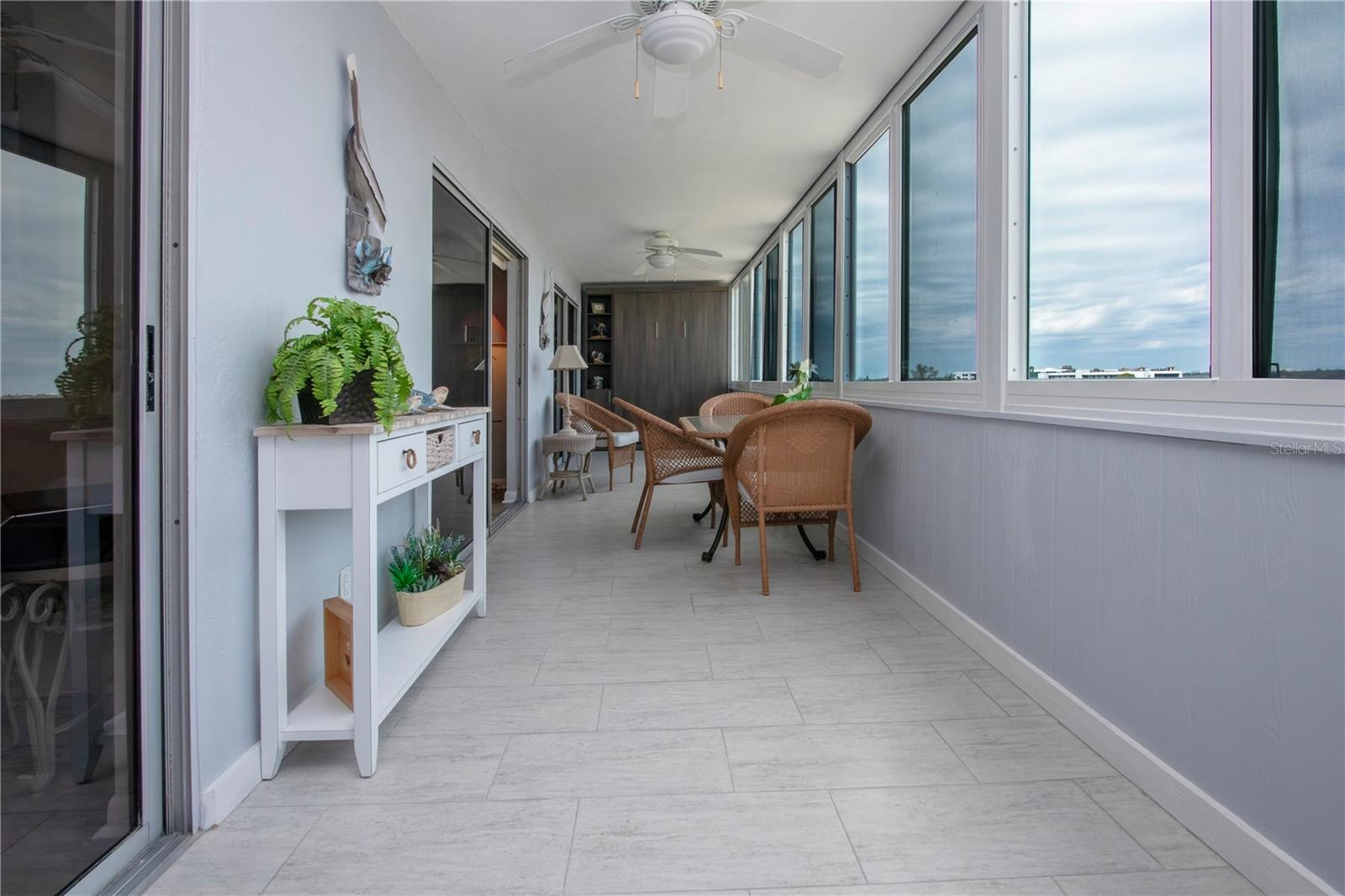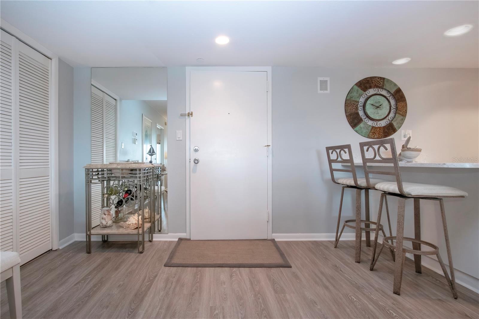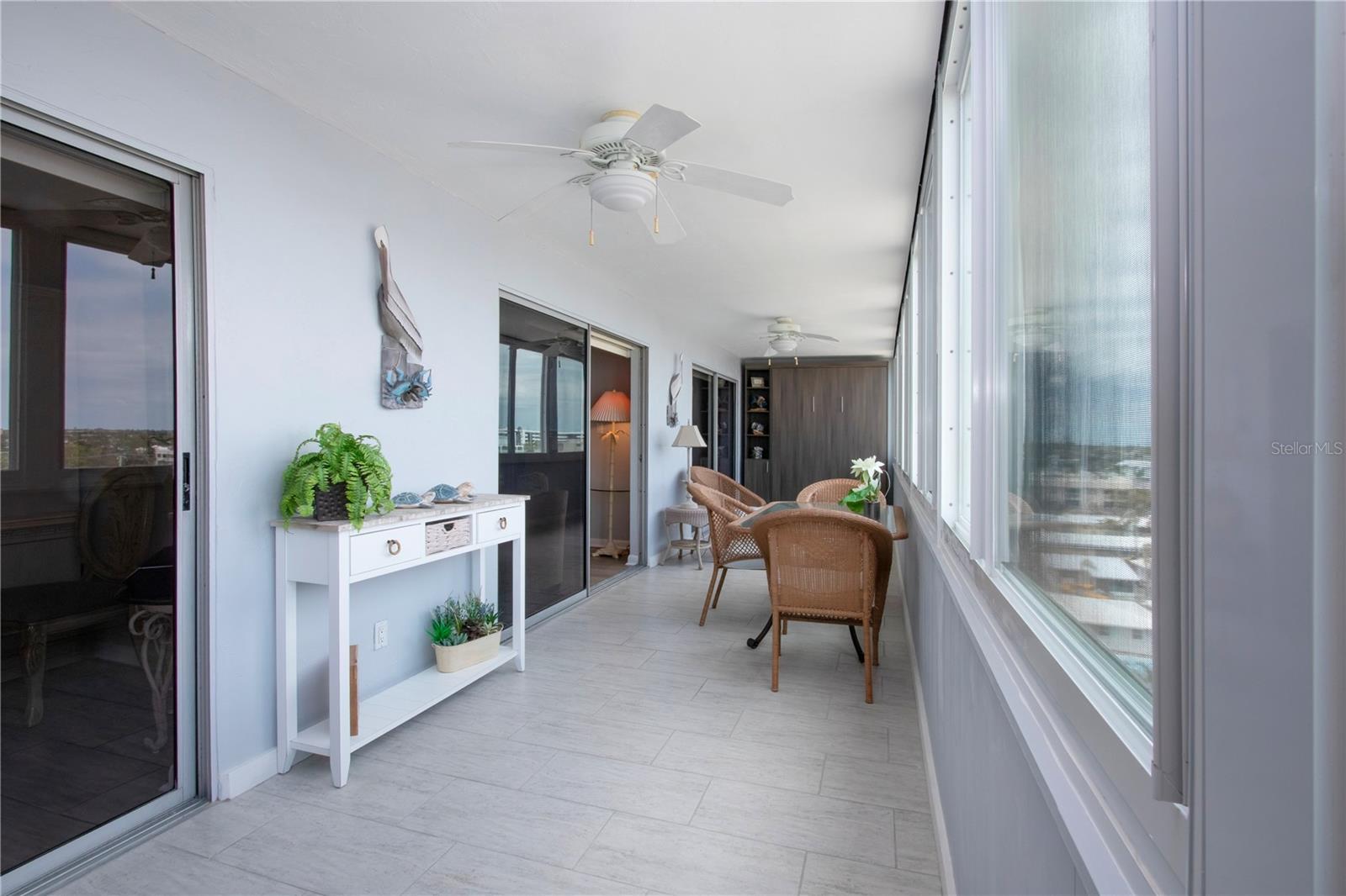 6th floor Gulfside Highrise facing East overlooking the peppertree grounds--High and Dry! Beautifully appointed with detail to owners care of the unit. Spacious open kitchen with extra storage, wood lament flooring throughout the living areas; tile in the baths and lanai. Lanai enclosed with hurricane windows and new murphy bed on lanai. Supersized utility room with washer and dryer. Underground parking space. Turnkey Furnished and Move in Ready!
