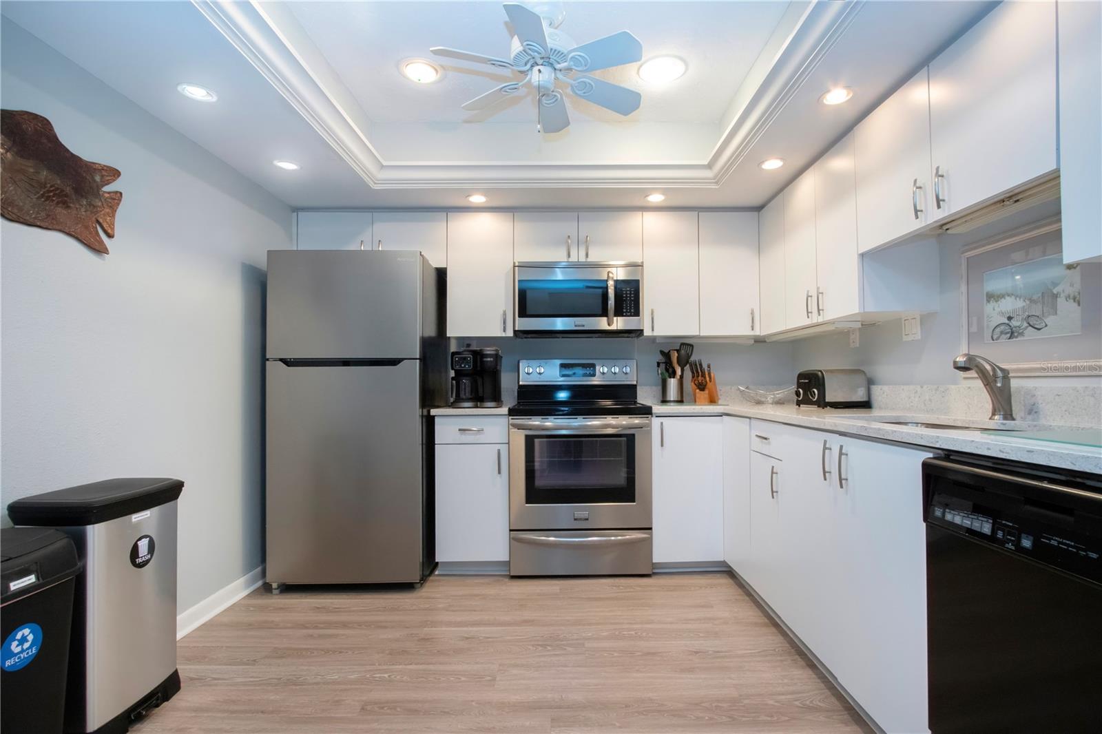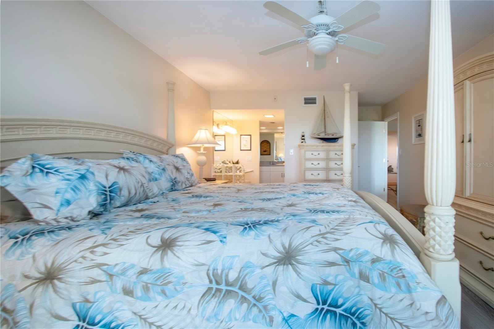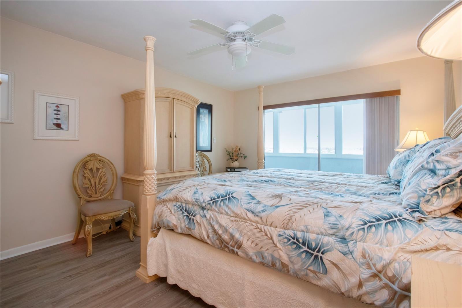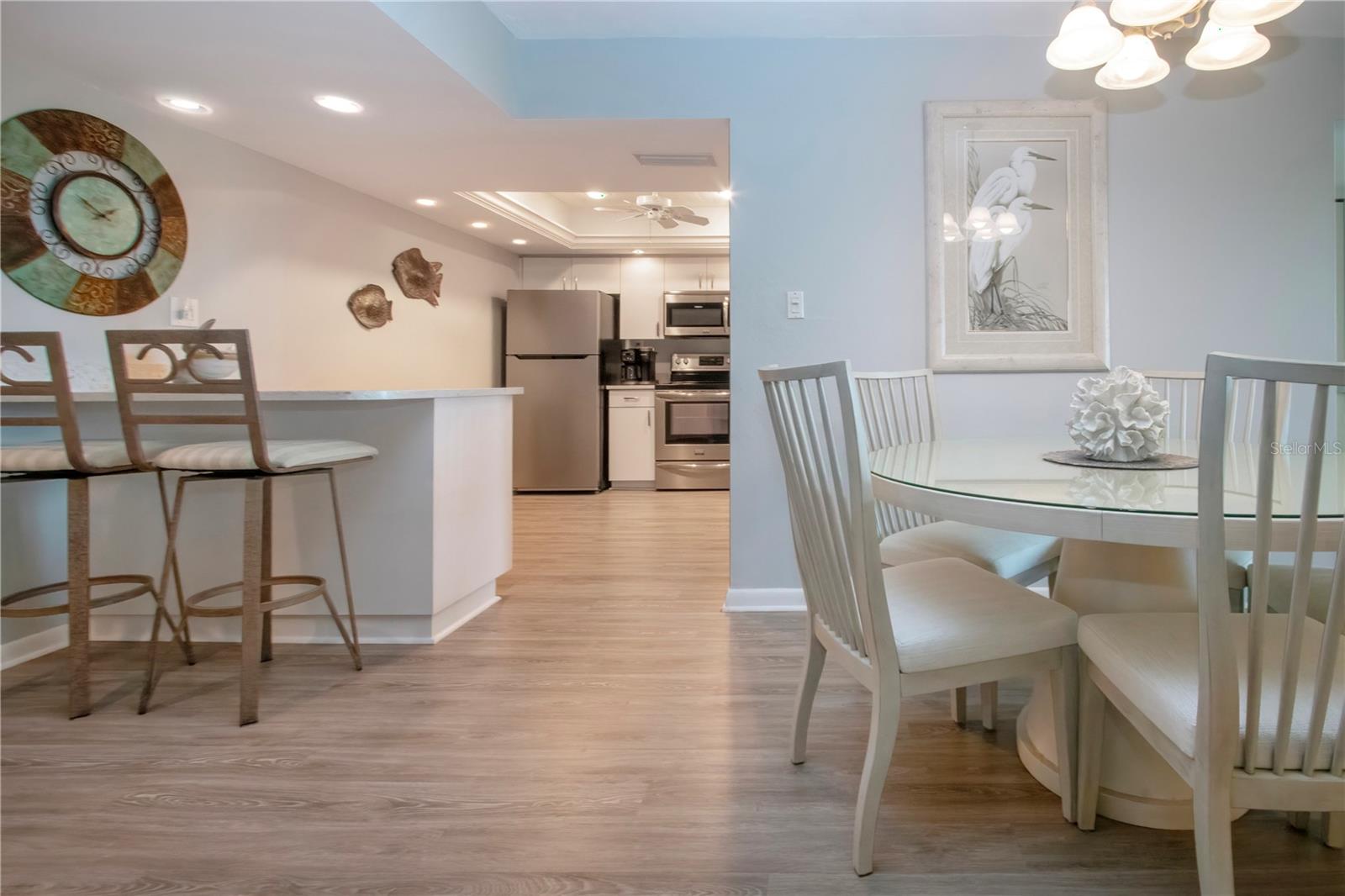 6th floor Gulfside Highrise facing East overlooking the peppertree grounds--High and Dry! Beautifully appointed with detail to owners care of the unit. Spacious open kitchen with extra storage, wood lament flooring throughout the living areas; tile in the baths and lanai. Lanai enclosed with hurricane windows and new murphy bed on lanai. Supersized utility room with washer and dryer. Underground parking space. Turnkey Furnished and Move in Ready!