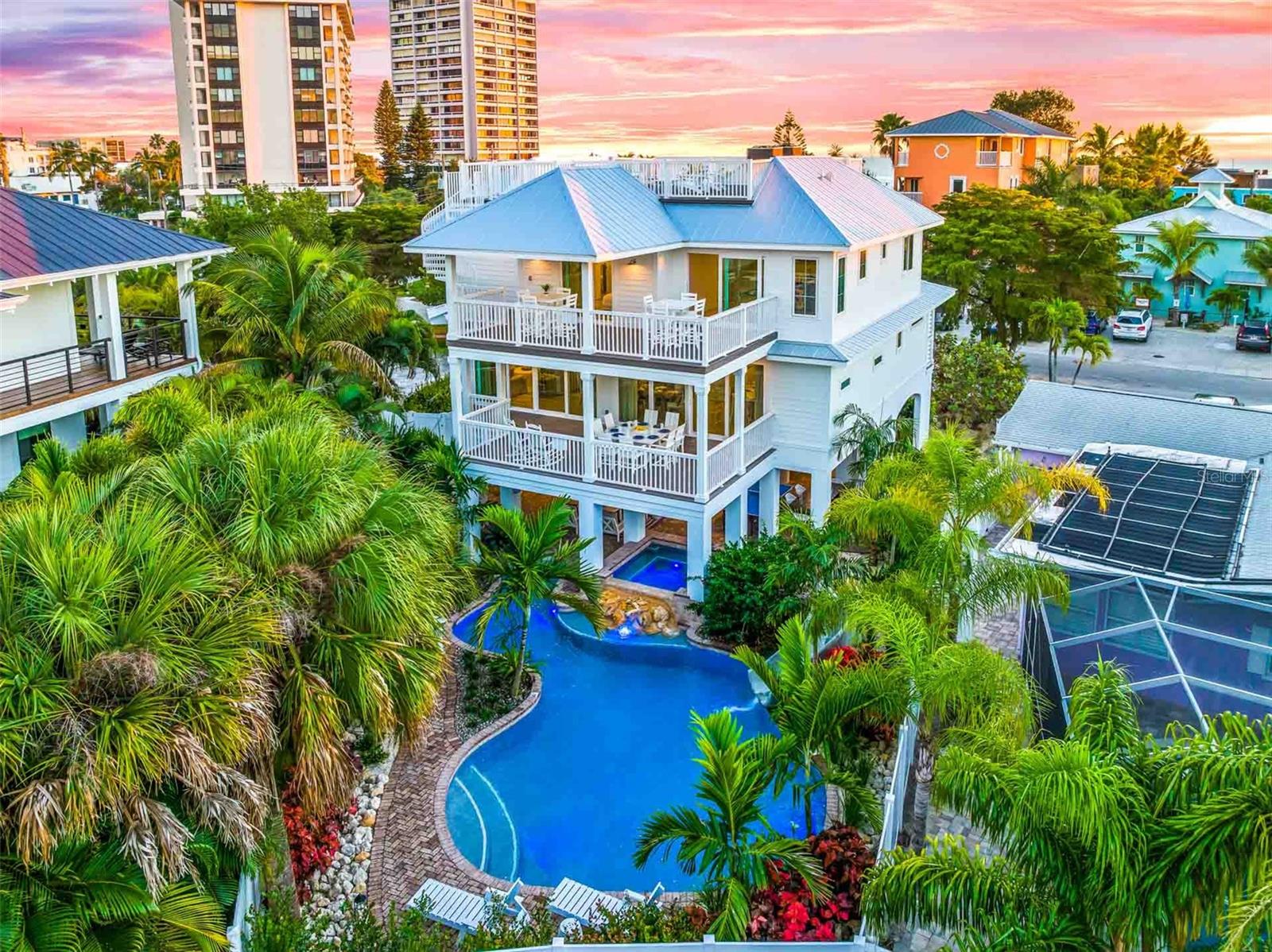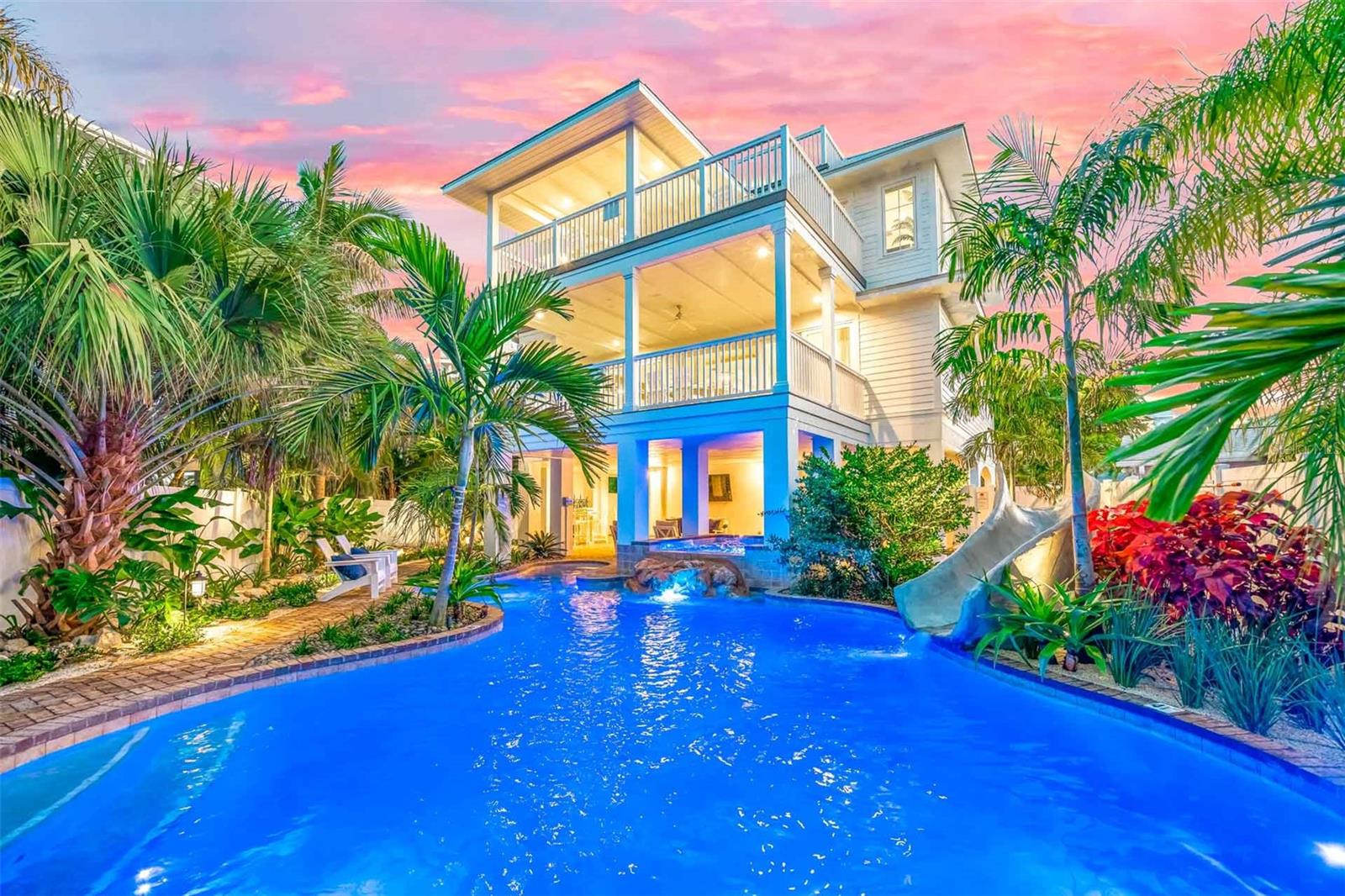 Just steps from the world-renowned shores of Siesta Key Beach, High Tide is more than just a home—it’s a dream destination for both homeowners and savvy investors. This stunning newer-build retreat offers the ultimate blend of luxury, relaxation, and entertainment, all within a two-minute stroll to the sugar-white sands and turquoise waters of the Gulf of Mexico. Step into your private tropical paradise, where the sparkling pool, bubbling spa, and thrilling waterslide set the scene for endless fun under the Florida sun. Lounge poolside with a refreshing cocktail, challenge friends to a lively game of ping pong on the shaded patio, or gather indoors for a poker night filled with laughter and friendly competition. As the day winds down, ascend to the rooftop deck, where breathtaking sunsets paint the sky in brilliant hues—an experience best enjoyed with a glass of wine in hand. Designed for comfort and style, this sprawling three-story home features six lavish bedrooms and six-and-a-half beautifully appointed bathrooms, offering ample space to accommodate up to eighteen guests. The main level boasts an inviting living area with plush seating, perfect for unwinding after a day at the beach, while the fully equipped chef’s kitchen is a culinary haven, complete with sleek stainless steel appliances, tropical accents, and an oversized island for casual dining. Host unforgettable meals in the formal dining area, or take advantage of the al fresco dining deck, where the island breeze and star-filled skies elevate every gathering. Beyond the home’s luxurious amenities, High Tide is a proven high-performing rental property, making it an incredible investment opportunity with strong rental history and high demand. Just a stone’s throw from the lively Siesta Key Village, you’ll have easy access to charming boutiques, gourmet restaurants, and vibrant nightlife, ensuring entertainment is always within reach. Whether you’re looking for an exclusive vacation retreat, a lucrative income-producing property, or both, High Tide offers the best of Siesta Key beachside living. Schedule your private showing today and start making memories in paradise!