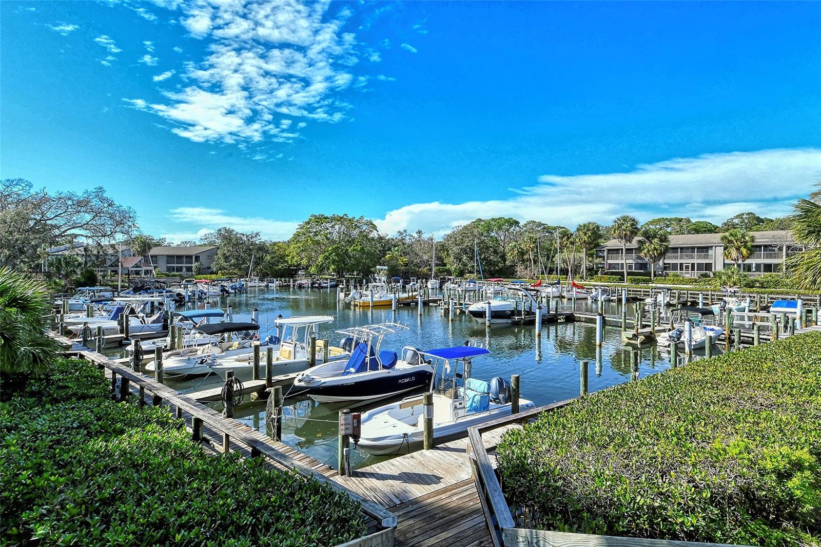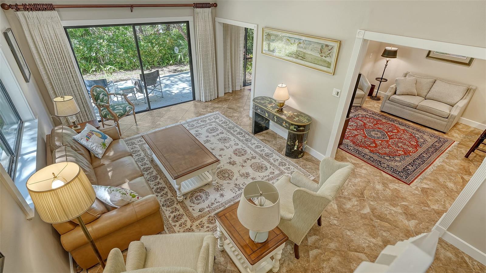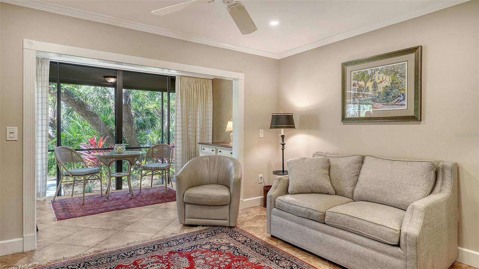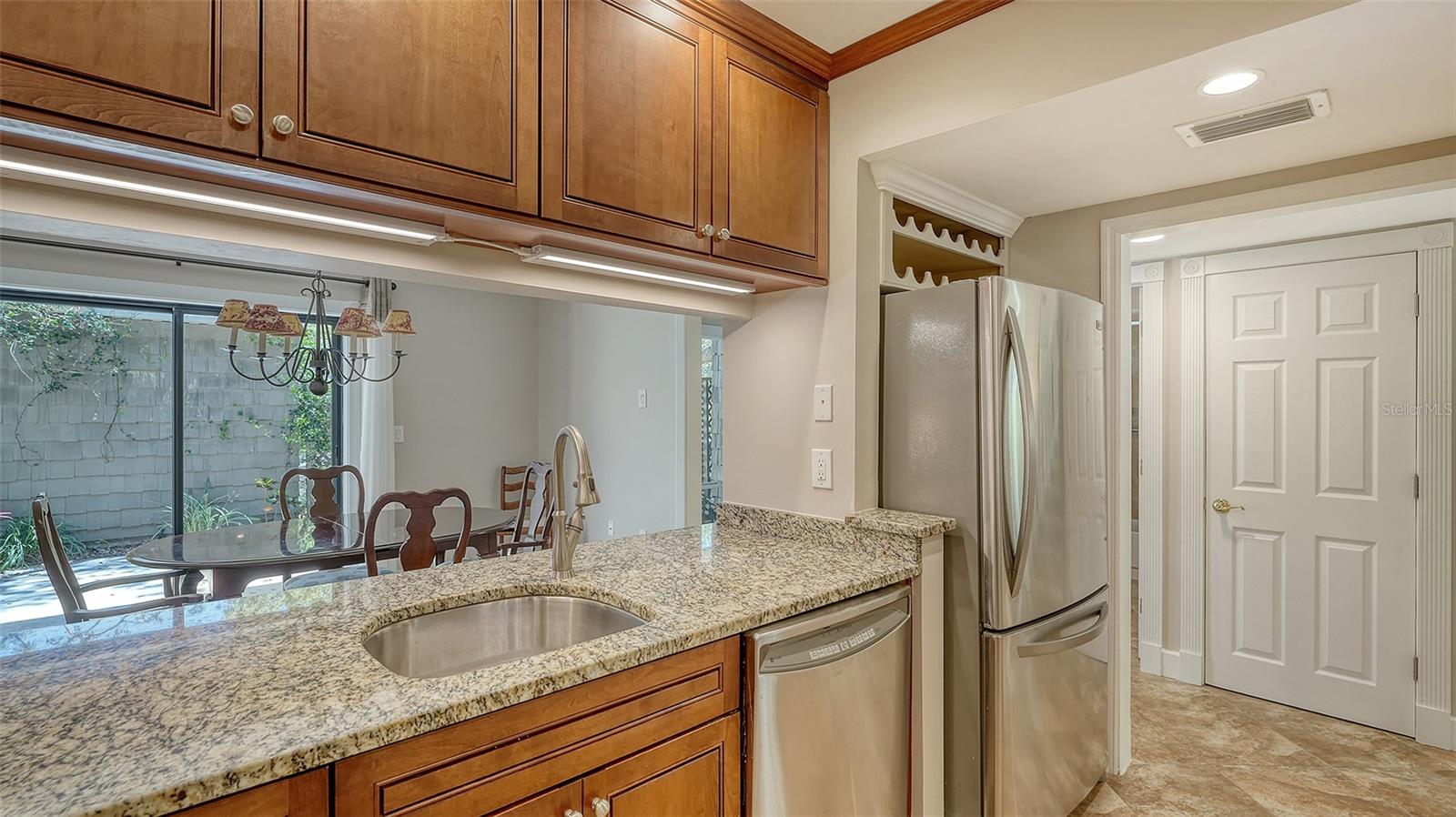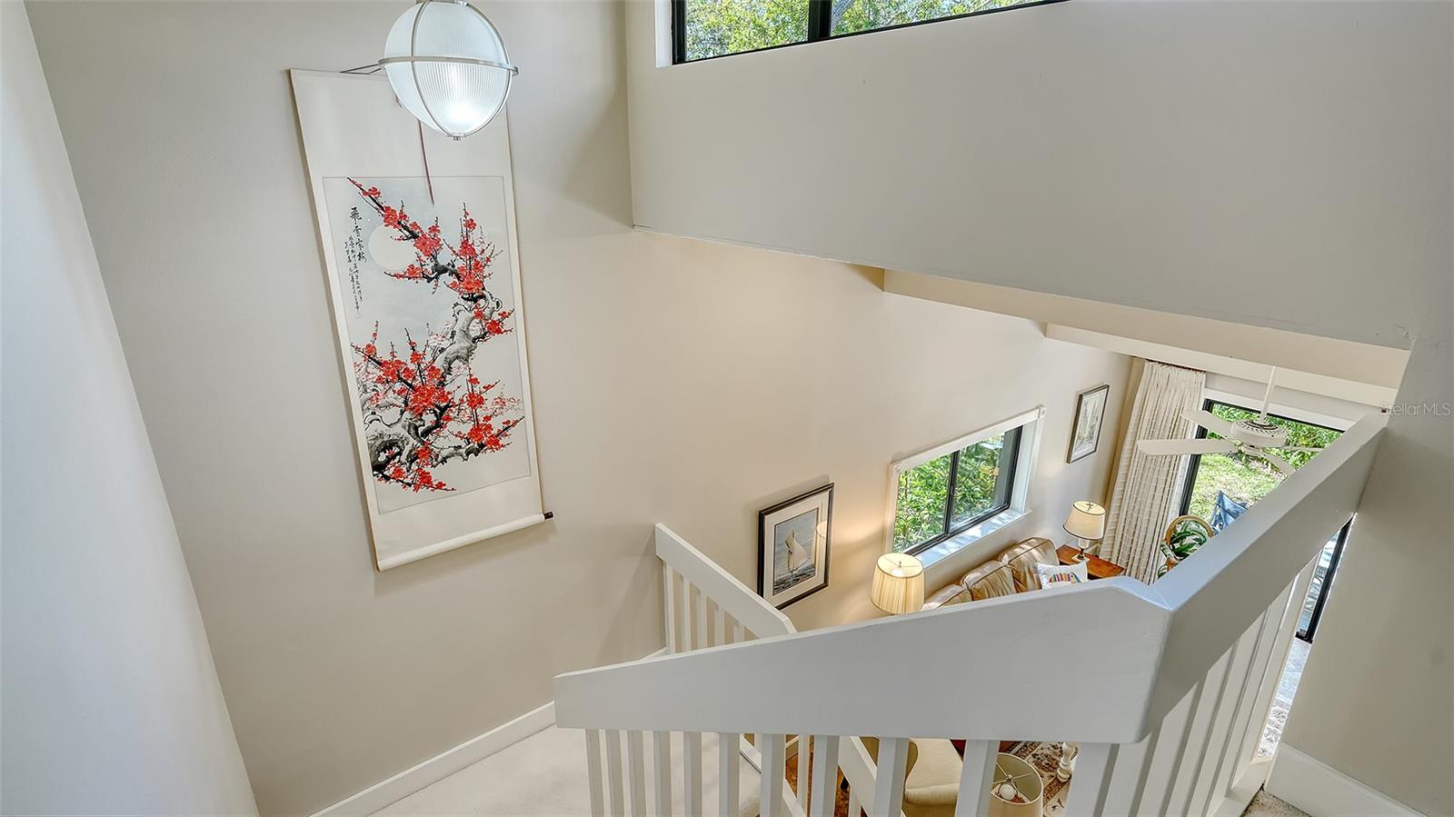 Blending into the natural setting of the gardens and trees within Pelican Cove in Sarasota, this lovely three-bedroom and three-bath home has been stylishly renovated and designed for relaxed Florida living. As an end unit with an abundance of windows, light streams into the condominium and sliding doors open up to a private fenced outdoor patio in the front and also to an open back patio, bringing the outside in. The downstairs interior living space of the two-story condominium was enhanced by raising the former lanai and combining it into the open living area of the family room and kitchen, adding to the seamless flow between all rooms. The impressive vaulted ceiling in the large living room adds to the exceptionally spacious, bright and breezy feel of the home. Upstairs and down, designer touches and accents are found everywhere. All three baths have been totally updated with wood vanities, granite countertops and full glass shower and bath remodeling, upgraded interior doors and hardware were installed in every room, crown molding was skillfully built around ceilings, and all doors and windows reframed with classic wood molding. On the first floor, a major renovation was completed. The kitchen was opened up to the family room and beautifully remodeled with KraftMaid quality cabinets, granite countertops, stainless appliances and undercounter lighting, while the popcorn ceilings were removed and then replaced, and recessed lighting added. The entire downstairs flooring was replaced with neutral-colored large ceramic tiles throughout at that same time, designer drapes installed and, most recently in 2023, all walls and woodwork were freshly painted and one of two air-conditioning systems replaced in 2024. The second floor is accessed by an architecturally pleasing stairway, with a landing overlooking the living room and leading to a comfortable layout of the bedrooms upstairs. The two guest rooms have large windows with Hunter Douglas blinds, ample wall closets and they share a bath. The private primary bedroom suite is conveniently separated from guests, with a walk-in closet with built-ins, the redone en-suite bath and, through a wall of sliders, a cozy balcony overlooking the backyard. The Pelican Cove community is somewhat hidden from the hubbub, but is centrally near lots of shopping, dining, beaches and all cultural events downtown Sarasota has to offer! There is something for everyone in this waterfront and pet-friendly place, aquatic sports in one of the six outdoor pools, tennis and pickleball, yoga, bird watching, exploring along the boardwalks some of its 78 acres, kayaking, taking classes at Pelican Cove University or joining one of 37 clubs offered. There is also an 86-slip boat harbor for boating enthusiasts with low-cost rates, call HOA for availability. This condominium and its community are special so call for a private showing.
