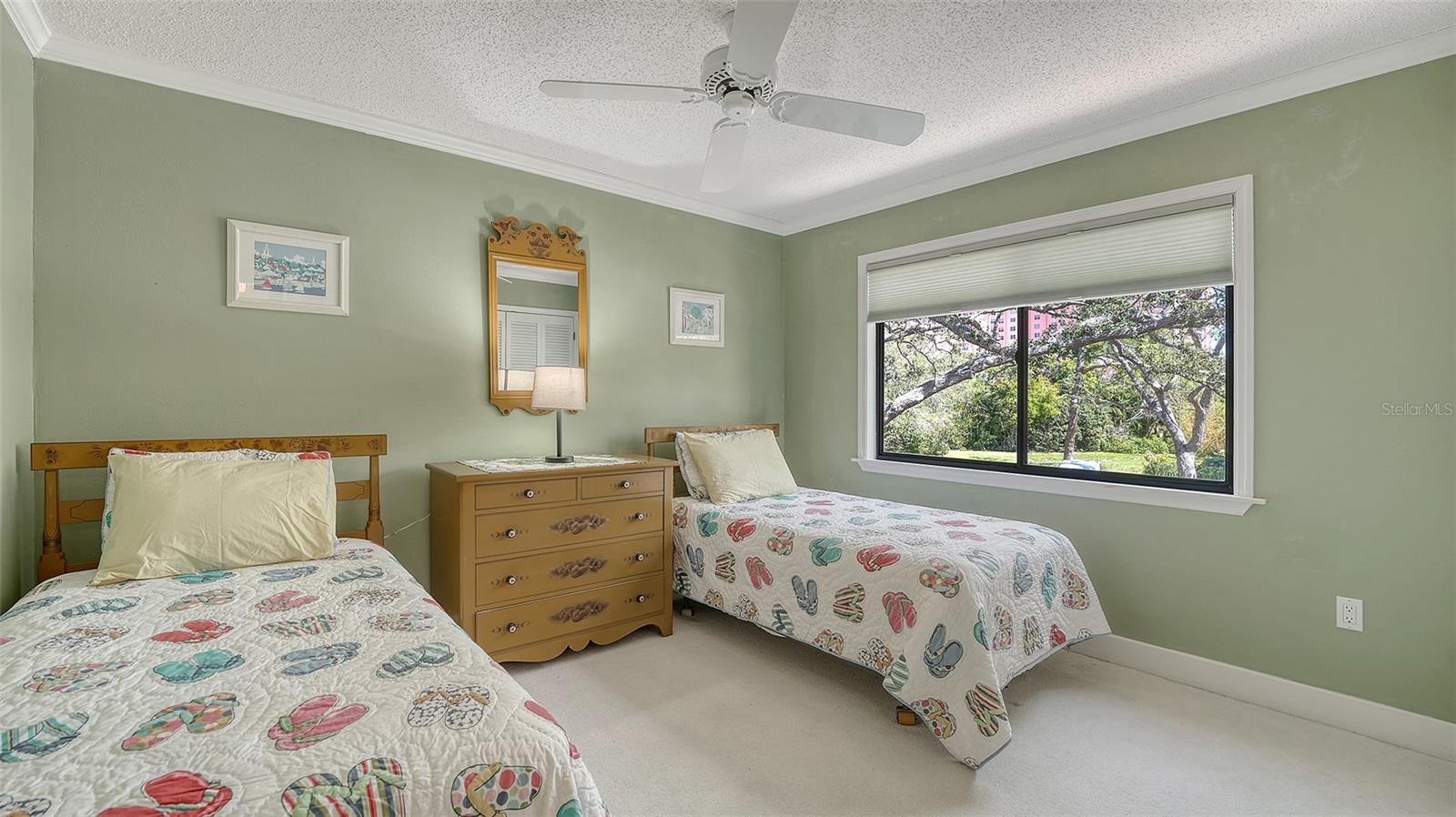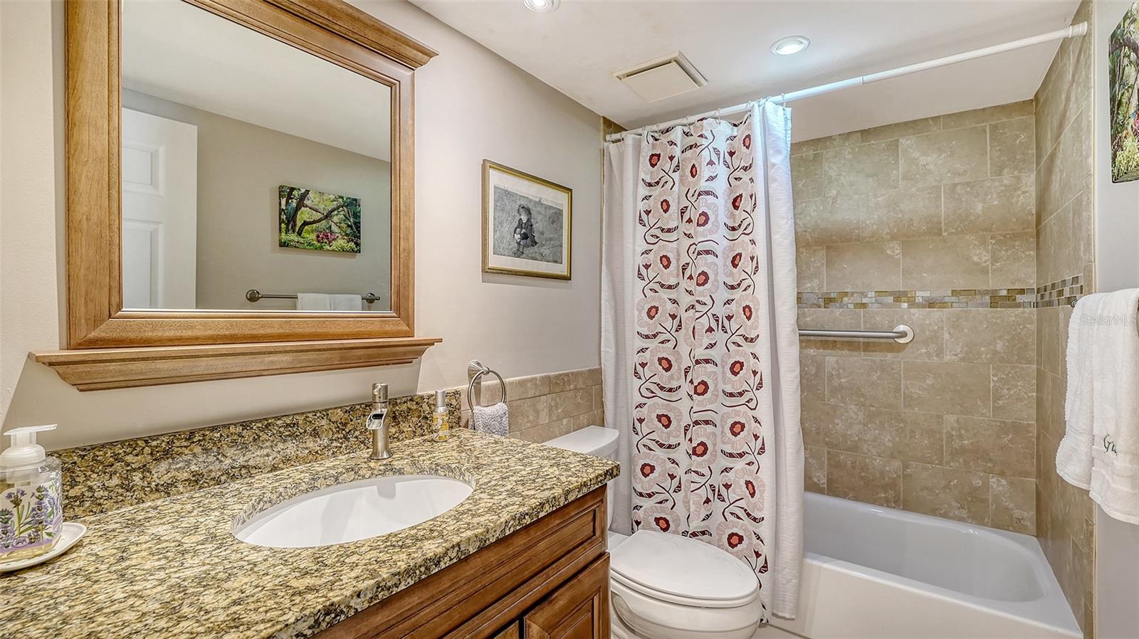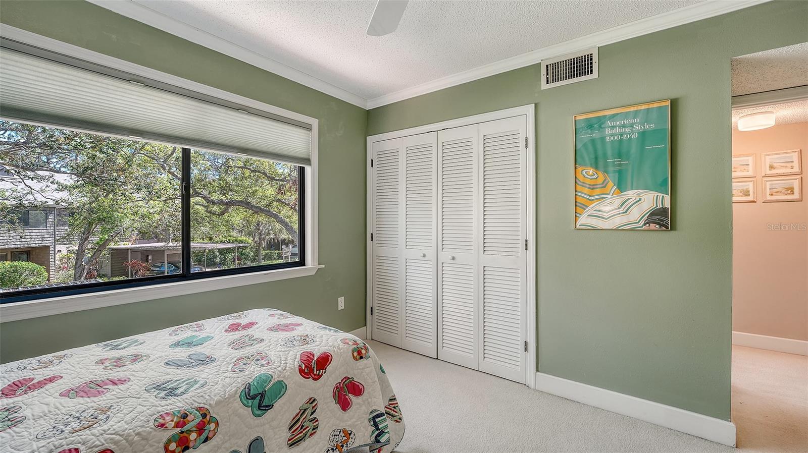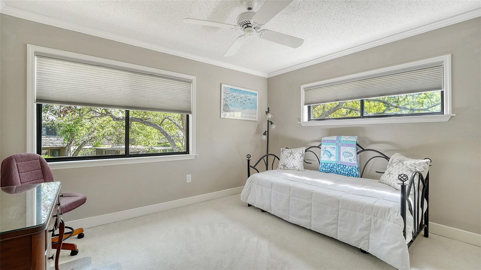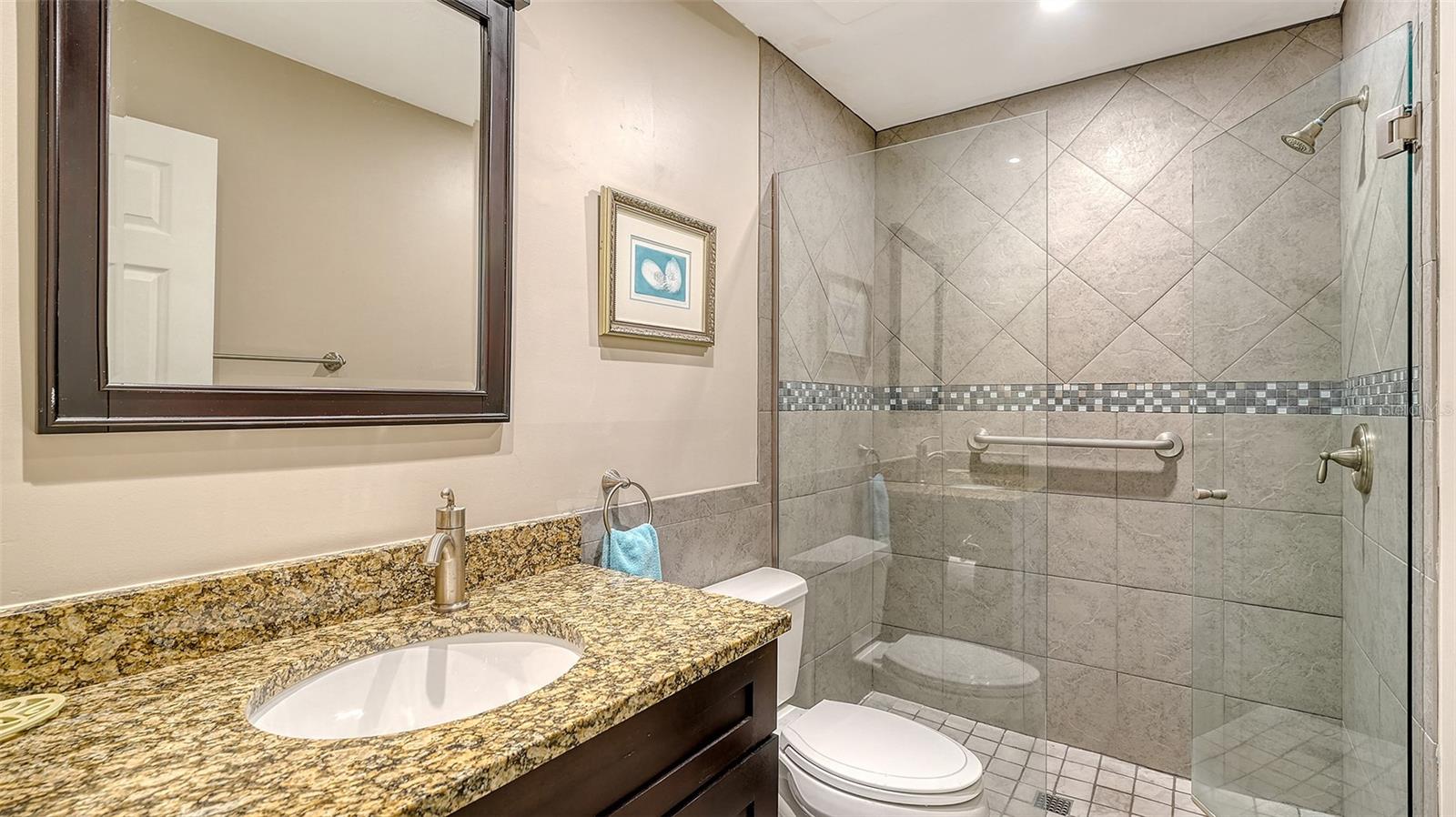 Blending into the natural setting of the gardens and trees within Pelican Cove in Sarasota, this lovely three-bedroom and three-bath home has been stylishly renovated and designed for relaxed Florida living. As an end unit with an abundance of windows, light streams into the condominium and sliding doors open up to a private fenced outdoor patio in the front and also to an open back patio, bringing the outside in. The downstairs interior living space of the two-story condominium was enhanced by raising the former lanai and combining it into the open living area of the family room and kitchen, adding to the seamless flow between all rooms. The impressive vaulted ceiling in the large living room adds to the exceptionally spacious, bright and breezy feel of the home. Upstairs and down, designer touches and accents are found everywhere. All three baths have been totally updated with wood vanities, granite countertops and full glass shower and bath remodeling, upgraded interior doors and hardware were installed in every room, crown molding was skillfully built around ceilings, and all doors and windows reframed with classic wood molding. On the first floor, a major renovation was completed. The kitchen was opened up to the family room and beautifully remodeled with KraftMaid quality cabinets, granite countertops, stainless appliances and undercounter lighting, while the popcorn ceilings were removed and then replaced, and recessed lighting added. The entire downstairs flooring was replaced with neutral-colored large ceramic tiles throughout at that same time, designer drapes installed and, most recently in 2023, all walls and woodwork were freshly painted and one of two air-conditioning systems replaced in 2024. The second floor is accessed by an architecturally pleasing stairway, with a landing overlooking the living room and leading to a comfortable layout of the bedrooms upstairs. The two guest rooms have large windows with Hunter Douglas blinds, ample wall closets and they share a bath. The private primary bedroom suite is conveniently separated from guests, with a walk-in closet with built-ins, the redone en-suite bath and, through a wall of sliders, a cozy balcony overlooking the backyard. The Pelican Cove community is somewhat hidden from the hubbub, but is centrally near lots of shopping, dining, beaches and all cultural events downtown Sarasota has to offer! There is something for everyone in this waterfront and pet-friendly place, aquatic sports in one of the six outdoor pools, tennis and pickleball, yoga, bird watching, exploring along the boardwalks some of its 78 acres, kayaking, taking classes at Pelican Cove University or joining one of 37 clubs offered. There is also an 86-slip boat harbor for boating enthusiasts with low-cost rates, call HOA for availability. This condominium and its community are special so call for a private showing.