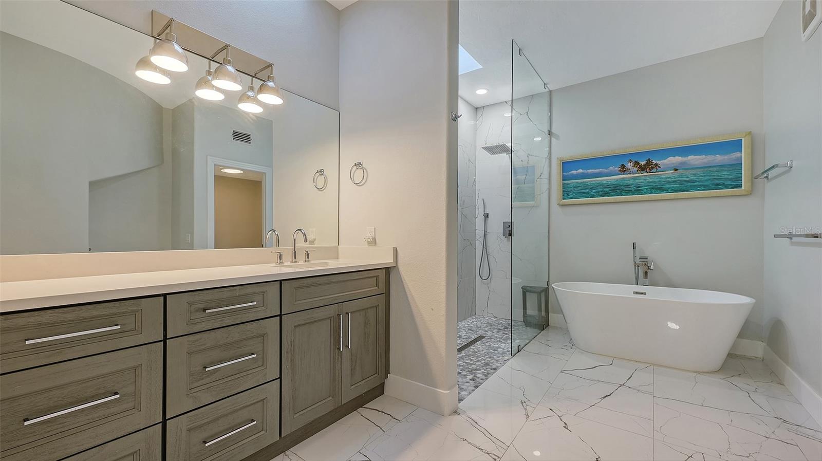 Welcome to this exquisitely renovated maintenance-free home in Prestancia-a gated and guarded Golf Course community. Enjoy the serenity of the golf course and pond views! The cul-de-sac location offers privacy and a quiet setting. This home offers 3,643sf of living space. 3 spacious bedrooms, 3.5 baths, walk-in closets, loft, storage space galore. The large loft can be a flex room. The renovated custom kitchen offers a large island, KITCHEN AID stainless steel appliances, double ovens, wood cabinets, quartz counter tops, marble backsplash, eat-in space plus breakfast bar, Reverse Osmosis system. ***Water softener system for the entire home*** All bathrooms have been upgraded to feature quartz counters, beautiful tile flooring, backsplash, large walk-in shower and separate tub in the master bath. Laundry room with new SAMSUNG appliances, new cabinetry. MOTORIZED HURRICANE SHUTTERS. The wrap-around screened-in lanai features a jacuzzi, outdoor kitchen and shower and sitting area to enjoy the beautiful sunsets. New lighting throughout, new fans, new spa heater, NEW AC SYSTEM, NEW OUTDOOR KITCHEN, WATER HEATER 2020, new landscaping and much more. The Enclave community lap pool just a few steps away will delight you! Walk or ride your golf cart to the Club. TPC membership is optional. Park like setting with miles of sidewalks for nice and safe walks and bike riding. UNBEATABLE LOCATION, minutes from LEGACY TRAIL, Palmer Ranch shopping to include COSTCO, PUBLIX, TARGET, SPROUTS, GULF GATE RESTAURANTS, 10 minutes to SIESTA KEY BEACH, 15 minutes To NOKOMIS AND VENICE BEACHES, 15 minutes to DOWNTOWN SARASOTA.***SELLER MOTIVATED***NOT IN A FLOOD ZONE*** ***BRAND NEW TILE ROOF JUST INSTALLED $75,000***