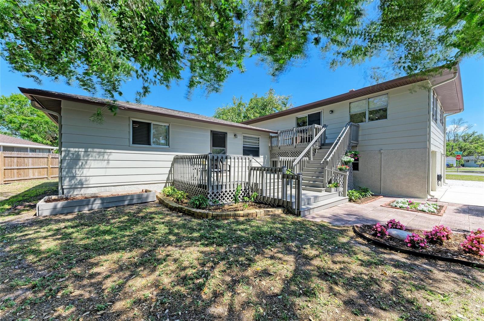 One or more photo(s) has been virtually staged. Live/Work/Invest! You must see this home to appreciate the many opportunities it affords! It is a one of a kind property featuring a main home plus a potential income producing apartment home in the very popular community of De Soto Lakes! Main home is a 3 bed/2 bath elevated home in a NO FLOOD ZONE. Ground floor is an expanded garage with over 1700 square feet of space. It's a hobbyist's dream! Or create your own personal gym! Or use it as a work from home/have your own business space! In fact, there is room for ALL of these or more! The owners added a NEW ROOF in 2021 and two NEW A/Cs in 2025. The main floor living space features a large updated kitchen with a brand new refrigerator, newer stove and dishwasher. Both bathrooms have been completely remodeled in 2024. The open floor plan includes original wood beams on the ceiling. Sip your coffee on your large front OR back deck! Primary bedroom features a walk in closet and a newly updated 3 piece bathroom. Behind the main home is a 1 bedroom, one bathroom 800 square foot apartment with a living room, kitchen and dining area. It also has it's own front deck. This property is conforming multi-family so the apartment can be used for a "granny flat" or you can rent it out! Don't miss this opportunity to live just south of University Blvd. This location cannot be beat! Besides being "high and dry" in an X flood zone, it is 10 minutes to I-75 and 20 minutes from the beaches. Be close to all the shops and restaurants at UTC or zip down to downtown Sarasota within minutes. Don't wait another minute! Schedule a showing today!