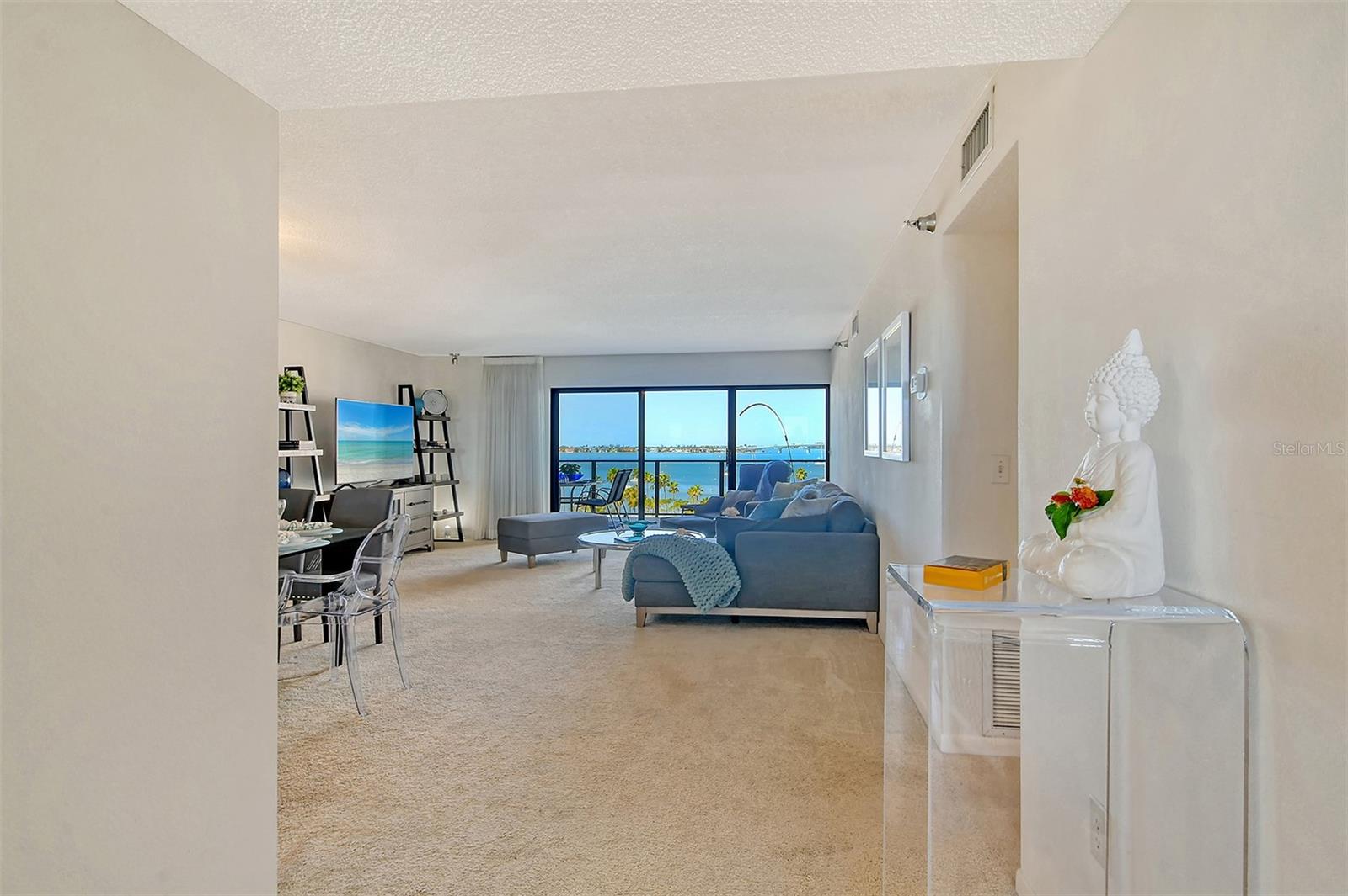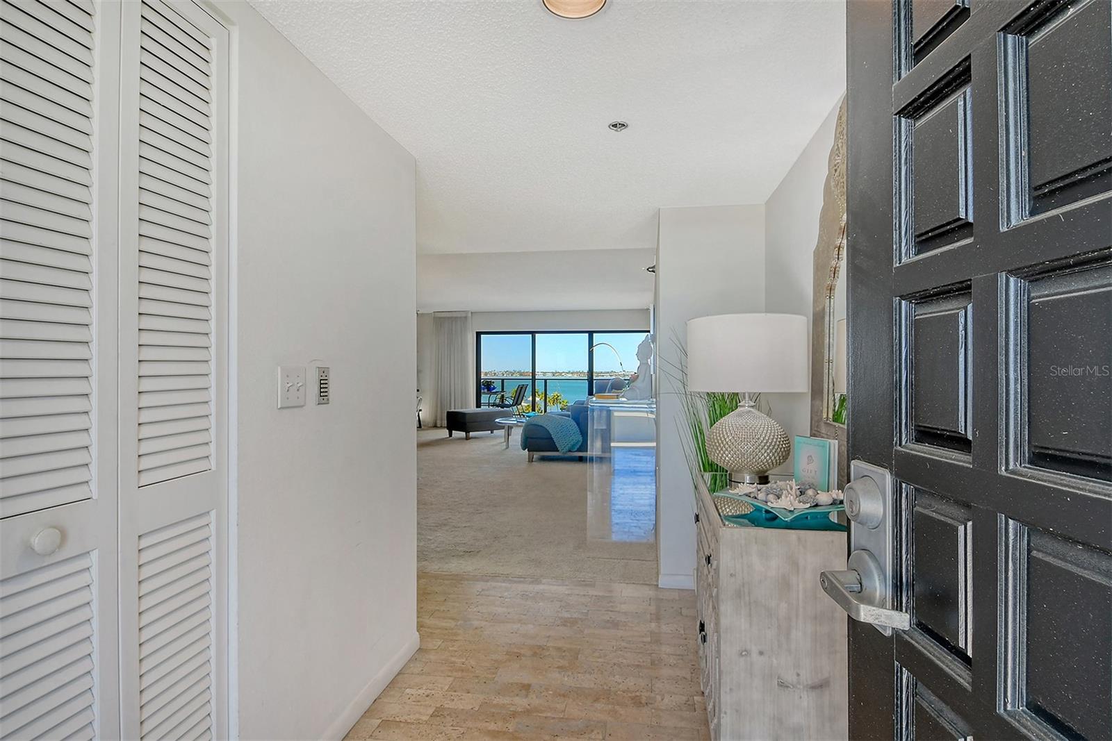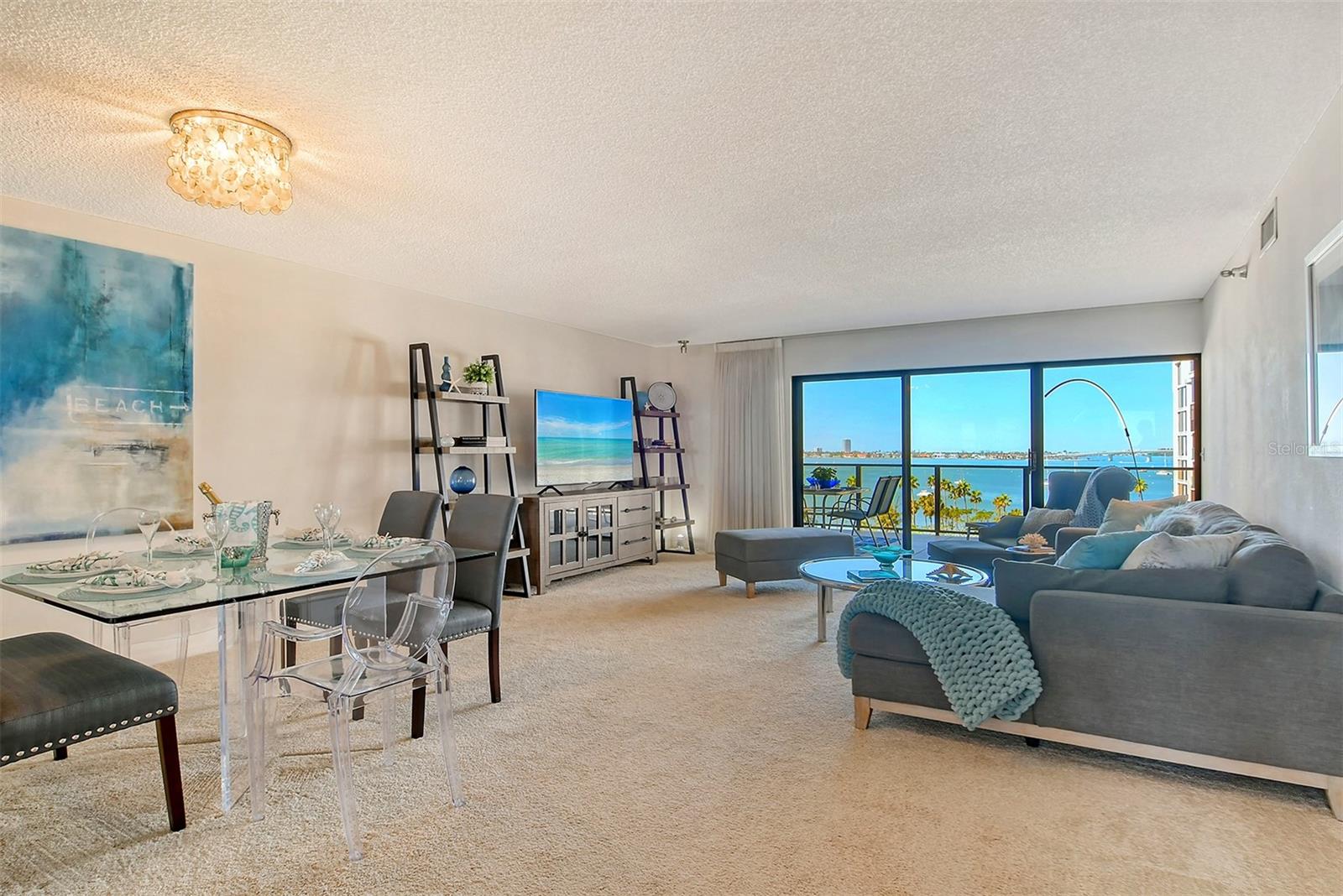 Sensational Sarasota Bay and Sparkling Sunset Views enhance this rarely available Penthouse peacefully tucked away in the heart of downtown Sarasota. Welcome to Palm Place, a gated boutique size urban oasis, offering a lifestyle of convenience and indulgence. From the moment you enter this beautifully maintained 2 bedroom, 2 bath residence your eyes are immediately drawn to the dazzling water, bridge and city views. A wide foyer opens to a brightly lit wraparound kitchen with a breakfast nook featuring eastern city views and a separate dining area adjacent to the great room. The kitchen offers granite countertops, updated appliances, sleek modern cabinetry, and full size washer & dryer, with ample storage and counters that maximize utility and entertaining space. The central living space spans the center of the home, with a wall of glass sliders opening to the oversized terrace, where you are sure to enjoy the fresh balmy breezes, picturesque day-and nighttime views, along with all the daily boating activity near Marina Jacks and beyond to the barrier islands. Two large bedrooms adjoin the great room, with separation from one another to ensure ideal privacy. The owners’ suite is a spacious retreat with private access to the terrace, dual closets, a bay window with a cozy bench, relaxing water views, and an en-suite bathroom featuring Jerusalem marble & convenient built-ins. The eastern-facing guest room is enhanced by sunrise city views, ample closet space, and immediate access to the guest bathroom with marble shower. Two underbuilding tandem parking spaces and a large storage unit are assigned to this perfect city retreat and there is plenty of guest parking. Come and discover the allure of Palm Place, a newly updated, gated and secured building with a sparkling private pool, perfectly located on idyllic tree-lined Palm Avenue, where easy access to cultural gems meets the allure of St. Armand's, Lido & Longboat Key, and a variety of nearby beaches. This beautiful penthouse isn't just a home; it's an invitation to savor a lifestyle that seamlessly blends sophistication with coastal charm. Don't miss the opportunity to own show-stopping views at this enviable address of this rare opportunity to own downtown Sarasota!