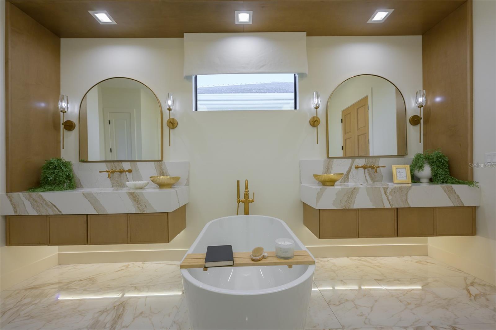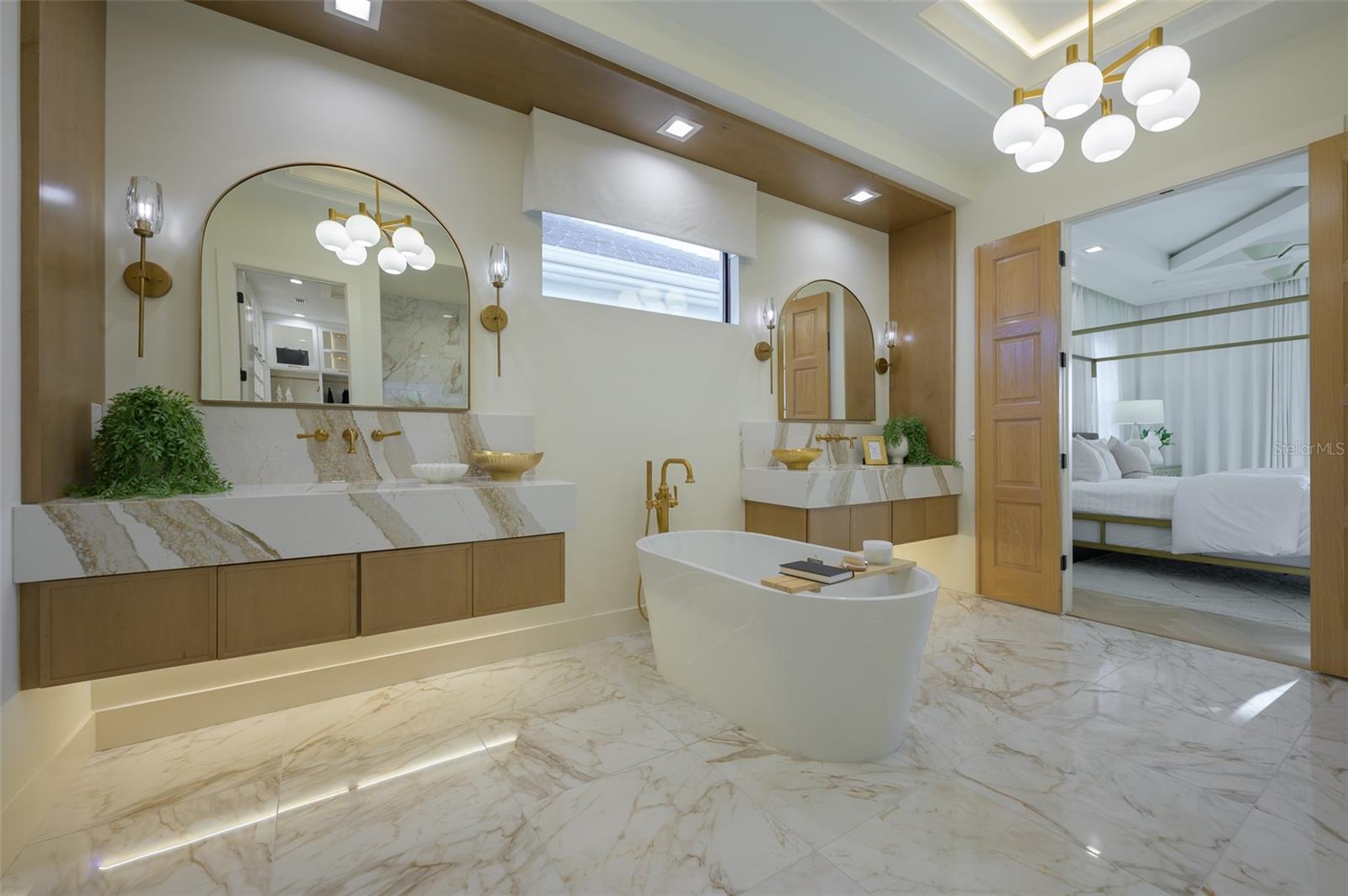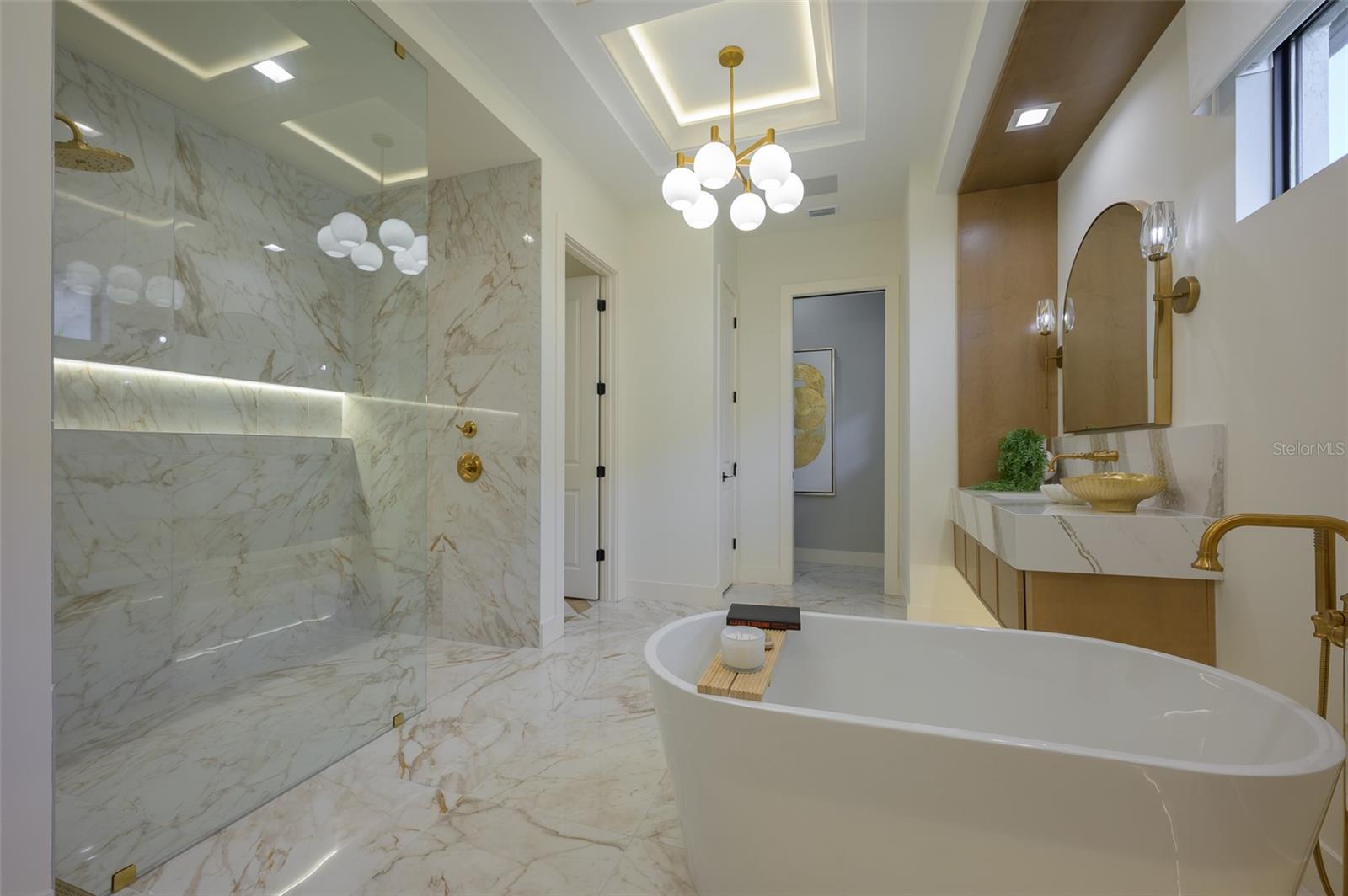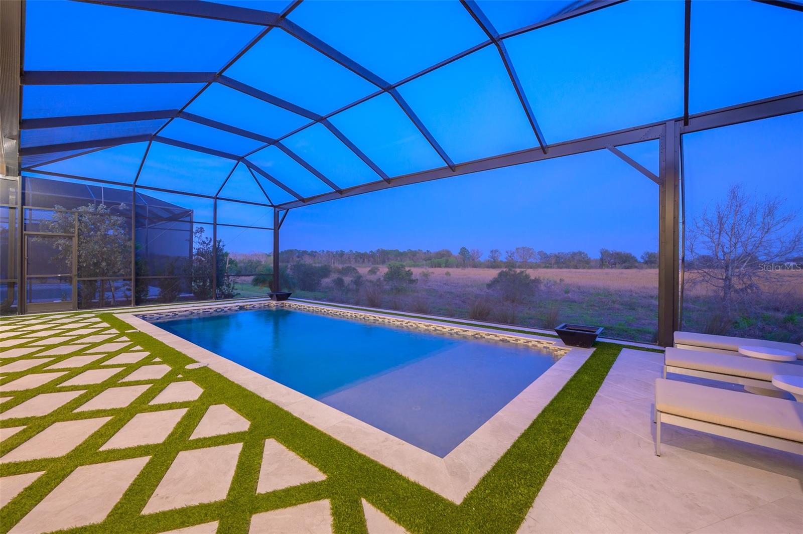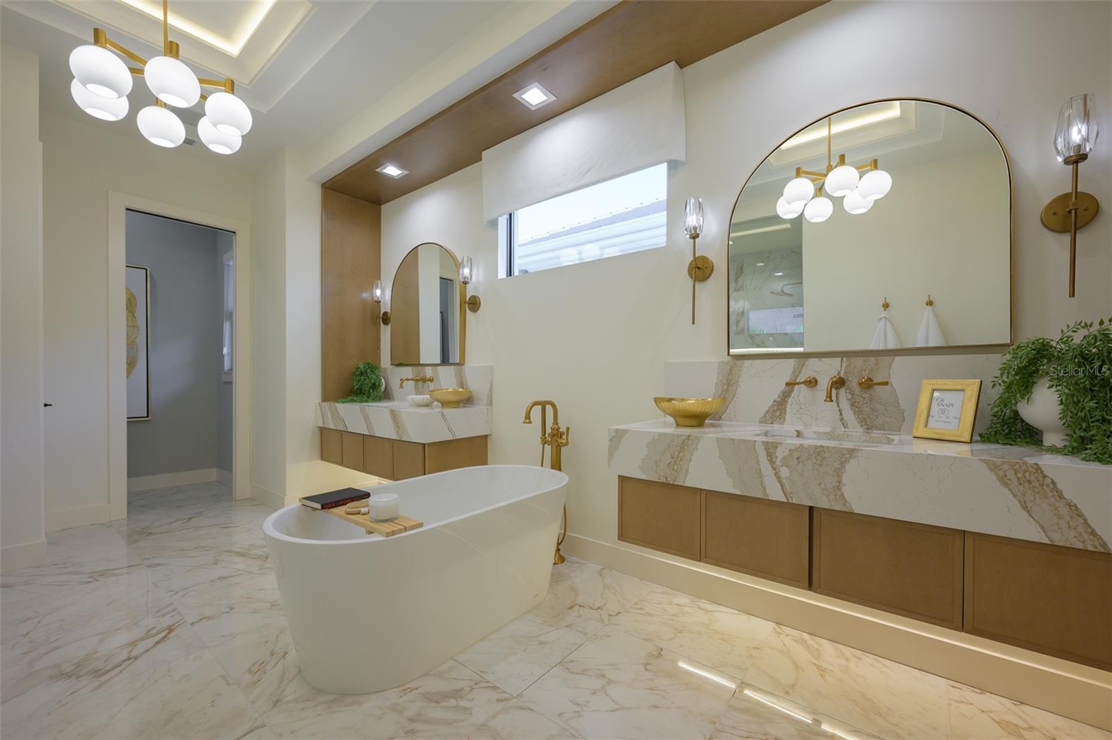 Step into the pinnacle of modern luxury with the Sapphire, an award-winning Lee Wetherington model home, now available for purchase in Wild Blue at Waterside. Recognized as the Best Overall Winner at the 2024 Parade of Homes, this fully furnished showpiece masterfully blends architectural drama, elegant materials and thoughtful functionality throughout its layout. With three bedrooms, an office and a spacious bonus room, every corner of this home has been intentionally designed. The gourmet kitchen features a hidden walk-in pantry, while the breakfast nook is anchored by upgraded corner sliding glass doors that open to the outdoors, bringing in abundant natural light and connecting seamlessly to the outdoor kitchen and travertine pool patio, detailed with a striking crisscross astroturf design. Inside, herringbone wood flooring provides a timeless, elegant foundation throughout the home. The coffered ceilings feature upgraded LED accent lighting, and the built-in gas fireplace adds warmth and ambiance. The office showcases a full-length upgraded corner window, and the laundry room is conveniently connected to the owner’s suite closet, which has been custom built out with boutique-style lighting and cabinetry. Each bedroom offers its en-suite bath and walk-in closet, providing privacy and comfort for residents and guests alike. Additional highlights include an eastern-facing preserve view, ideal for peaceful mornings and wildlife watching, upgraded paver driveway detailing, and designer front elevation accents that elevate the home’s curb appeal. In the sought-after Waterside Village of Lakewood Ranch, Wild Blue offers residents exclusive access to a world-class, resort-style clubhouse with concierge service, a theater, fitness studio, workout classrooms, golf simulator and billiards. The outdoor amenities are equally impressive with a restaurant and patio bar, two resort-style pools, a yoga lawn, putting green, miles of scenic walking trails, and the midway sports complex with eight pickleball courts, six tennis courts, a pro shop, dog park and playground. The list price includes over $200,000 in custom furnishings, electronics, and artwork, as well as more than $300,000 in interior and structural design upgrades, making this a rare turnkey opportunity for those who want a refined, move-in-ready home without the time and effort of building or personalizing from scratch. Schedule your private showing today to experience this exceptional home firsthand. Ready for Immediate Occupancy!
