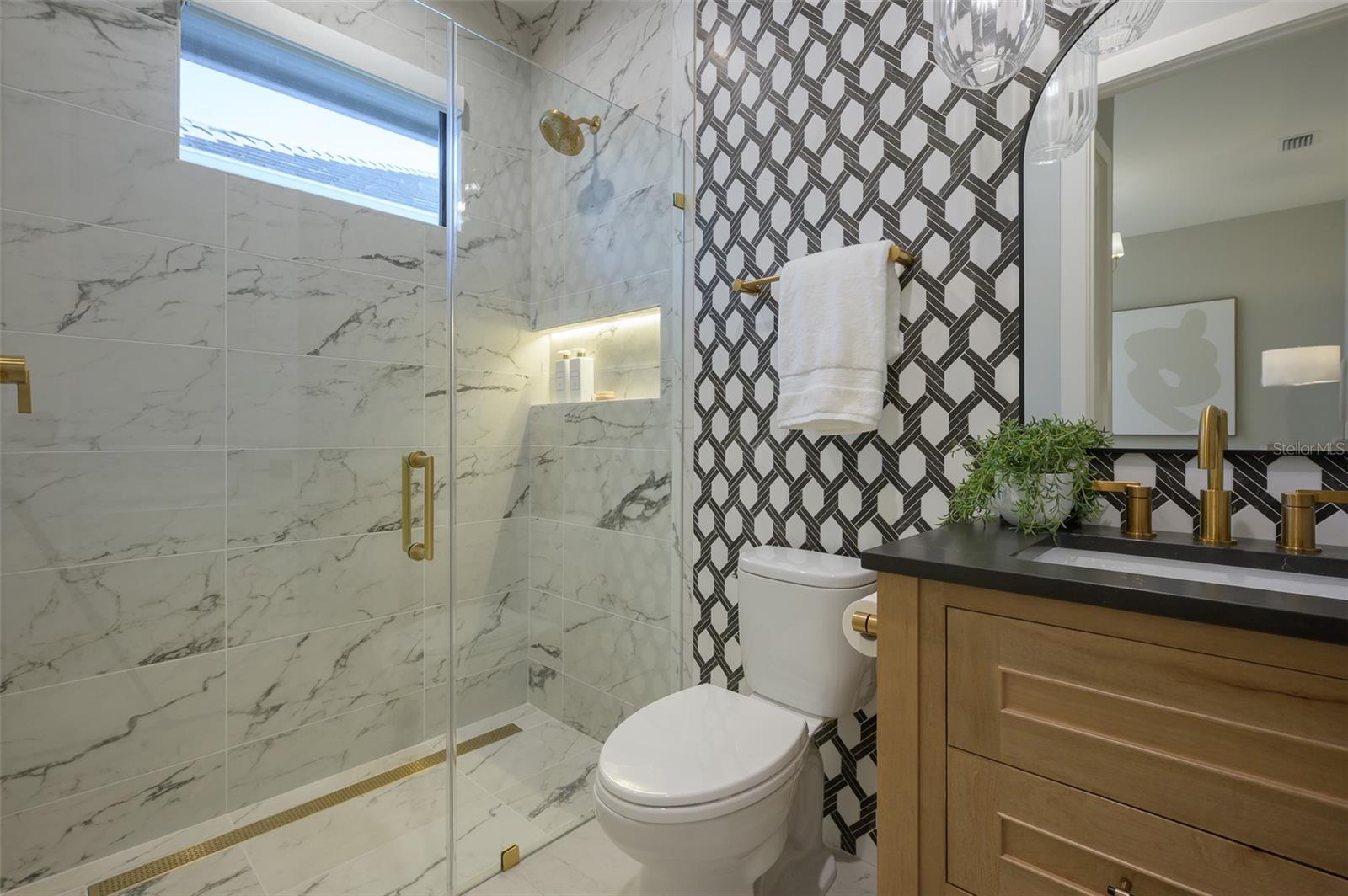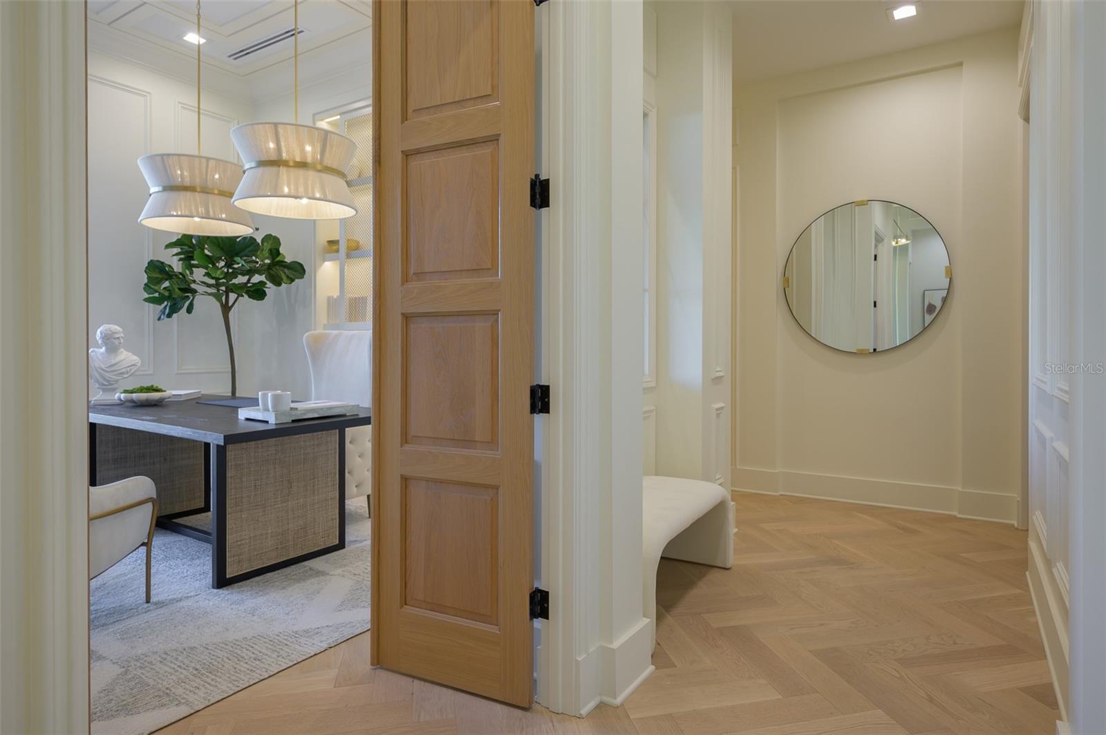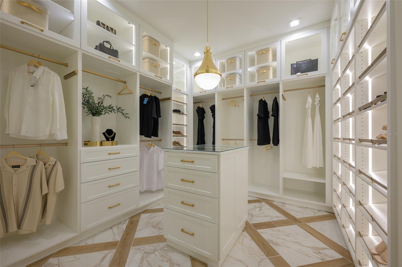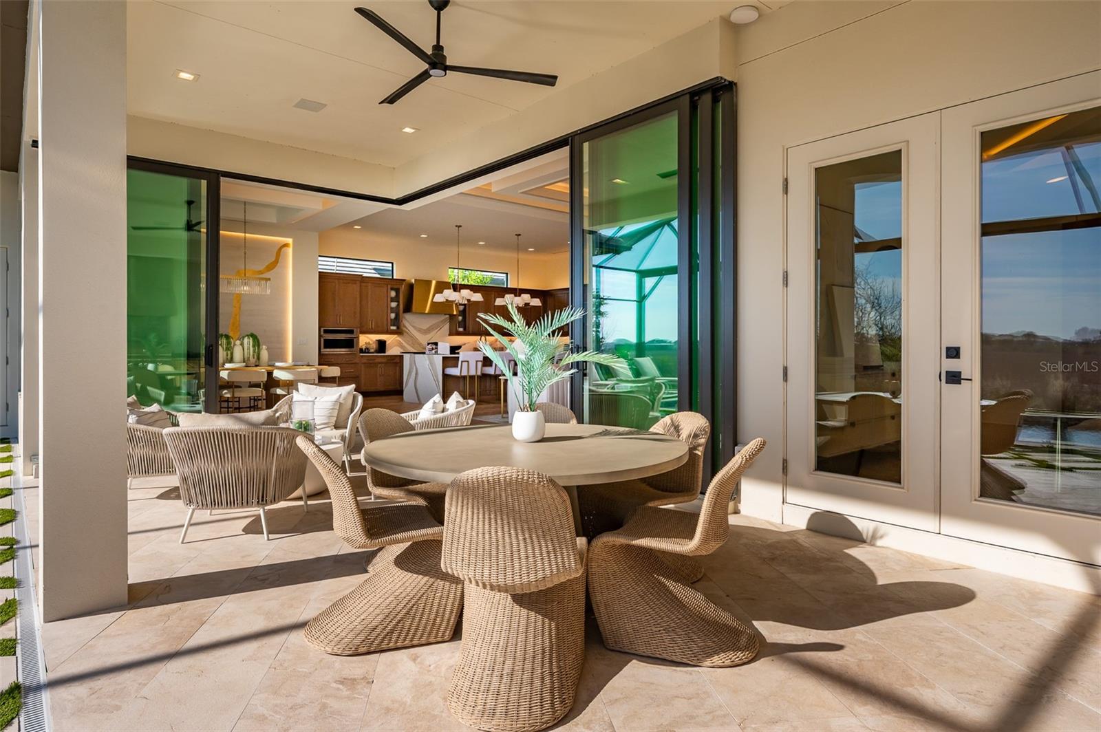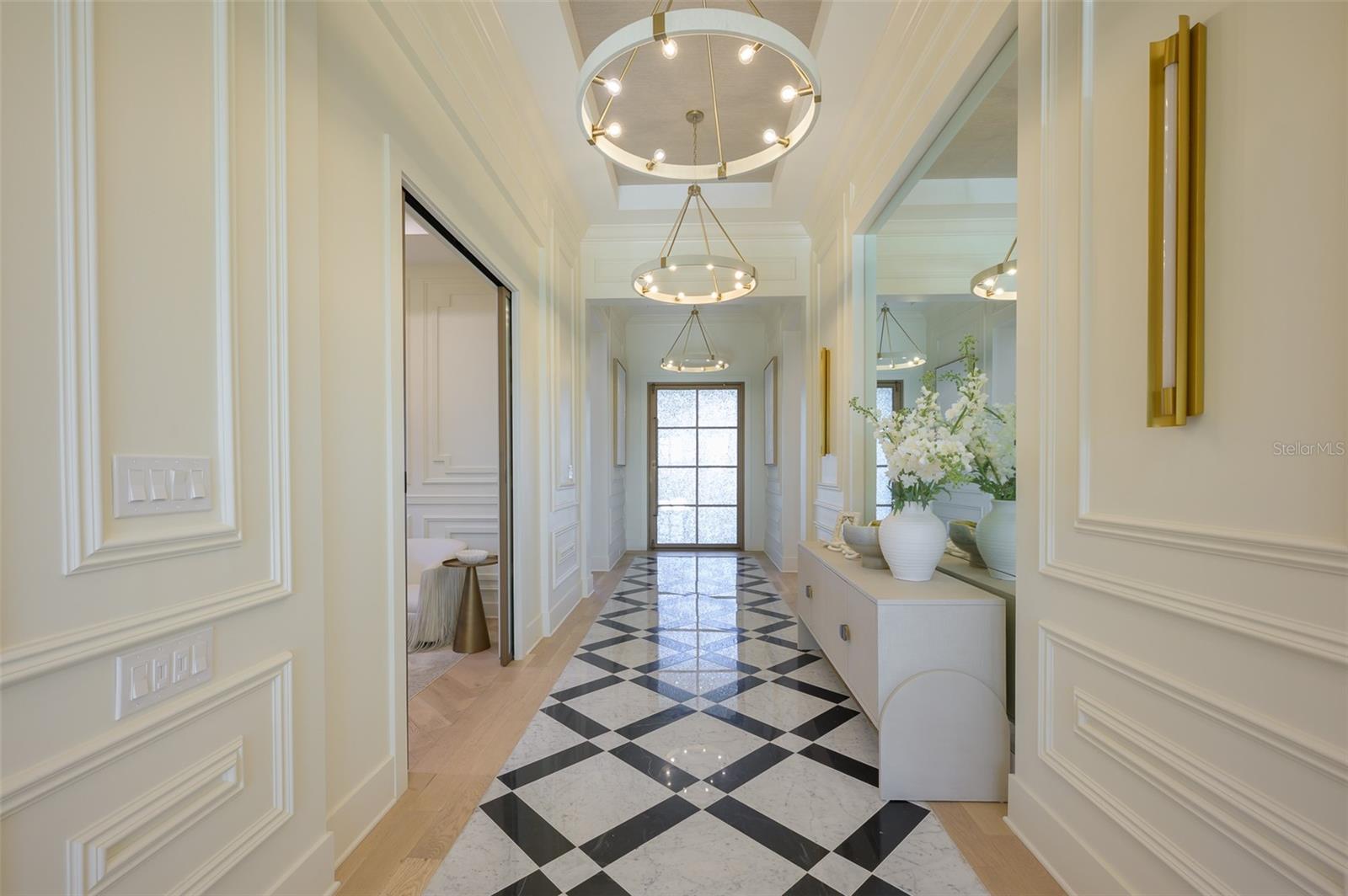 Step into the pinnacle of modern luxury with the Sapphire, an award-winning Lee Wetherington model home, now available for purchase in Wild Blue at Waterside. Recognized as the Best Overall Winner at the 2024 Parade of Homes, this fully furnished showpiece masterfully blends architectural drama, elegant materials and thoughtful functionality throughout its layout. With three bedrooms, an office and a spacious bonus room, every corner of this home has been intentionally designed. The gourmet kitchen features a hidden walk-in pantry, while the breakfast nook is anchored by upgraded corner sliding glass doors that open to the outdoors, bringing in abundant natural light and connecting seamlessly to the outdoor kitchen and travertine pool patio, detailed with a striking crisscross astroturf design. Inside, herringbone wood flooring provides a timeless, elegant foundation throughout the home. The coffered ceilings feature upgraded LED accent lighting, and the built-in gas fireplace adds warmth and ambiance. The office showcases a full-length upgraded corner window, and the laundry room is conveniently connected to the owner’s suite closet, which has been custom built out with boutique-style lighting and cabinetry. Each bedroom offers its en-suite bath and walk-in closet, providing privacy and comfort for residents and guests alike. Additional highlights include an eastern-facing preserve view, ideal for peaceful mornings and wildlife watching, upgraded paver driveway detailing, and designer front elevation accents that elevate the home’s curb appeal. In the sought-after Waterside Village of Lakewood Ranch, Wild Blue offers residents exclusive access to a world-class, resort-style clubhouse with concierge service, a theater, fitness studio, workout classrooms, golf simulator and billiards. The outdoor amenities are equally impressive with a restaurant and patio bar, two resort-style pools, a yoga lawn, putting green, miles of scenic walking trails, and the midway sports complex with eight pickleball courts, six tennis courts, a pro shop, dog park and playground. The list price includes over $200,000 in custom furnishings, electronics, and artwork, as well as more than $300,000 in interior and structural design upgrades, making this a rare turnkey opportunity for those who want a refined, move-in-ready home without the time and effort of building or personalizing from scratch. Schedule your private showing today to experience this exceptional home firsthand. Ready for Immediate Occupancy!