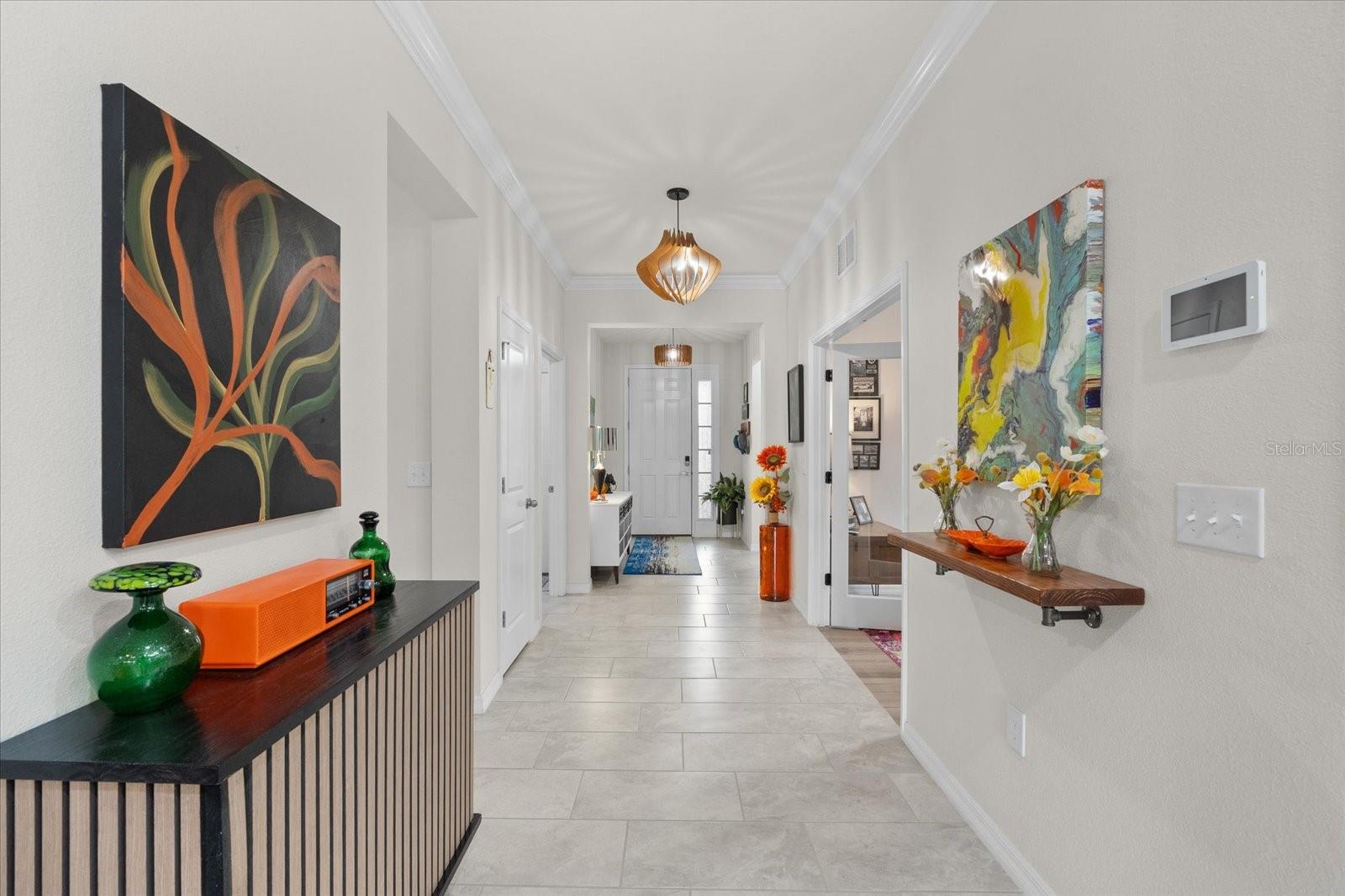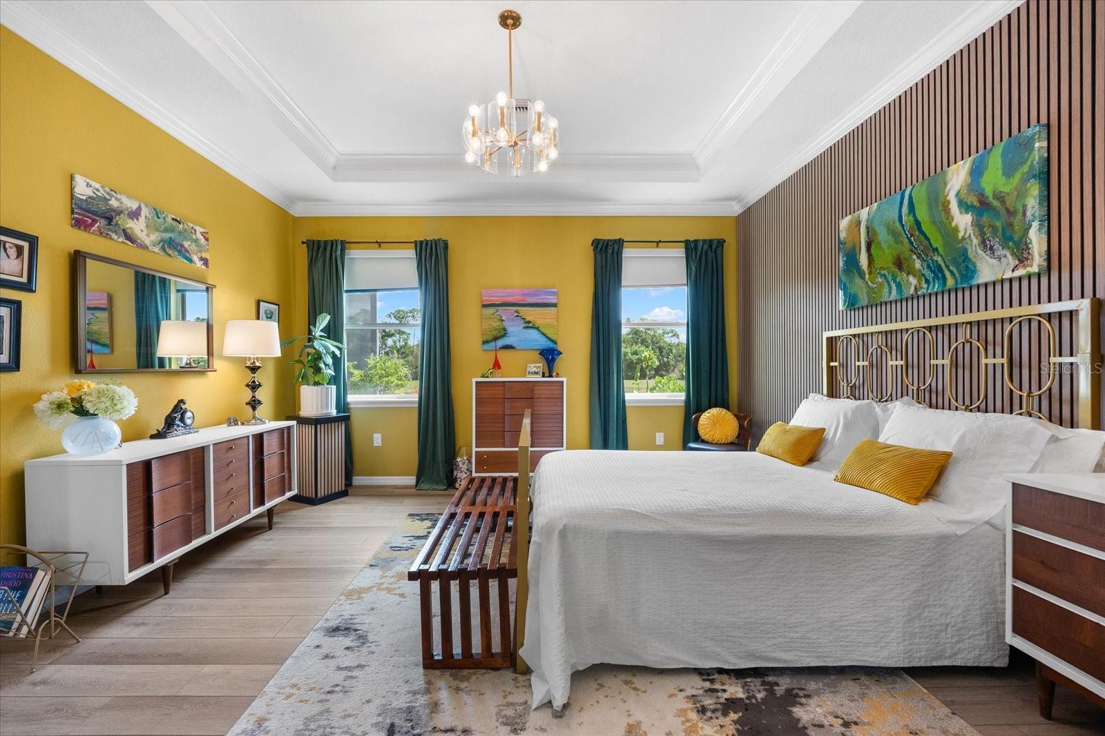 Million-Dollar Views Without the Million-Dollar Price Tag! This stunning, custom-upgraded Bay Landing home is a true standout. Created by a local artist and retired homebuilder, this 3-bed, 2.5-bath Smart home offers unmatched indoor-outdoor living with serene water views framed by majestic trees, a backdrop that won't be developed. Inside, an open floor plan, high ceilings, and stylish upgrades create a space that's both inviting and functional. Standout features include crown molding, custom lighting, upgraded cabinetry, quartz countertops, a freestanding tub in the primary suite, and a decorative custom slat wall that adds a unique designer touch to the master retreat. The spacious home office/optional 4th bedroom offers versatility, while every detail has been thoughtfully designed for both beauty and practicality. The expansive lanai boasts a $13,000+ extension with pavers, a hurricane-protected covered area, and plenty of room for a hot tub, all while preserving the tranquil waterfront setting. Enjoy the best of Bay Landing's resort-style amenities: a community pool, fitness center, playground, and dog park. Plus, just 3 miles away, Waterside Place offers a vibrant lifestyle with its renowned Farmers Market, live music events, food trucks, waterfront dining, boutique shopping, scenic parks, and scenic walking trails. When you're ready to explore further, you're just minutes from Lakewood Ranch Main Street (4 mi), UTC Mall (4 mi), Downtown Sarasota (6 mi), and Siesta Key & Lido Beaches (8 mi). With NO yearly CDD fees and ULTRA-LOW HOA dues, this move-in-ready masterpiece is a rare find. Furniture & artwork available separately - make your move effortless. The dream Florida lifestyle! Don't miss out - schedule your showing today.