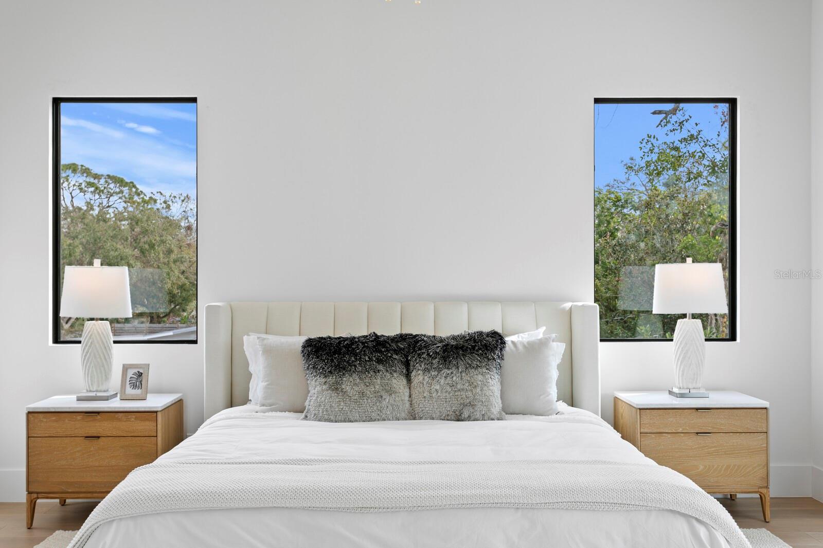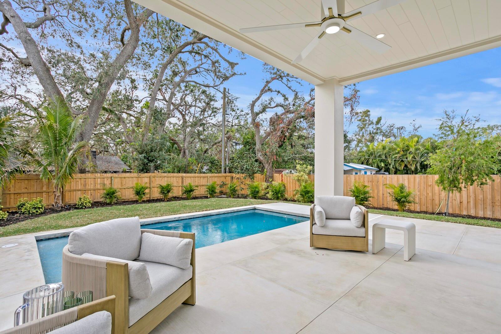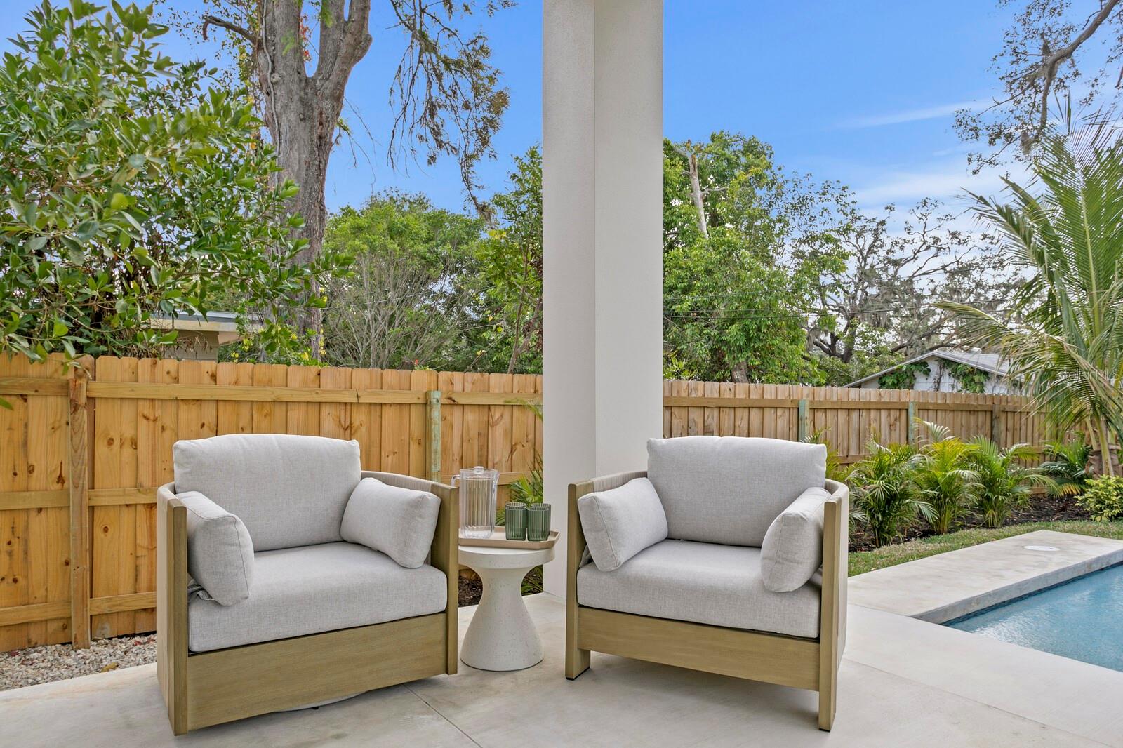 Easy to show. Model Home Available to view at 2554 Arlington Street. Welcome to 2249 Oak Terrace, a modern masterpiece that seamlessly blends luxury, functionality, and resilience. Located in one of Sarasota’s most desirable neighborhoods, this home is a testament to thoughtful design and superior craftsmanship. Step inside to a light-filled interior with soaring 10-foot ceilings and oversized, impact-rated 9-foot windows. These windows flood the space with natural light while offering year-round efficiency and hurricane resistance. Wide-plank engineered hardwood flooring extends throughout both levels, creating a seamless flow of warmth and sophistication. At the heart of the home lies the chef-inspired kitchen, a true standout with custom cabinetry designed for beauty and practicality. The soft-close cabinets feature integrated pullouts, hidden trash and recycling compartments, and ceiling-height upper cabinets for additional storage. The rich wood grain of the lower cabinets contrasts elegantly with the quartz waterfall-edge island, creating a striking centerpiece. High-performance GE Monogram appliances include a double wall oven, induction cooktop, and built-in microwave, offering everything you need for effortless meal preparation. A built-in buffet with a wine fridge completes the space, making it ideal for entertaining. The open-concept living and dining areas flow seamlessly to the outdoor living space. Large sliding glass doors open to a covered lanai overlooking a sparkling pool and lush landscaping. This private oasis is perfect for hosting gatherings or enjoying Sarasota’s year-round sunshine in tranquility. The primary suite, located on the second floor, offers a luxurious retreat with two spacious walk-in closets and a spa-like bathroom featuring a freestanding soaking tub, an oversized walk-in shower, and elegant modern finishes. Three additional bedrooms provide flexibility for family or guests, while a versatile loft offers space for a home office, media room, or gym. Designed for maximum comfort and efficiency, the home features a dual-zone, dual-system air conditioning setup, ensuring personalized climate control for both floors. The oversized, insulated garage door enhances energy efficiency and accommodates larger vehicles or storage needs. Every detail has been thoughtfully considered, from the designer lighting and high-end fixtures to the hurricane-rated construction and impact-resistant materials. A spacious laundry room with custom cabinetry and energy-efficient systems further elevates the home’s convenience and functionality. Perfectly located just minutes from Sarasota’s vibrant downtown, world-renowned beaches, and top-rated schools, 2245 Oak Terrace offers the ultimate in modern living. Whether you’re exploring cultural attractions, enjoying fine dining, or relaxing on the coast, this home provides the perfect base for your lifestyle. From its exquisite finishes to its innovative design, 2245 Oak Terrace is more than a home—it’s an experience. Schedule your private showing today and discover the finest in Sarasota living. Pictures are of Model Home at 2554 Arlington Street, Sarasota. Pool Orientation is different than in Photos.
