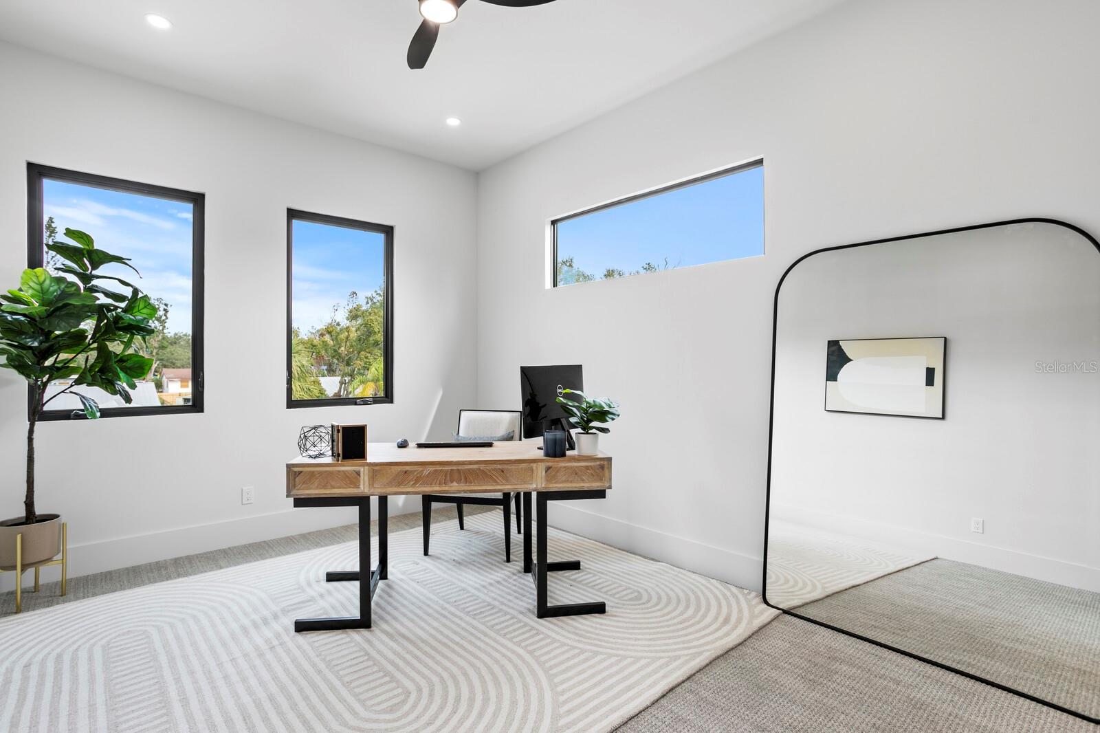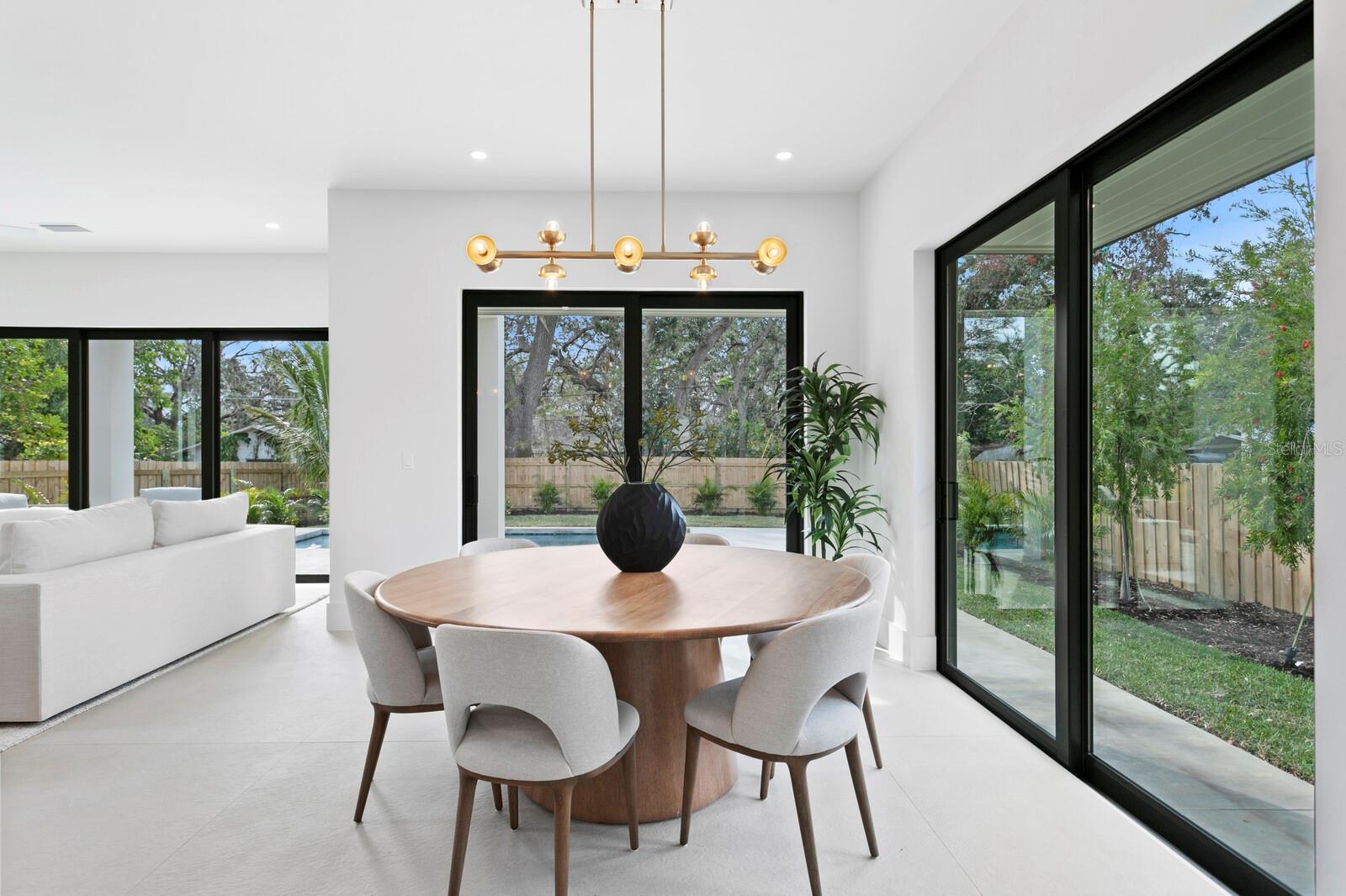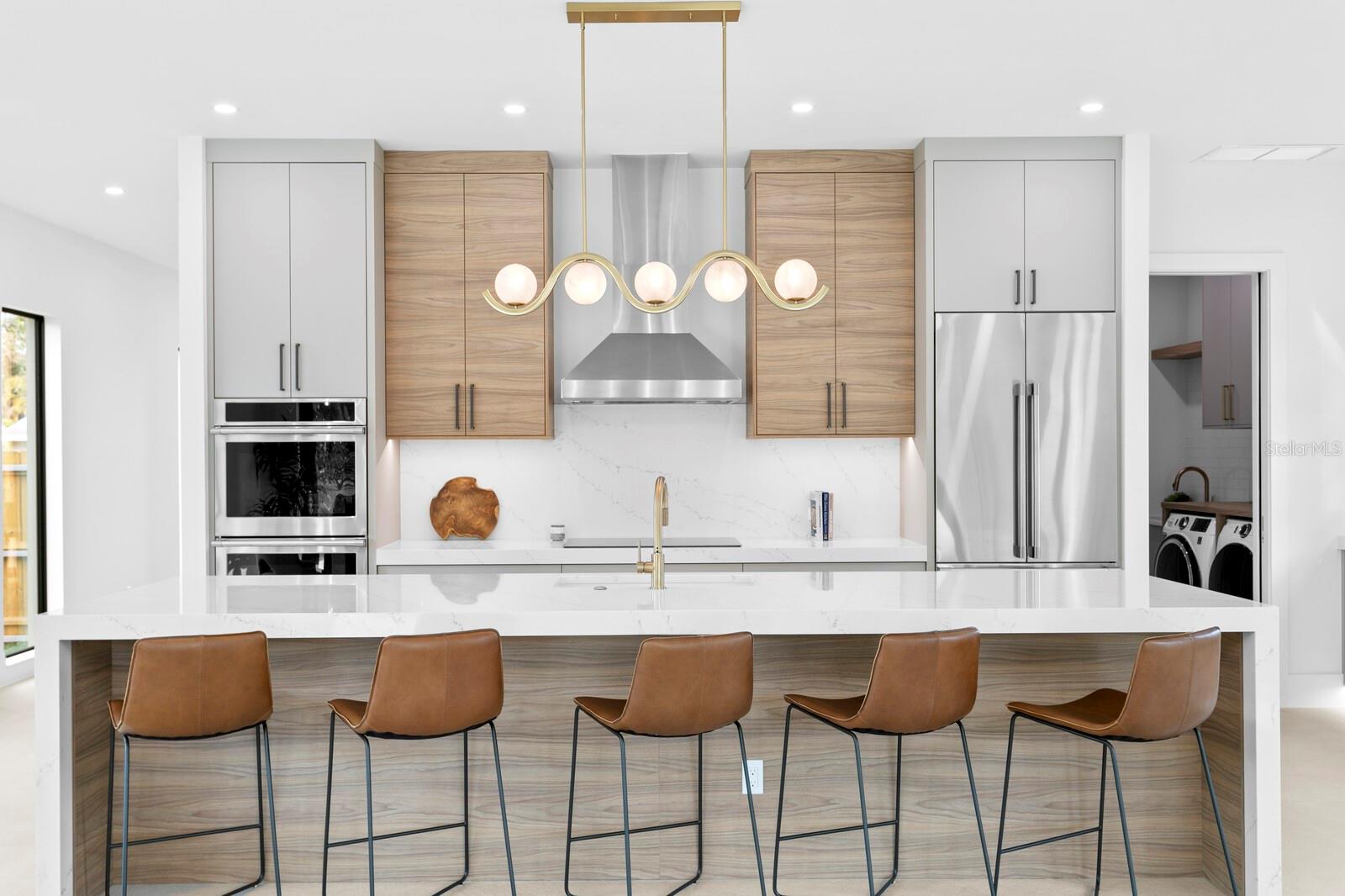 Easy to show. Model Home Available to view at 2554 Arlington Street. Welcome to 2249 Oak Terrace, a modern masterpiece that seamlessly blends luxury, functionality, and resilience. Located in one of Sarasota’s most desirable neighborhoods, this home is a testament to thoughtful design and superior craftsmanship. Step inside to a light-filled interior with soaring 10-foot ceilings and oversized, impact-rated 9-foot windows. These windows flood the space with natural light while offering year-round efficiency and hurricane resistance. Wide-plank engineered hardwood flooring extends throughout both levels, creating a seamless flow of warmth and sophistication. At the heart of the home lies the chef-inspired kitchen, a true standout with custom cabinetry designed for beauty and practicality. The soft-close cabinets feature integrated pullouts, hidden trash and recycling compartments, and ceiling-height upper cabinets for additional storage. The rich wood grain of the lower cabinets contrasts elegantly with the quartz waterfall-edge island, creating a striking centerpiece. High-performance GE Monogram appliances include a double wall oven, induction cooktop, and built-in microwave, offering everything you need for effortless meal preparation. A built-in buffet with a wine fridge completes the space, making it ideal for entertaining. The open-concept living and dining areas flow seamlessly to the outdoor living space. Large sliding glass doors open to a covered lanai overlooking a sparkling pool and lush landscaping. This private oasis is perfect for hosting gatherings or enjoying Sarasota’s year-round sunshine in tranquility. The primary suite, located on the second floor, offers a luxurious retreat with two spacious walk-in closets and a spa-like bathroom featuring a freestanding soaking tub, an oversized walk-in shower, and elegant modern finishes. Three additional bedrooms provide flexibility for family or guests, while a versatile loft offers space for a home office, media room, or gym. Designed for maximum comfort and efficiency, the home features a dual-zone, dual-system air conditioning setup, ensuring personalized climate control for both floors. The oversized, insulated garage door enhances energy efficiency and accommodates larger vehicles or storage needs. Every detail has been thoughtfully considered, from the designer lighting and high-end fixtures to the hurricane-rated construction and impact-resistant materials. A spacious laundry room with custom cabinetry and energy-efficient systems further elevates the home’s convenience and functionality. Perfectly located just minutes from Sarasota’s vibrant downtown, world-renowned beaches, and top-rated schools, 2245 Oak Terrace offers the ultimate in modern living. Whether you’re exploring cultural attractions, enjoying fine dining, or relaxing on the coast, this home provides the perfect base for your lifestyle. From its exquisite finishes to its innovative design, 2245 Oak Terrace is more than a home—it’s an experience. Schedule your private showing today and discover the finest in Sarasota living. Pictures are of Model Home at 2554 Arlington Street, Sarasota. Pool Orientation is different than in Photos.