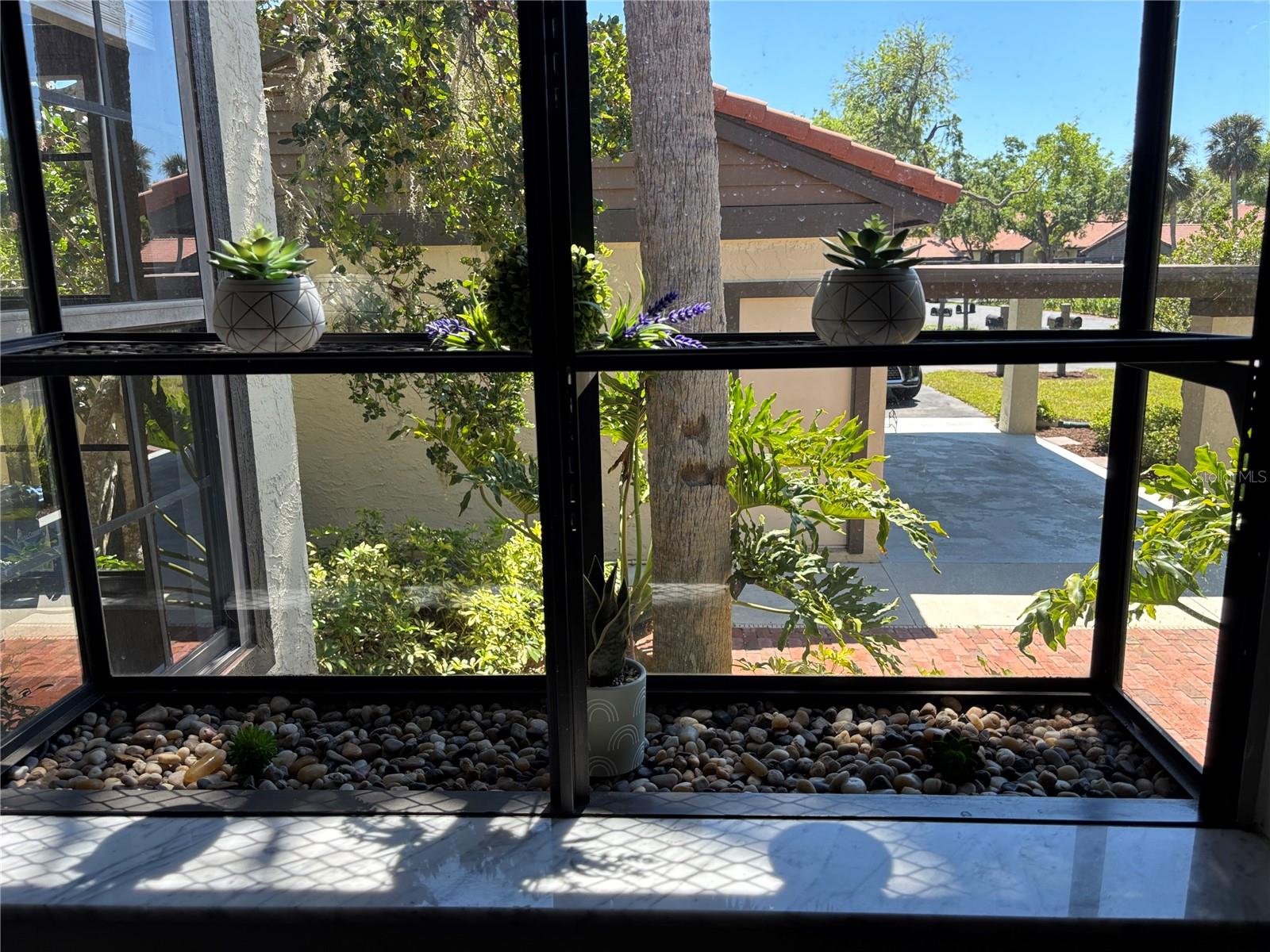 Under contract-accepting backup offers. Maintenance-Free Villa with ENCLOSED GARAGE AND COVERED CARPORT plus additional GUEST parking. Open Floor Plan with vaulted ceilings Freshly Painted. A Split Plan with two large bedrooms, two unique baths, two separate large screened porches, one off the great room and one connected to the primary bedroom! Spacious kitchen with light cabinets, new countertops and stainless steel appliances includes plenty of floor space for a table and chairs or room for an island. Breakfast bar with open access to the Great Room and Greenhouse window for your plants or herb gardens. The kitchen drawers and cabinet doors are all soft close and the cabinets have pull-out shelves! Additional features: Luxury Vinyl Tile Flooring THROUGHOUT, Full Sized stack Washer and Dryer, new water heater and a nearly new central air system and outside condenser replaced in 2016 and serviced in 2023. NEW ROOF! The attractive built-in shelving in the great room will highlight your entertainment system, library or a prominent display area for your collectibles. The monthly fee covers exterior grounds maintenance, common area insurance, recreation facilities, 2 pools, one heated one not heated, tennis courts, basketball court, clubhouse and fitness center. The community has 21 villa buildings totaling 42 units. You will be amazed with the mature, natural beauty surrounding a central lake, walking paths and yet conveniently located in close proximity to the LEGACY TRAIL. Affordability, Community Enhancements and a Balanced New Lifestyle, describe this Charming VILLA. The Lakes of Sarasota is a tranquil enclave offering Secluded clusters of natural, maintenance-free Villas close to Downtown Sarasota and her pristine Sandy Beaches. Welcome to your new home!