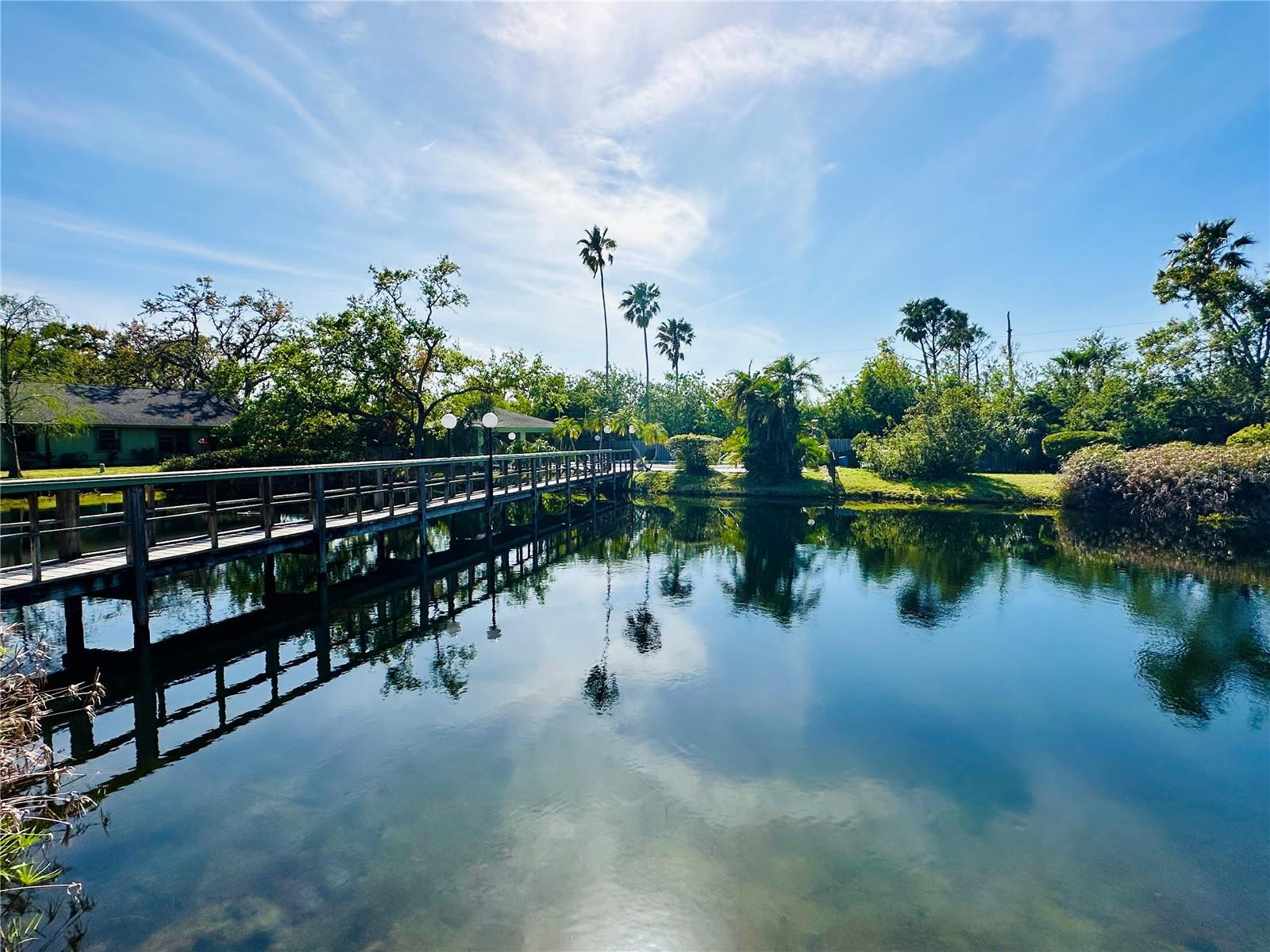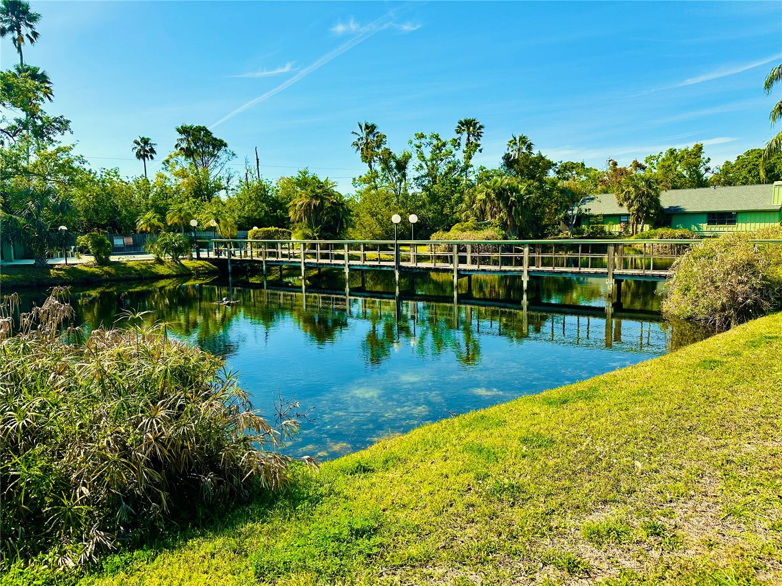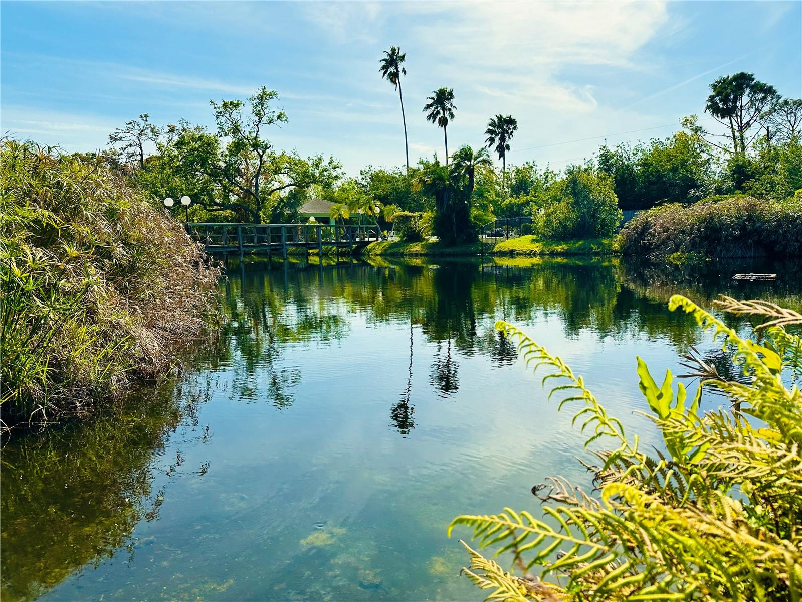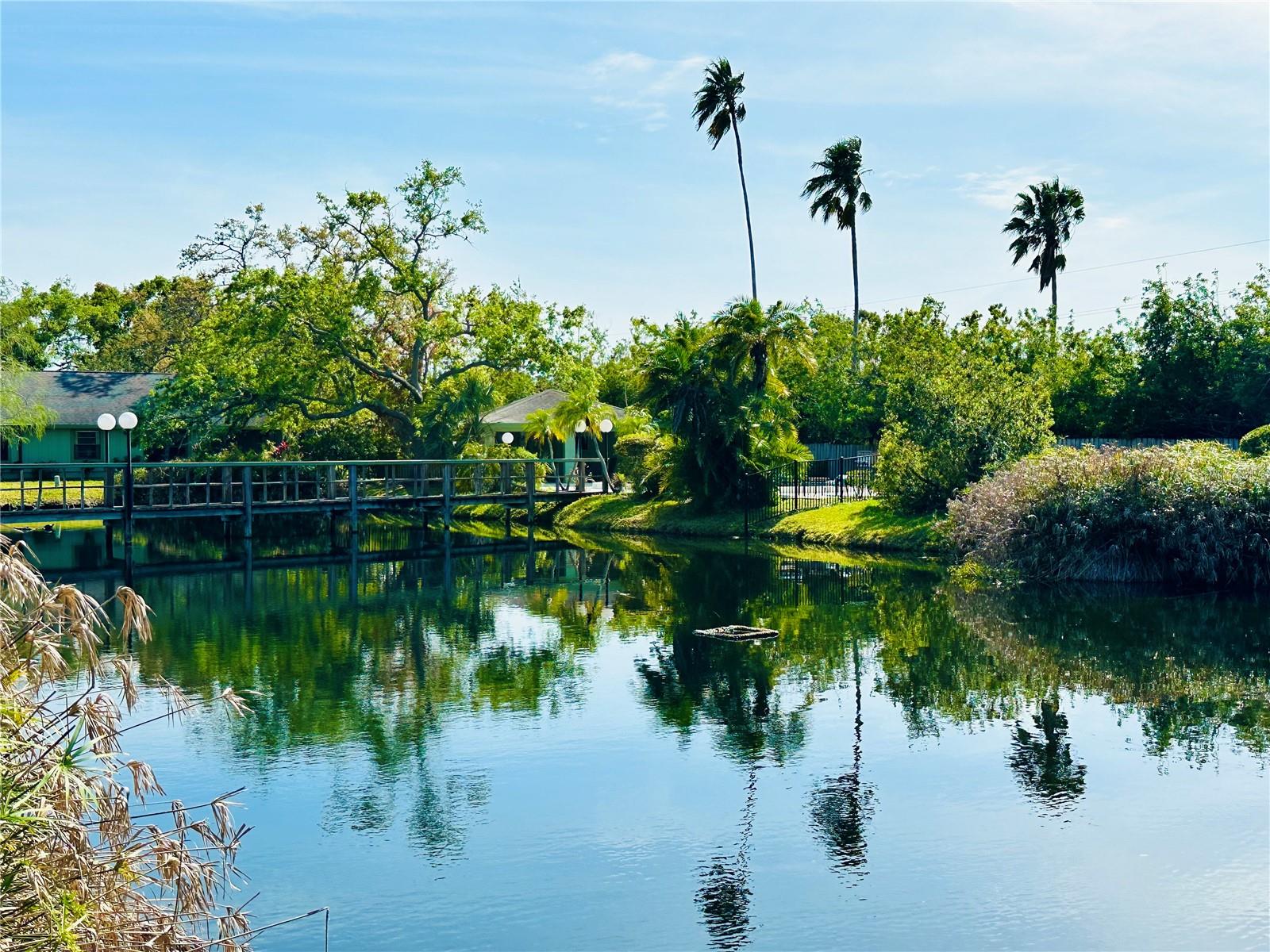 Luxurious living with all the upgrades less than a mile from FSU Center for Performing Arts, Ringling Museum, New World College, Asolo Theater, and SRQ (10 minutes to downtown, 15 minutes to St Armand’s Circle/Lido Key Beach, 20 minutes to Siesta Key). This condo has been renovated to the hilt to give the feel of living in a luxury hotel. Enjoy high-end, first-class comfort and style in a superb location for a fraction of what you would pay for a comparable unit just a couple of miles south in downtown. New hurricane windows 2025, freshly painted interior and exterior. New roof in 2022. New A/C unit in 2021. Abundance of natural light. Kitchen: new white with gold, blue, and gray marbled quartz countertops, new stainless double sink with disposal, new faucet fixtures, new reverse osmosis tankless water filtration system, lots of cabinets and a pantry for storage. Stainless refrigerator, black glass-top stove, dishwasher. Bathrooms: new fixtures, gorgeous Victorian wooden vanities, multi-layered filtration systems on sinks so you can brush your teeth and wash your face with the cleanest water. Florida room (aka lanai) is fully enclosed with big sliding glass windows overlooking new landscaping (palm trees and flowers) with new tropical ceiling fan. Like-new gray waterproof laminate wood floors throughout. Large family room open-space area for couches, tables, dining, and such. Front-loading nearly-new washer and dryer in their own closeted area with storage shelves above. Generous primary suite with walk-in closet, barn door to bath and dressing area. Charming guest bedroom with crown molding and white piping on the walls, baseboards and ceiling light details add class and style. Front porch big enough for sitting or for large potted plants. Outdoor storage closet (that locks securely) for storing your gardening tools, beach chairs and bicycle. Lawn maintenance included. Sprinkler system for lawn. Short stroll to the pool just across the quaint wooden private pedestrian bridge over the pond where the birds and turtles frolic. Your own parking space in front of the unit under the cover of a carport. Plenty of guest parking available nearby. Pets allowed up to 30 lbs. Move-in ready with some furnishings available upon request. (Seller provided description)
