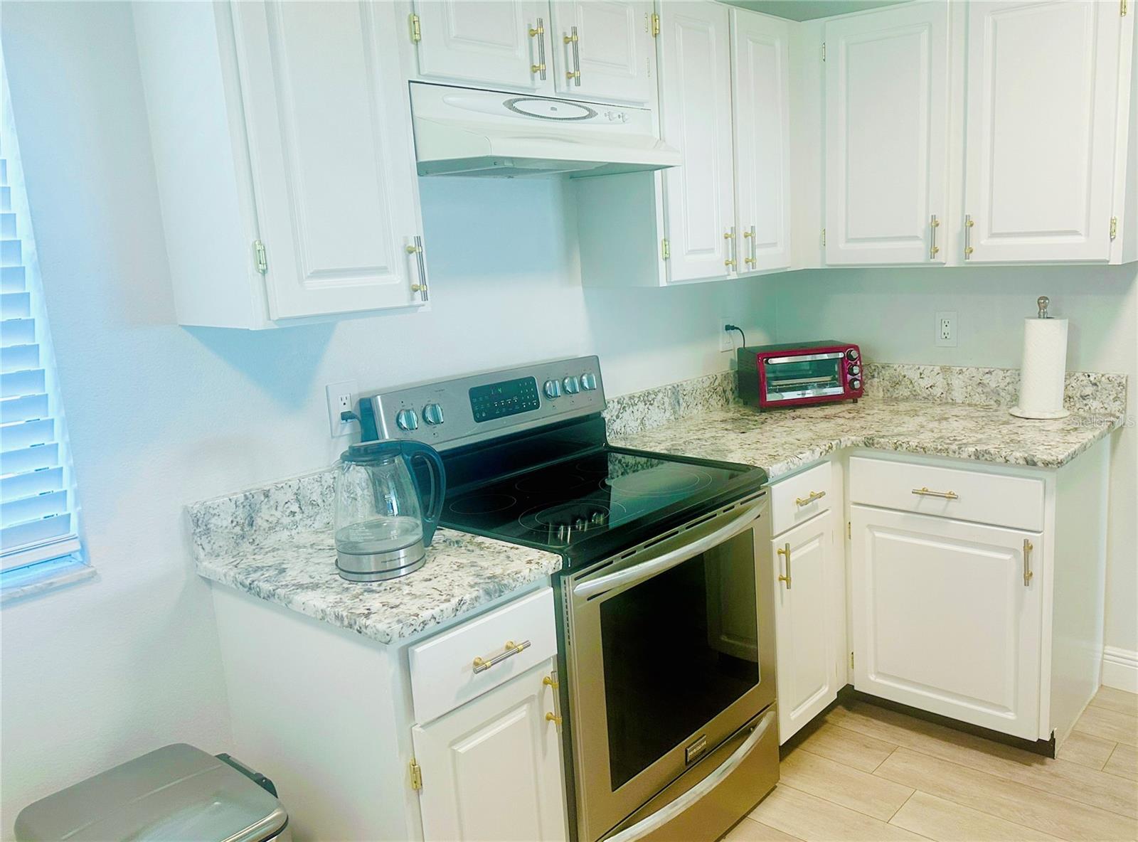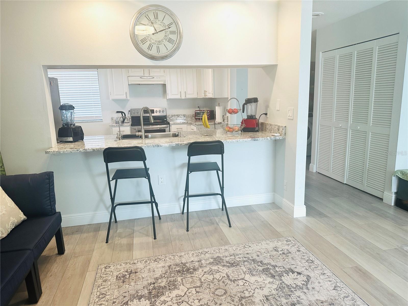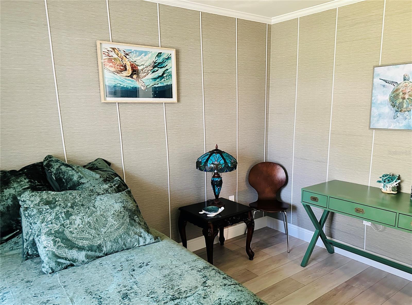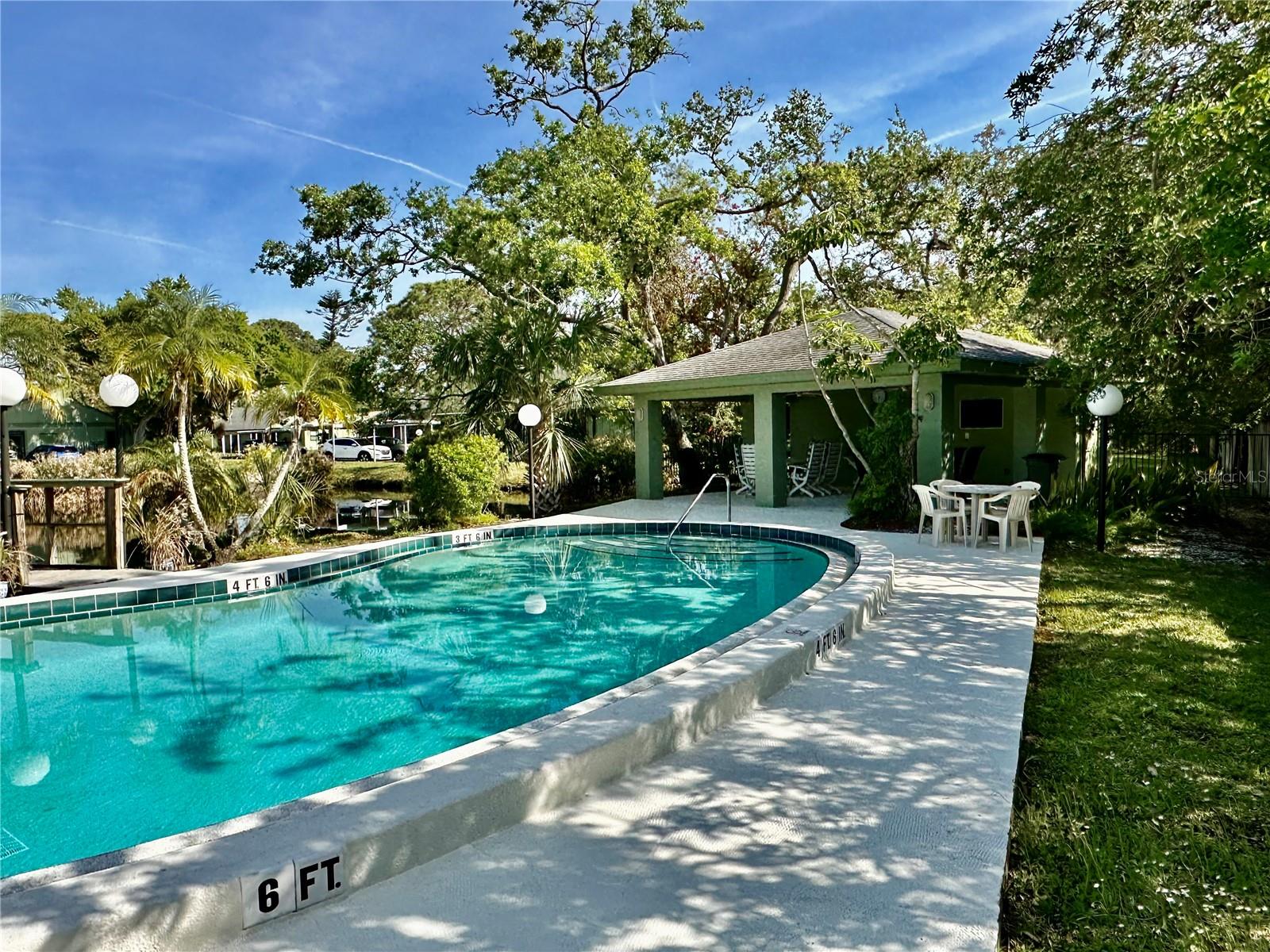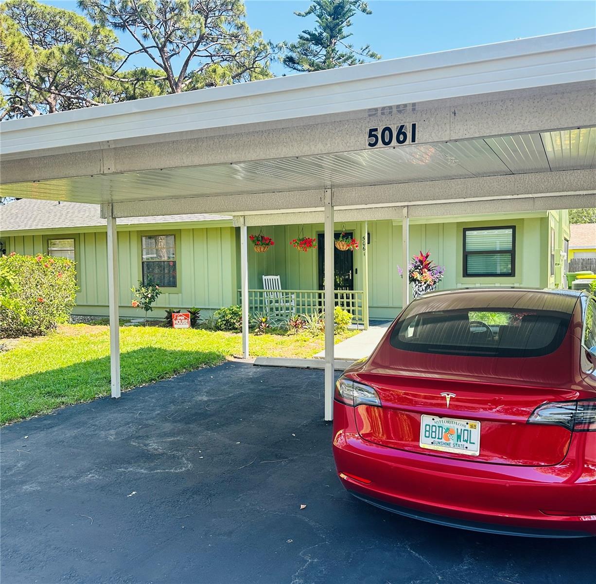 Luxurious living with all the upgrades less than a mile from FSU Center for Performing Arts, Ringling Museum, New World College, Asolo Theater, and SRQ (10 minutes to downtown, 15 minutes to St Armand’s Circle/Lido Key Beach, 20 minutes to Siesta Key). This condo has been renovated to the hilt to give the feel of living in a luxury hotel. Enjoy high-end, first-class comfort and style in a superb location for a fraction of what you would pay for a comparable unit just a couple of miles south in downtown. New hurricane windows 2025, freshly painted interior and exterior. New roof in 2022. New A/C unit in 2021. Abundance of natural light. Kitchen: new white with gold, blue, and gray marbled quartz countertops, new stainless double sink with disposal, new faucet fixtures, new reverse osmosis tankless water filtration system, lots of cabinets and a pantry for storage. Stainless refrigerator, black glass-top stove, dishwasher. Bathrooms: new fixtures, gorgeous Victorian wooden vanities, multi-layered filtration systems on sinks so you can brush your teeth and wash your face with the cleanest water. Florida room (aka lanai) is fully enclosed with big sliding glass windows overlooking new landscaping (palm trees and flowers) with new tropical ceiling fan. Like-new gray waterproof laminate wood floors throughout. Large family room open-space area for couches, tables, dining, and such. Front-loading nearly-new washer and dryer in their own closeted area with storage shelves above. Generous primary suite with walk-in closet, barn door to bath and dressing area. Charming guest bedroom with crown molding and white piping on the walls, baseboards and ceiling light details add class and style. Front porch big enough for sitting or for large potted plants. Outdoor storage closet (that locks securely) for storing your gardening tools, beach chairs and bicycle. Lawn maintenance included. Sprinkler system for lawn. Short stroll to the pool just across the quaint wooden private pedestrian bridge over the pond where the birds and turtles frolic. Your own parking space in front of the unit under the cover of a carport. Plenty of guest parking available nearby. Pets allowed up to 30 lbs. Move-in ready with some furnishings available upon request. (Seller provided description)