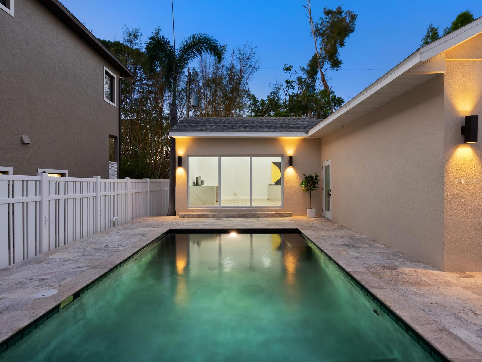 In a prime location just moments from Southside Village, Sarasota Memorial Hospital, downtown and Arlington Park, this stunning home blends modern luxury with effortless convenience. The main house offers a bright, open floor plan with three bedrooms and 2.5 baths. A newly built separate guesthouse studio with a full bath provides a relaxing retreat for visitors, an au pair or an additional workspace. Enjoy views of the new sparkling pool and paver back patio from the French doors that open out from the main house living area. The two-car garage with gated entry is also a new addition to this ideal property. The first floor of the main house is bright with natural light and features the main living areas, kitchen, dining and powder bath. Upstairs, enter the lavish primary suite through double doors and experience an expansive custom walk-in closet and designated office. The other two guest bedrooms rest on either side of the bright and purposeful upper foyer overlook. Thoughtfully designed for style and sustainability, the property boasts xeriscaping for low maintenance. With an unbeatable lifestyle near top-tier amenities, this exceptional home with all one could need is a rare find.