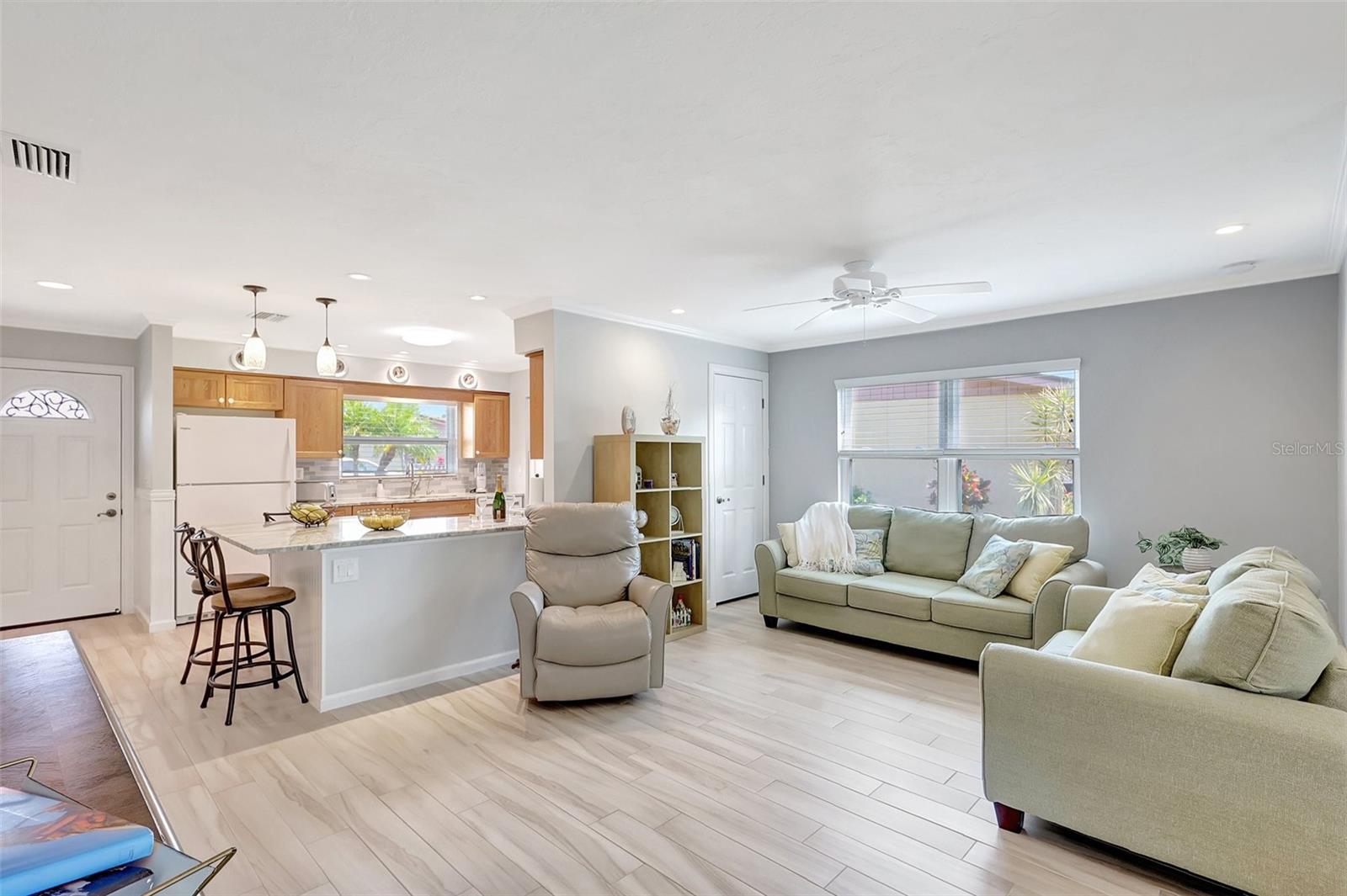 PRICE IMPROVED ready to sell and a MUST SEE impeccable gem!! This is the one you've been looking for! Beautifully recently updated 2-bedroom, 2-bathroom villa. Nestled in a peaceful cul-de-sac within the sought-after maintenance-free 55+ community of Lake Tippecanoe, this charming well-appointed end-unit villa is ready to impress! The home features a bright, spacious, open floor plan, with an abundance of storage/closets and high-end finishes. Recent upgrades include: porcelain tile flooring and recessed lighting throughout, newer blinds, doors, plus granite countertops in both kitchen and bathrooms, and tiled showers with glass doors for an elegant touch. Offering additional improvements such as a newer roof (2024), water heater (2019) and a newer AC (2021) located in the storage closet in lanai for maintenance convenience, + 2024 dishwasher. There's also no carpet, no popcorn ceiling, recently painted interior, freshly landscaped exterior, and for added convenience there's an interior laundry closet and a carport with guest spot right out front. Enjoy the tranquil atmosphere of the private back porch, which comes with a newly installed screen and door, and storage closet. You'll just love tis active social community offering the amenities you want in your Florida home, including a heated pool, clubhouse, pool table, shuffleboard court, and breathtaking views of serene Lake Tippecanoe just across the way. Can you imagine, the affordable monthly fees have actually been recently lowered?! It covers lawn maintenance, community pool, clubhouse, internet, basic cable, water, sewer, pest control, management, and roof. Centrally located in Sarasota, you'll be close to our famous beaches, Downtown Sarasota, UTC area, golf courses, shopping, dining, hospitals, and more! Don’t miss the opportunity to make this hidden gem your own year-round home or home away from home—schedule a tour today!
