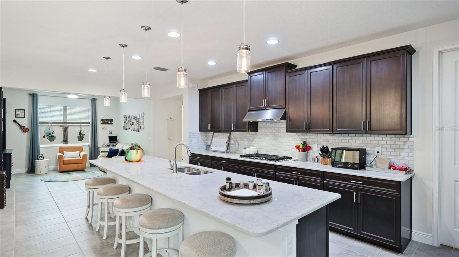 This home is in outstanding condition and is a very favored floor plan. Upon entering you will notice very nice details and finishes and a wide open floor plan with excellent room sizes. This home has what so many Florida homes lack which is excellent storage starting with 2 walk in closets in the owners suite, a huge kitchen pantry and 2 additional hallway closets and decorative niches and shelving adding to the details. There is a huge kitchen island with plenty of space for food prep on the beautiful quartz counter tops. You will also quickly notice an really appreciate the eating area adjacent to the island and separating the spacious living area. The second bedroom is oversized and is split from the owners suite by the large flex room that could efficiently be converted into the 3rd bedroom. Proceeding towards the sliding doors at the back of the home you will notice that the screened lanai has been enlarged significantly and the property is fenced and has an amazing secluded private view of the preserve. The lanai that was professionally coated in March 2025 is approximately 500 square feet. The street is a private dead end road so no through traffic. The amenities include resort style pool, spa, outdoor kitchen, workout facility with extra training room, large party room, tennis, pickleball. Sunrise Preserve also has an amenities director who coordinates monthly social activities, sports activities, parties, music, game nights, food trucks and more. walk through the main gates to all of the amenities or take your golf cart as they are allowed. The location is unbelievable as you take Clark road directly to Siesta Key beach and Siesta Key Village or go south to Osprey, Nokomis and Venice without having to drive on I-75. Sarasota has so many dining choices and shopping choices, theater, outdoor activities, boating and numerous art and entertainment facilities. THIS is what the Florida Lifestyle is all about. Click on the the link for the 3D tour of this stunning home.