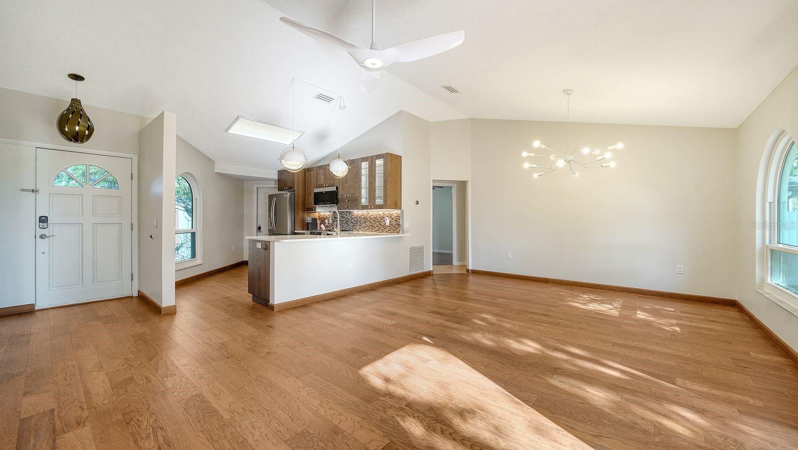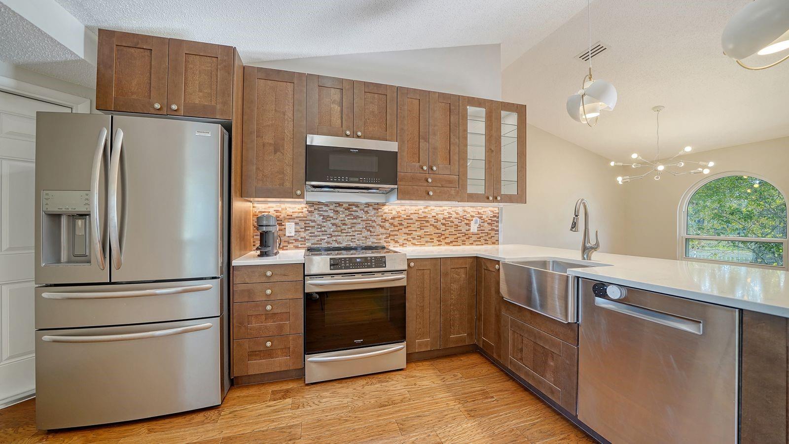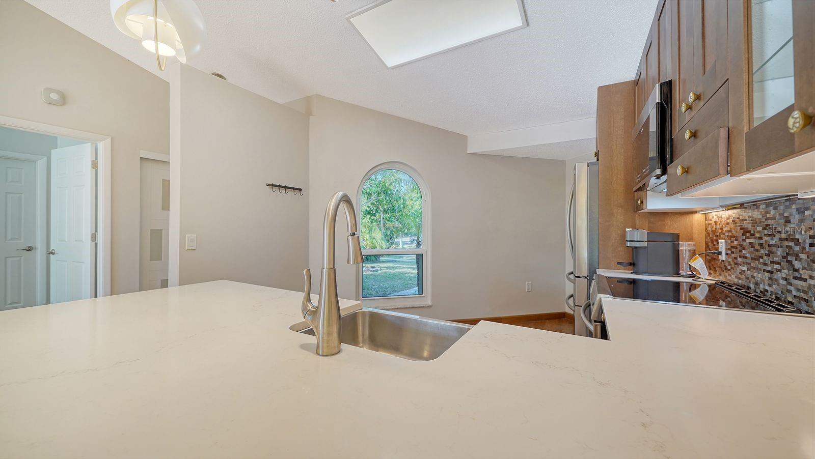 Nestled on an oversize corner lot directly across from Colonial Oaks Park, this lovely 3-bedroom, 2-bathroom home offers both comfort and convenience. Inside, the home has been updated with an eye toward quality. The remodeled kitchen features upgraded appliances, including an induction stove, and elegant quartz countertops overlooking the open living and dining areas. The spacious primary suite is a retreat, complete with a beautifully updated ensuite bathroom featuring a soaking tub. A true split plan, the other two bedrooms’ location maximizes privacy. Step into the backyard to enjoy peaceful views of a small pond frequented by wading birds, turtles, and even the occasional river otter. Practical upgrades including full impact windows and a reinforced garage door, secure keyless entry, and Flo Smart Water Monitoring offer peace of mind. Across the street, Colonial Oaks Park offers an array of recreational amenities, including tennis, pickleball, and basketball courts, a walking trail, shaded picnic areas with BBQ grills, and a fenced playground. Perfect for outdoor enthusiasts and families alike, the Colonial Oaks neighborhood is only minutes from I-75, shopping, hospitals, and downtown Sarasota.
