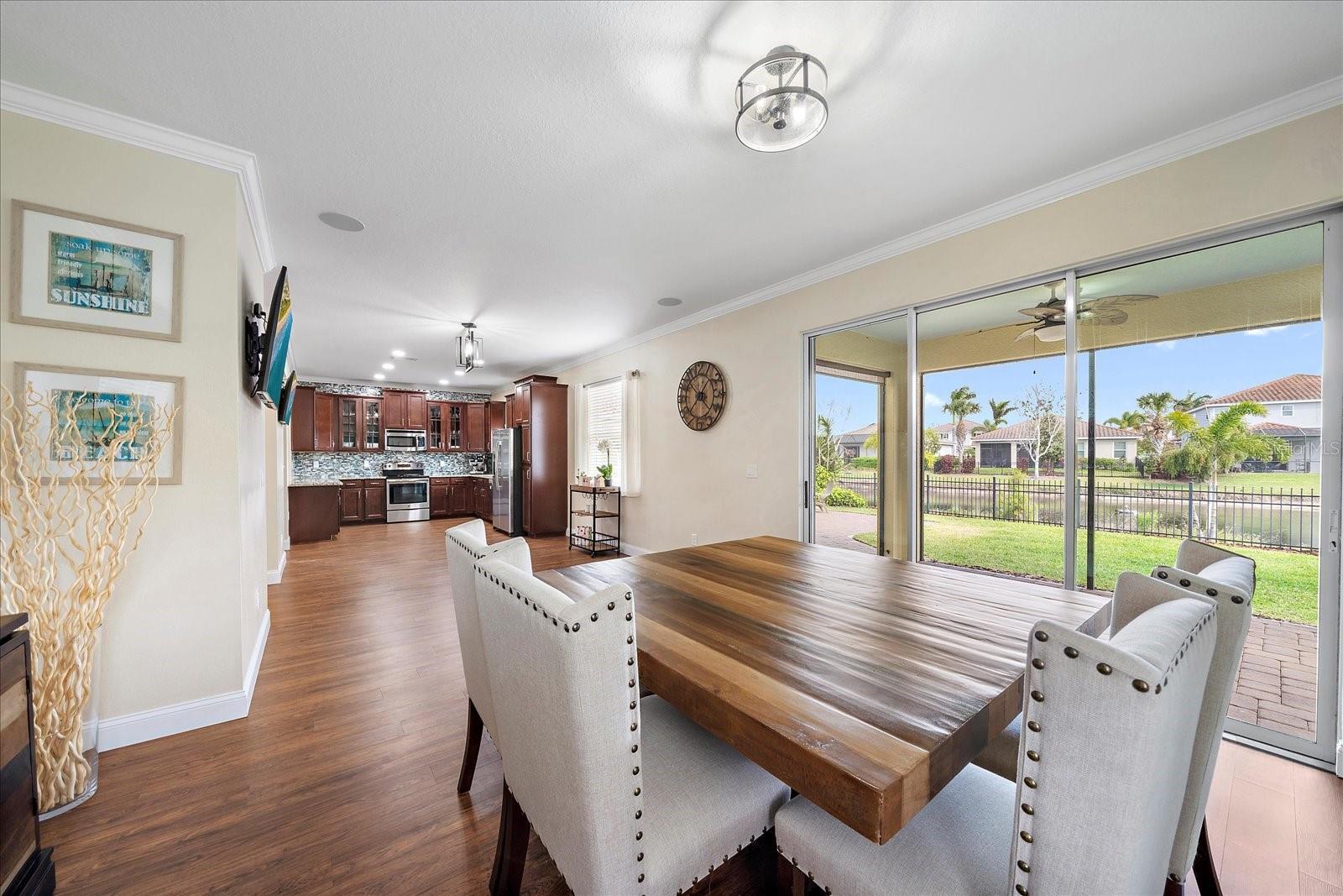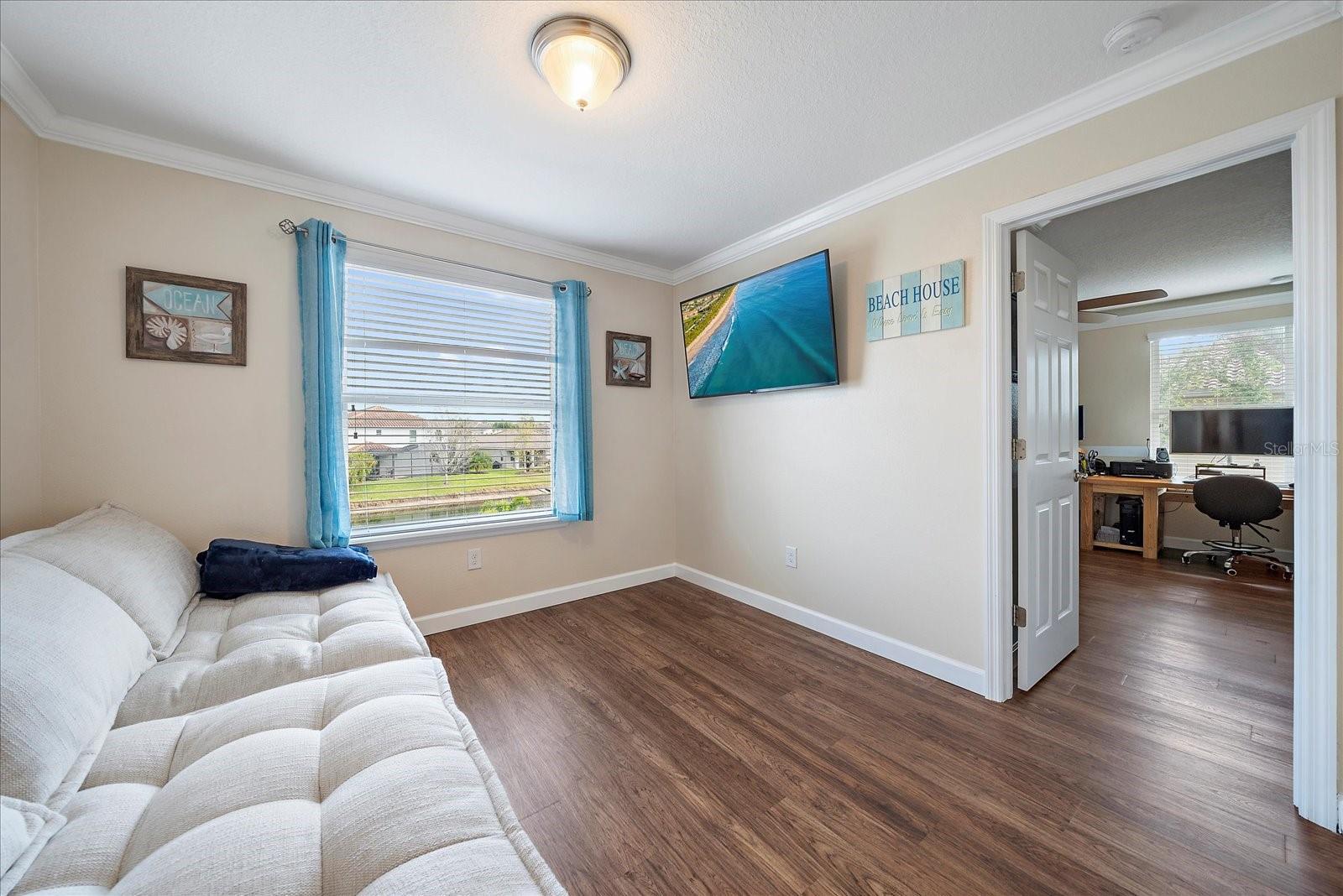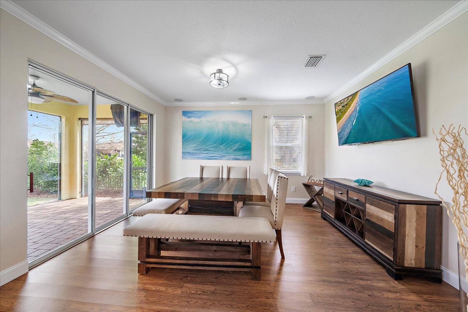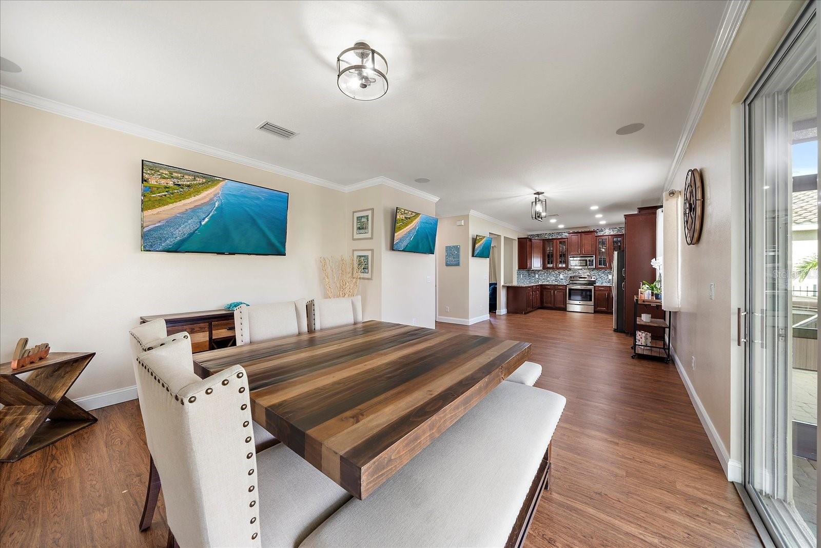 *IMPRESSIVE MOVE-IN READY LAKEVIEW HOME* Meticulously maintained 2 story home, 4 bedrooms, 2.5 bathrooms with tons of upgrades throughout the home. The High Ceilings open staircase gives a very open feeling. Luxury Vinyl floors throughout, crown molding accents most rooms, large baseboards, custom closets with built-in speaker system, and custom lighting are just a few of the upgrades. New AC installed August 2025. As you enter the home you will notice the Gorgeous hand crafted wood feature wall in your family gathering area. The chef’s kitchen is sure to impress with designer tile up to the ceiling. Stainless steel appliances. Granite countertops. Also has a R/O system and water softener. The dining area will accommodate a large table. The primary bedroom has a large walk in closet and a sitting area to unwind at the end of the day. Or step into your spa-like bathroom and soak away in your soaking tub. The beautiful tile and vibe will surely relax you. Along with the primary bedroom, you will find 3 more bedrooms with a full bath. And a bonus flex room! Laundry is also located on the second floor. Step outside in the fully fenced in back yard to enjoy an afternoon cocktail on the covered lanai or the extended paver area that is equipped with a relaxing spa. The garage has tons of storage that the seller can leave as well as 6 of the TVs in the home. The portable generator is included in the purchase. The kitchen table can be sold on a separate contract. This home is located close to shopping, hospitals and schools.