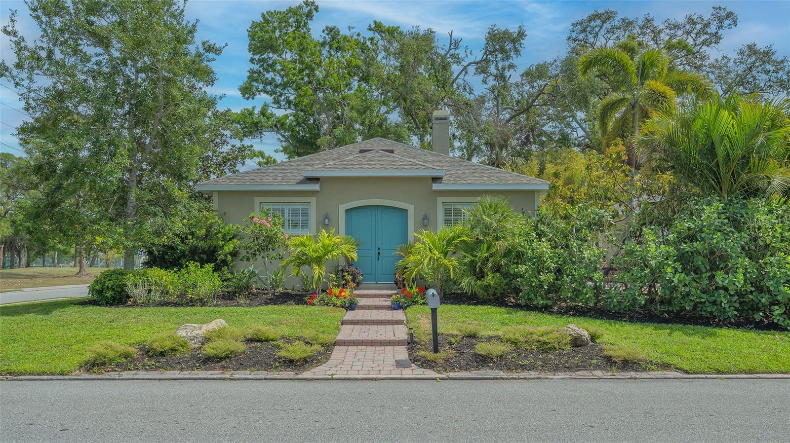 Welcome to this unique offering, a custom, concrete block, home built in 2005, with a detached structure housing two guest suites. Ideal for extended family, visitors, artist studio, and/or additional rental income, so just let your imagination run wild. Directly across the road from Gillespie Park, a dazzling 10-acre monitored park. High-impact hurricane windows and a newly installed roof 2024 with hurricane tie-downs. The freshly painted main house features a living room and primary bedroom with a shared double-sided gas fireplace, stained acid-washed floors, a common feature throughout the compound, newly installed granite-honed countertops, new subway tiles in the kitchen, and freshly painted solid wood cherry cabinets. If it is the purity you want, try the Apec Reverse Osmosis dispenser at the newly installed kitchen sink. Bosch gas cooktop, dishwasher and convection wall oven, GE refrigerator with Electrolux washer and dryer. Tankless on-demand hot water, gas for the main house, and an additional electric unit for the guest suites. A well for irrigation, EV 220-volt 50-amp charging station, storage bins and racks for kayaks, two driveways, private hedging with magnolia, holly, black bamboo and hibiscus, or if it's the fruit you want, mango, avocado, lemon, papaya and banana trees. An outdoor shower, brick pavers throughout the inspiring courtyard with hanging lights, and a firepit to capture those spectacular starry evenings. One guest suite was built with the original house with a kitchenette, while the second was built in 2022, complete with a full kitchen and washer/dryer combo. Both suites come complete with mini-split heat pumps, one installed in 2023 and are turnkey furnished. Gillespie Park, which is directly across the street, features grand oaks, recreational trails, a lake, tennis courts, a pickleball court, a gazebo, a dog park and a basketball court. Centrally located and within walking distance of Sprouts, Whole Foods, restaurants and local shopping, this neighborhood offers a vibrant and ever-evolving downtown neighborhood.